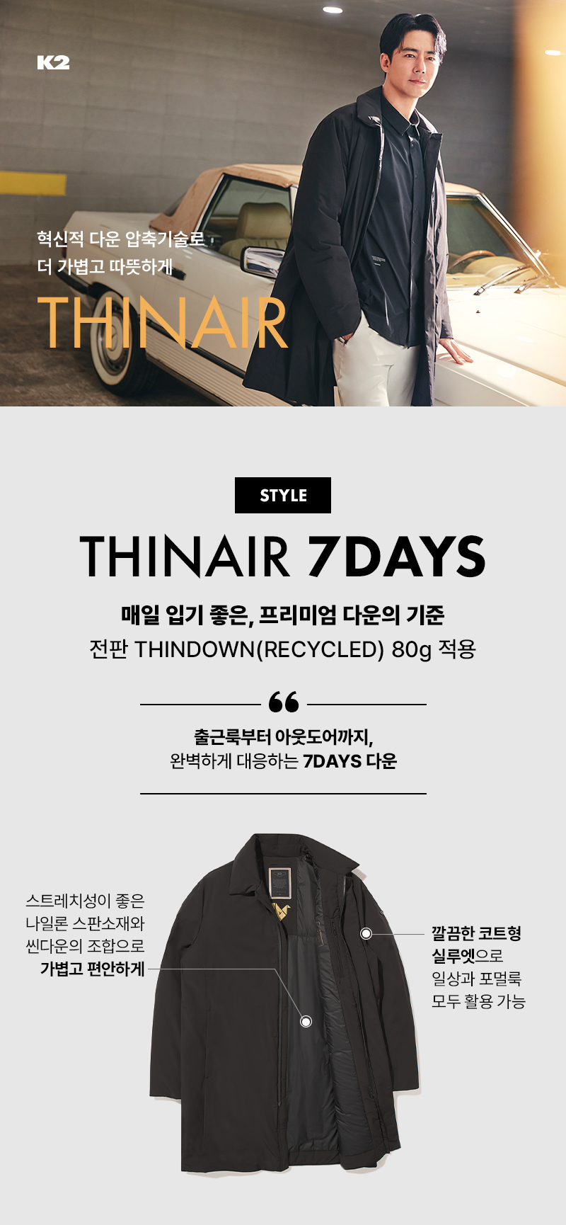 - THINDOWN RECYCLED DUCK 80:20 80G을 전체 적용하여, 군더더기 없이 깔끔한 디자인