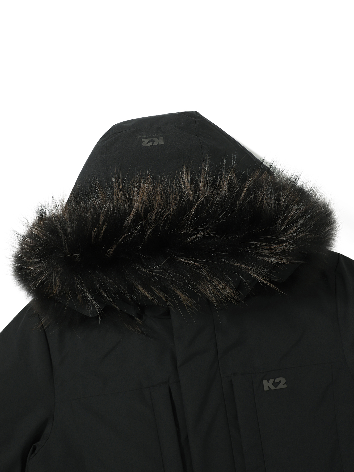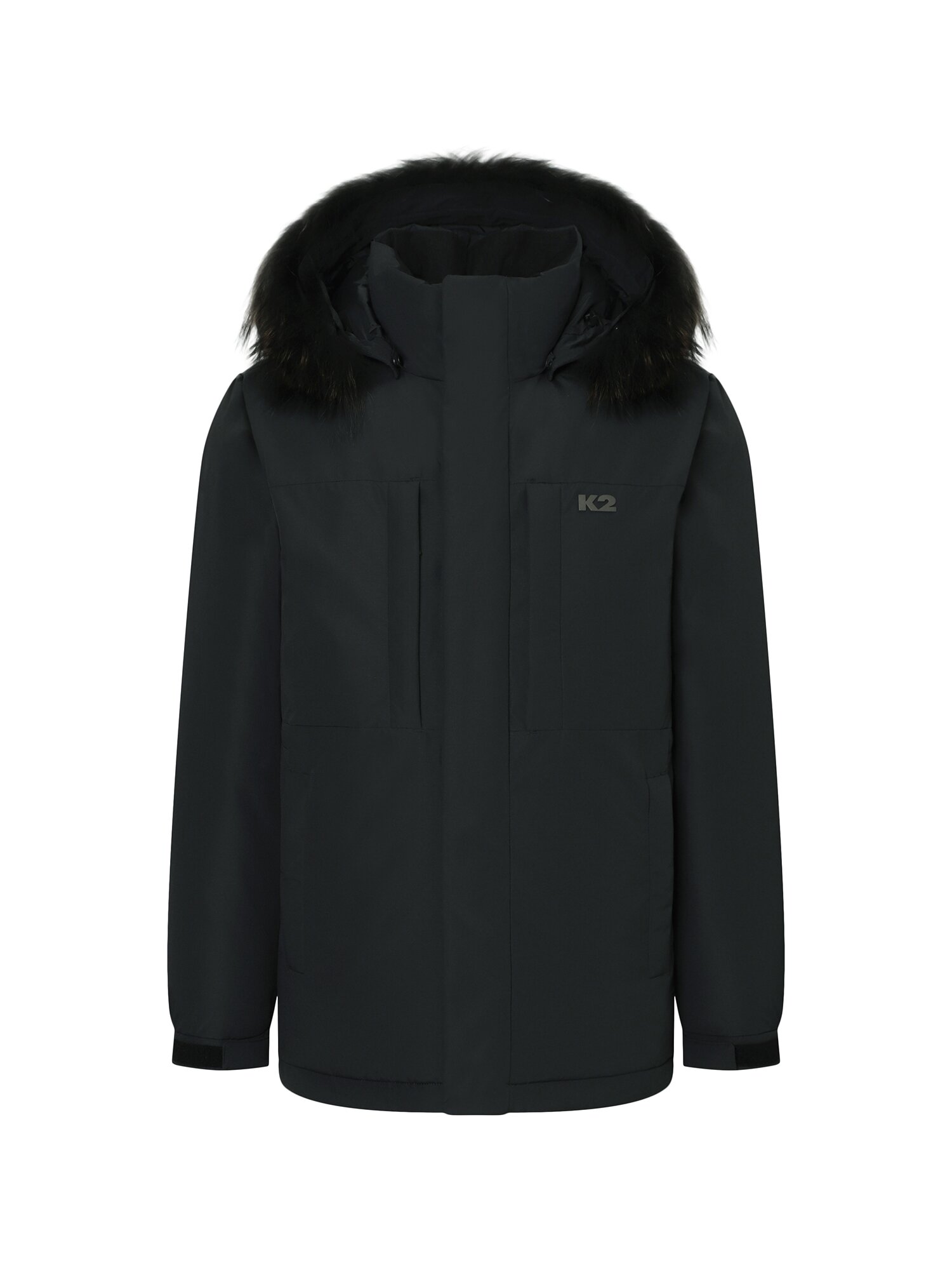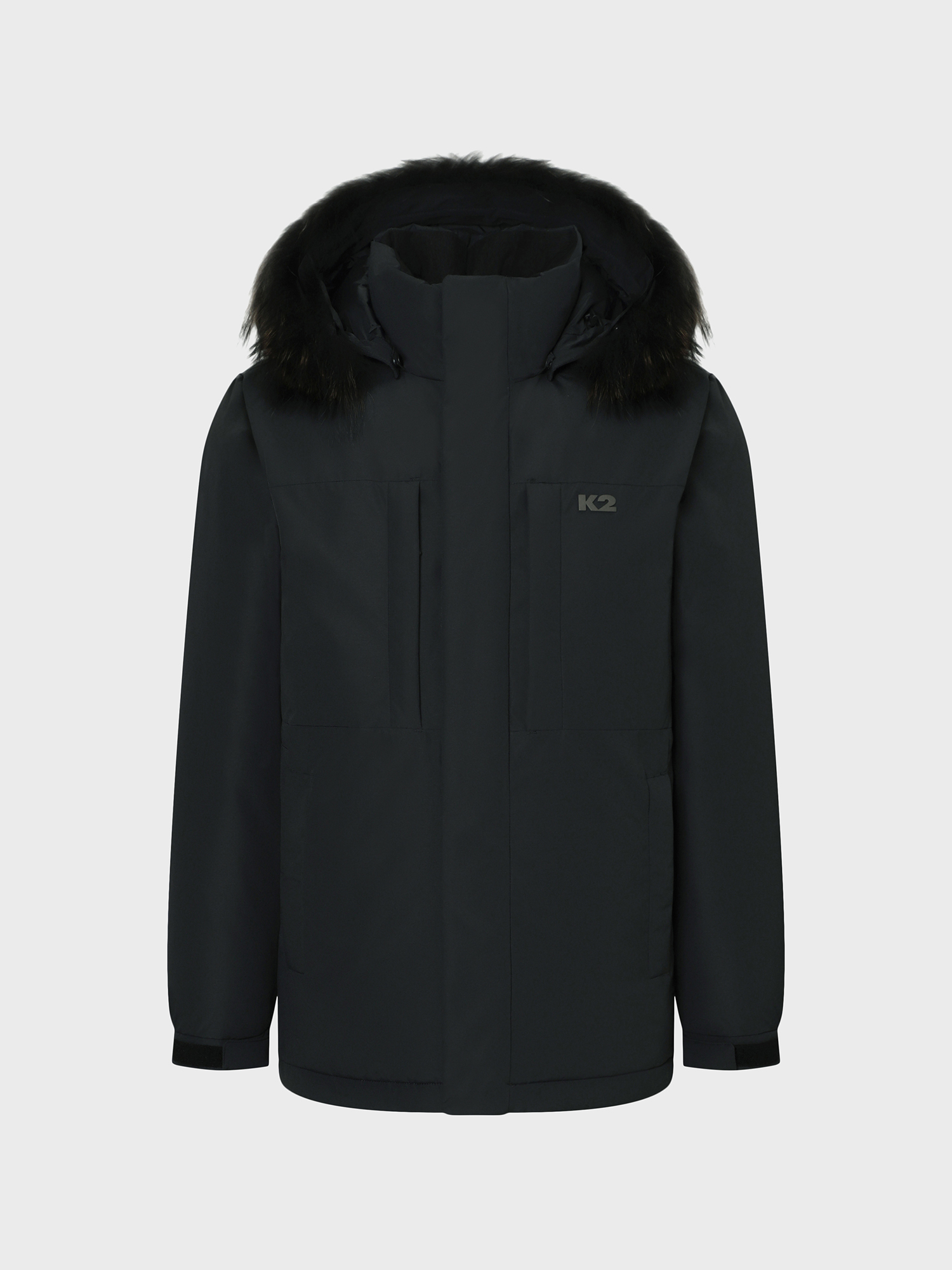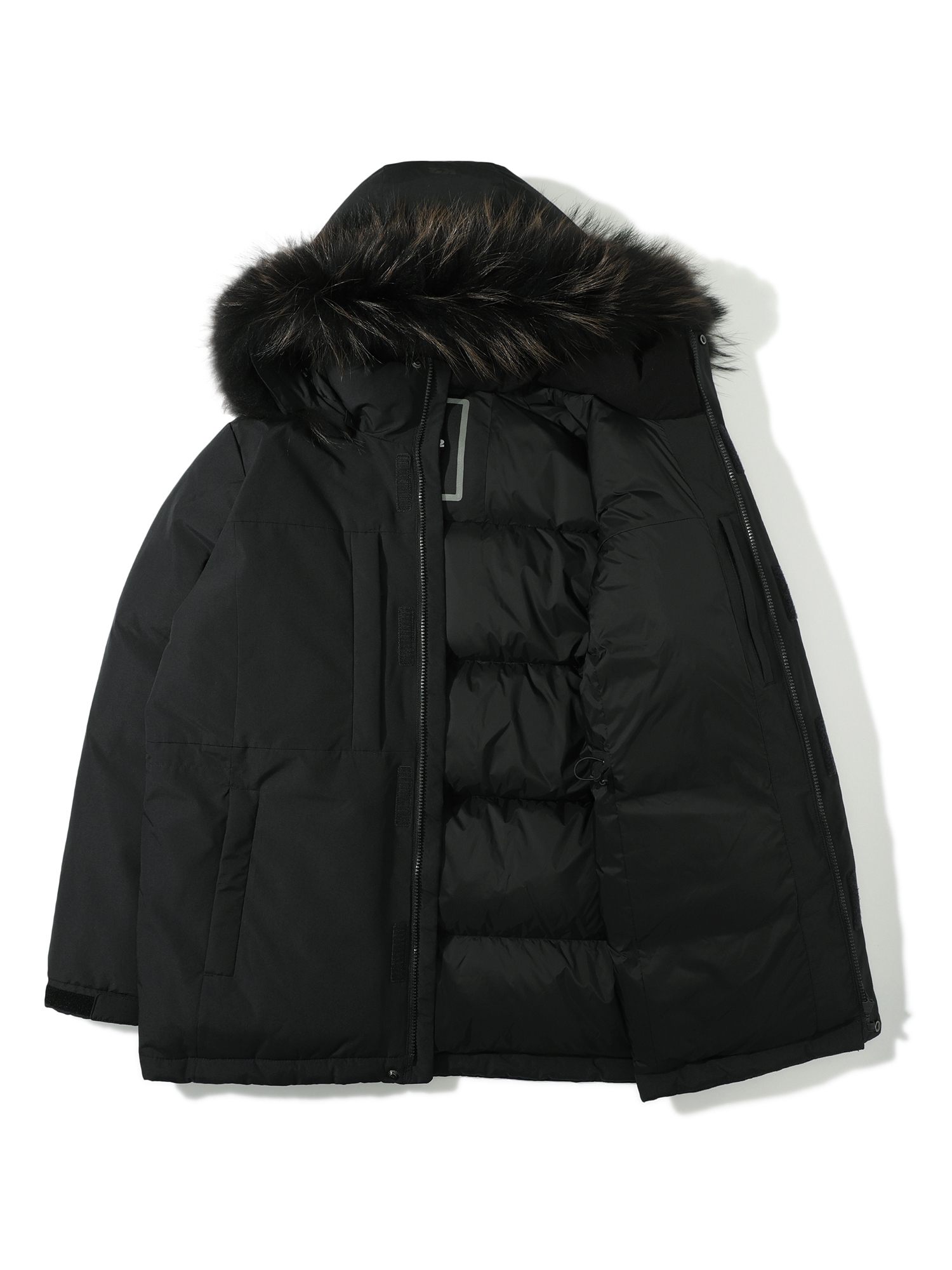 - 네추럴 2L 소재를 적용한 야상형 헤비 다운으로 탈부착 가능한 리얼 라쿤퍼 장착