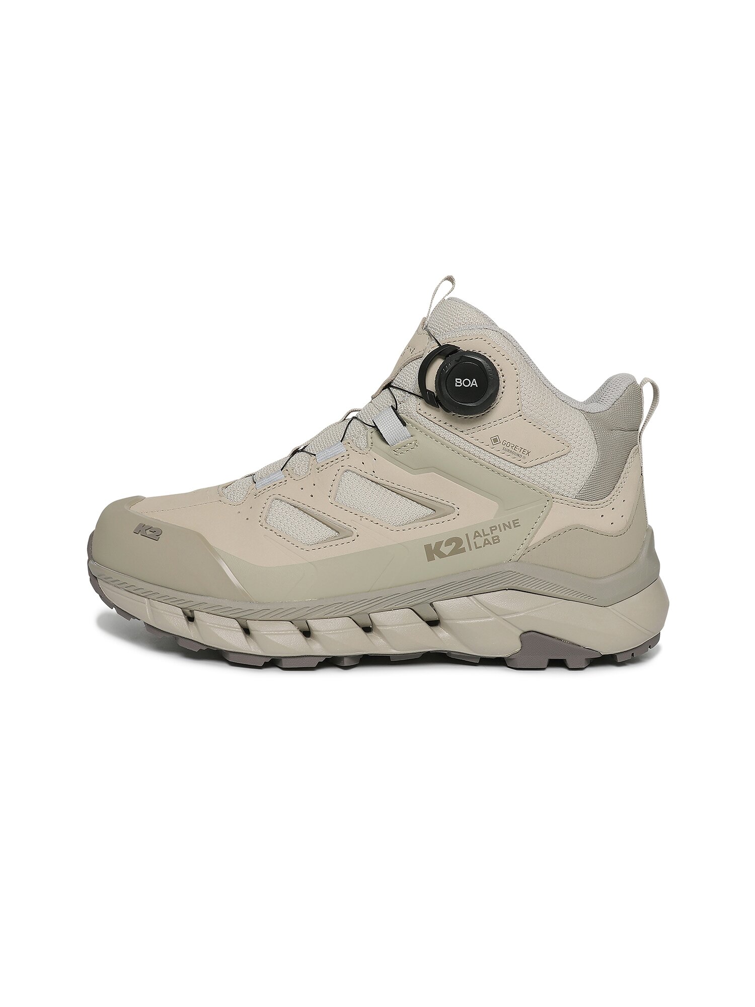 2중 미드솔 구조로 충격 흡수 뿐만 아니라 고어텍스 서라운드로 방,투습과 통기성 기능까지 접목된 보아 다이얼 가죽 트레킹화