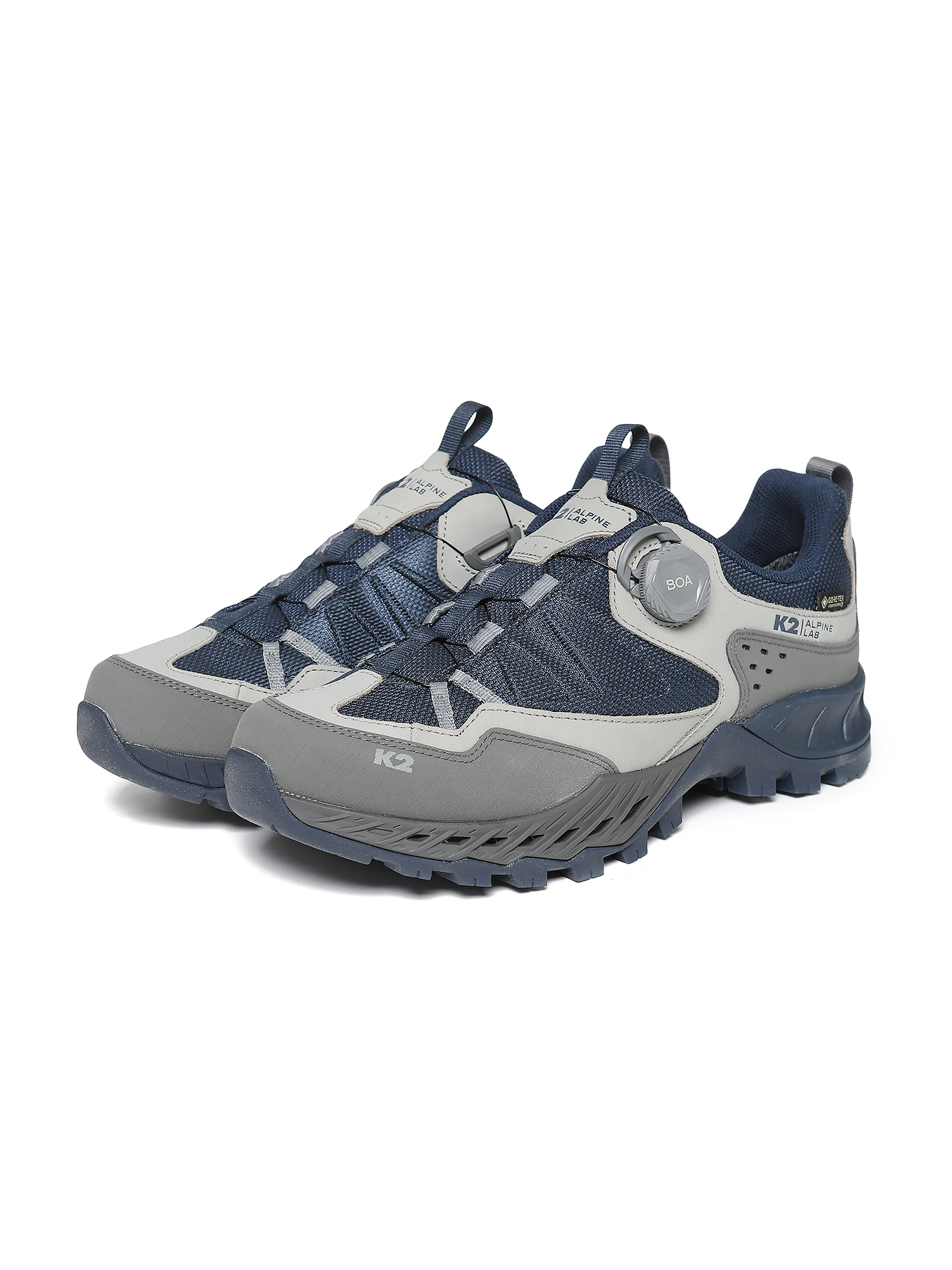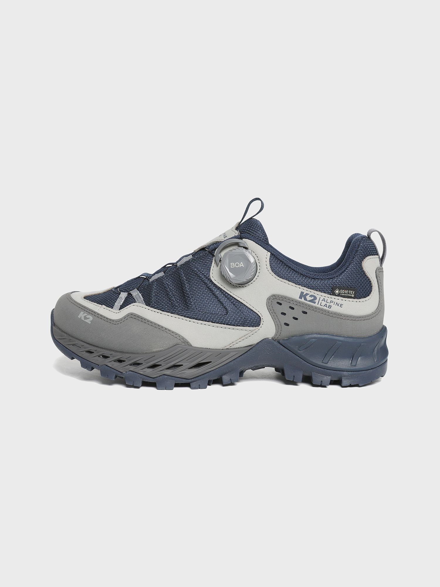 내구성 좋은 갑피가 BOA FIT SYSTEM과 함께 힘있는 지지력과 핏을 제공하며  GORE-TEX SURROUND 적용된 쿠셔닝과 흔들림이 적은 로우컷 트래킹화