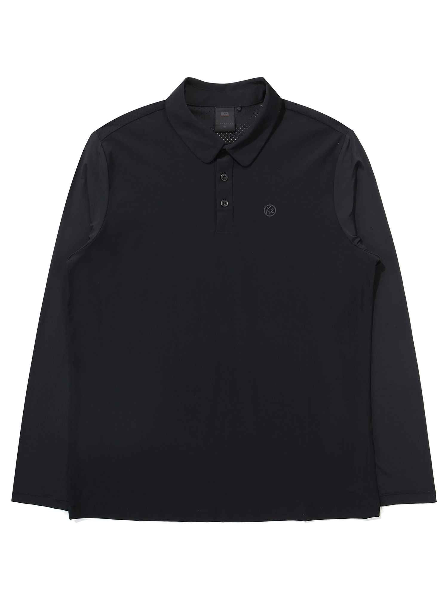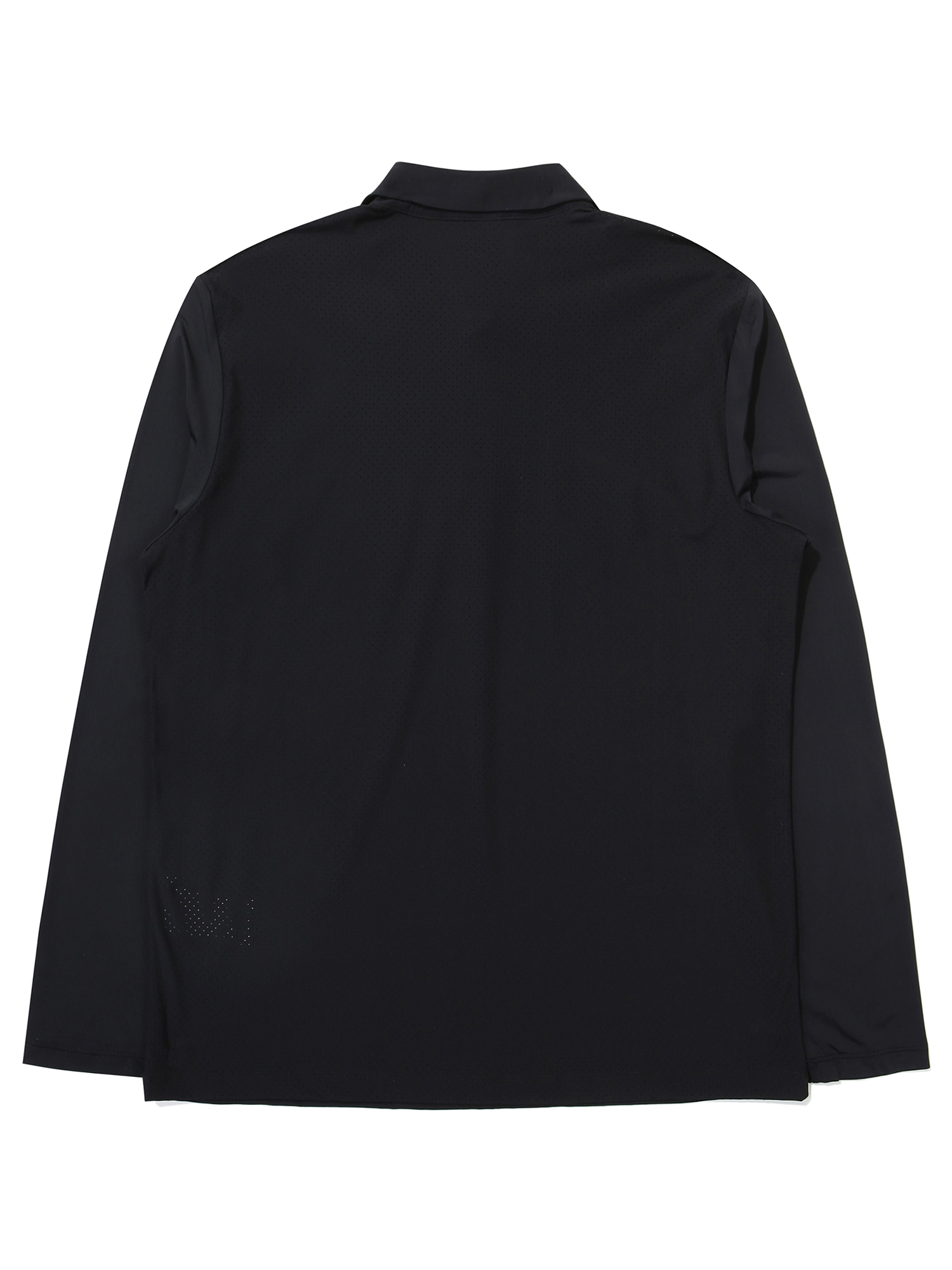 초여름 착장 가능한 긴팔 폴로 티셔츠. 소매에 하이게이지 소재&등판 타공 소재를 적용한 여름성 긴팔 폴로