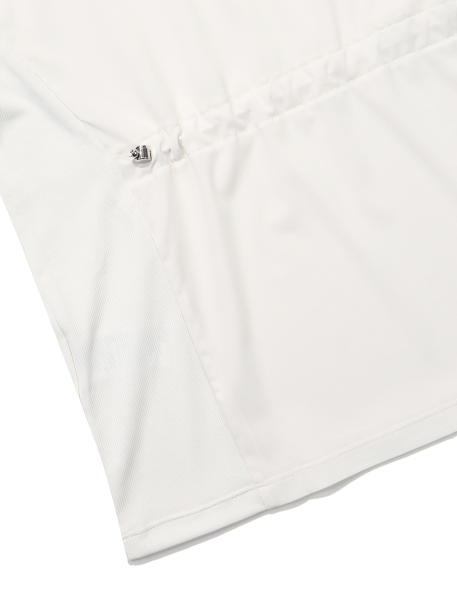 앞판:조직감이 있는 SORONA 소재 + 등판 및 소매:얇은 우븐 소재를 적용하여 여름철 시원하게 착용할 수 있는 라운드 티셔츠. 스트링 적용으로 몸에 맞춰 핏감 조절 가능