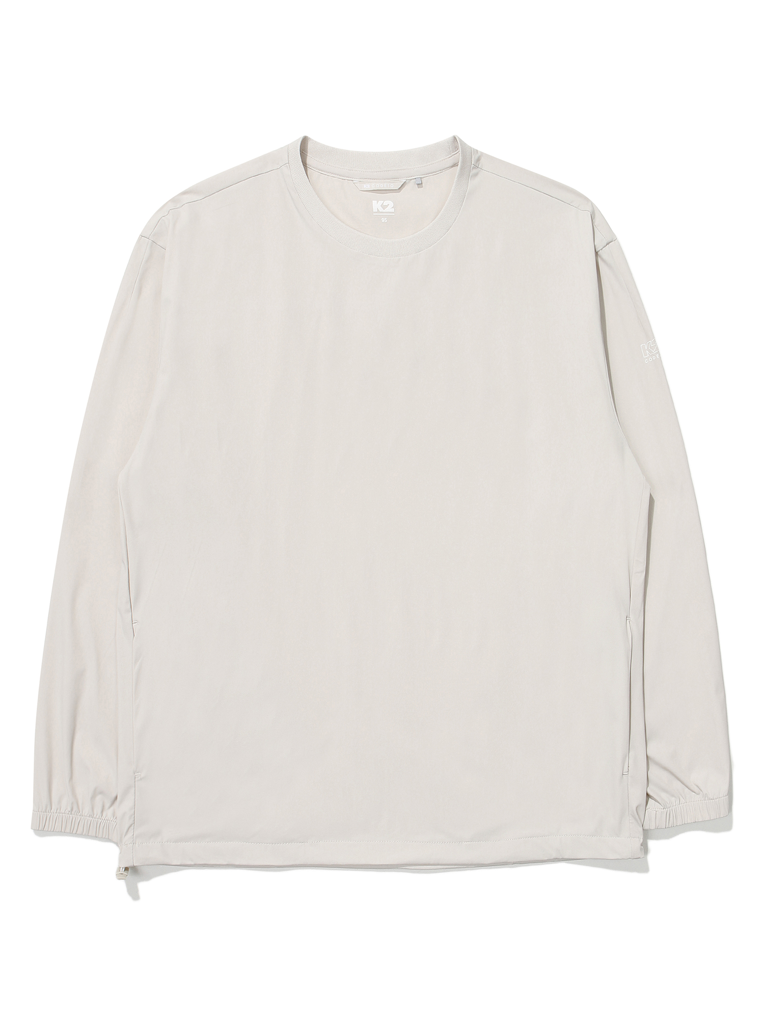 초냉감 원사로 만들어 영구적 냉감을 제공하는 CODE10 우븐 긴팔 라운드 티셔츠 / 나일론 도비 조직으로 봄시즌 부터 여름까지도 시원하게 착용 가능 / 밑단 스트링으로 취향에 맞춰 다양한 핏감 연출 가능