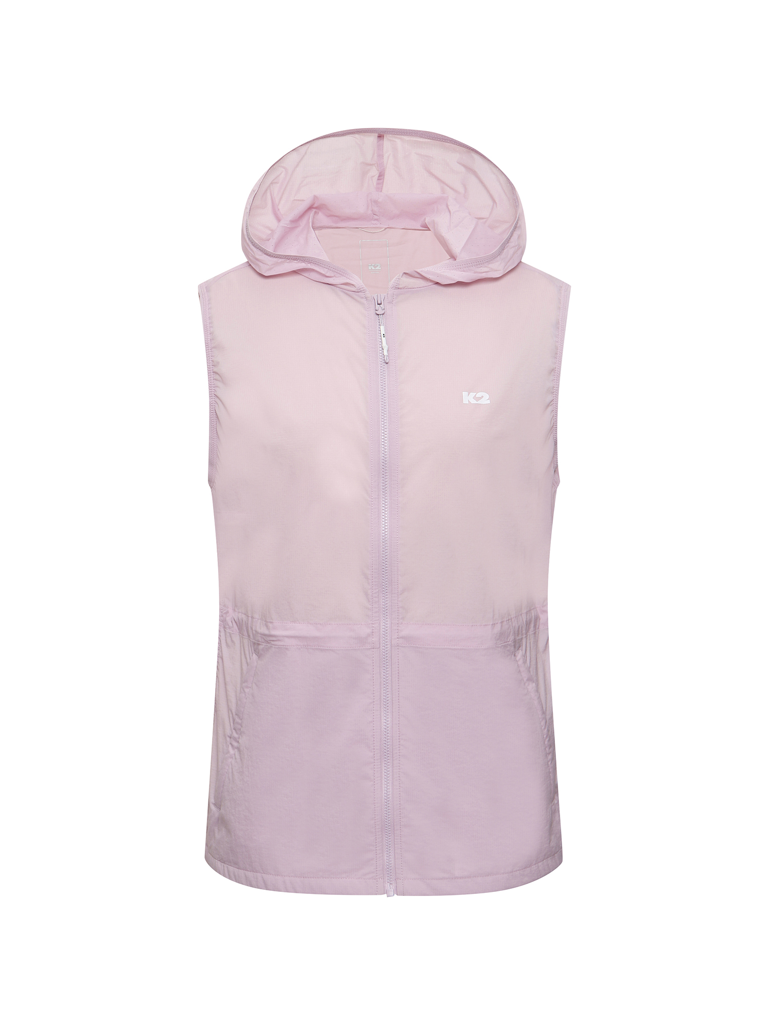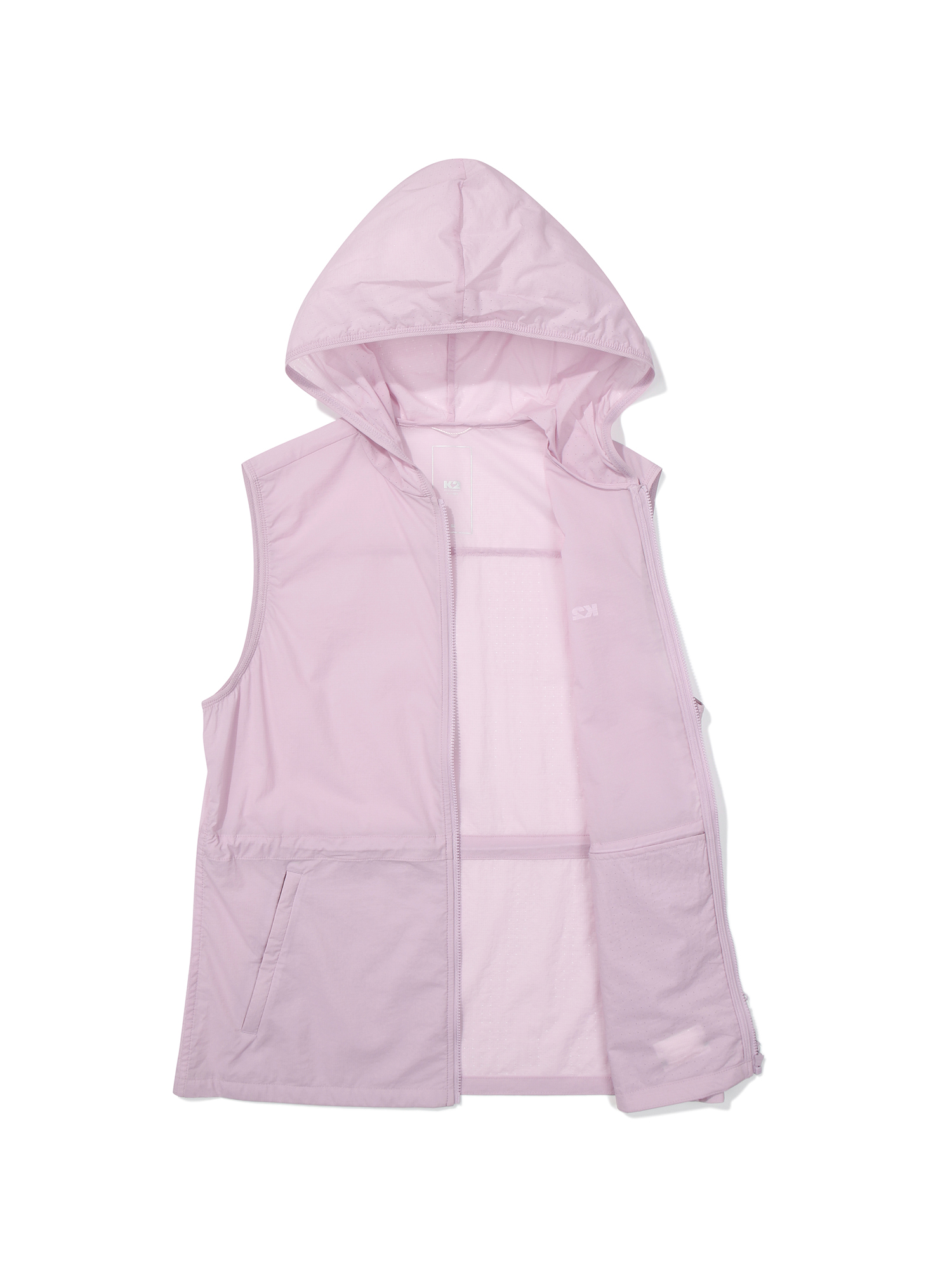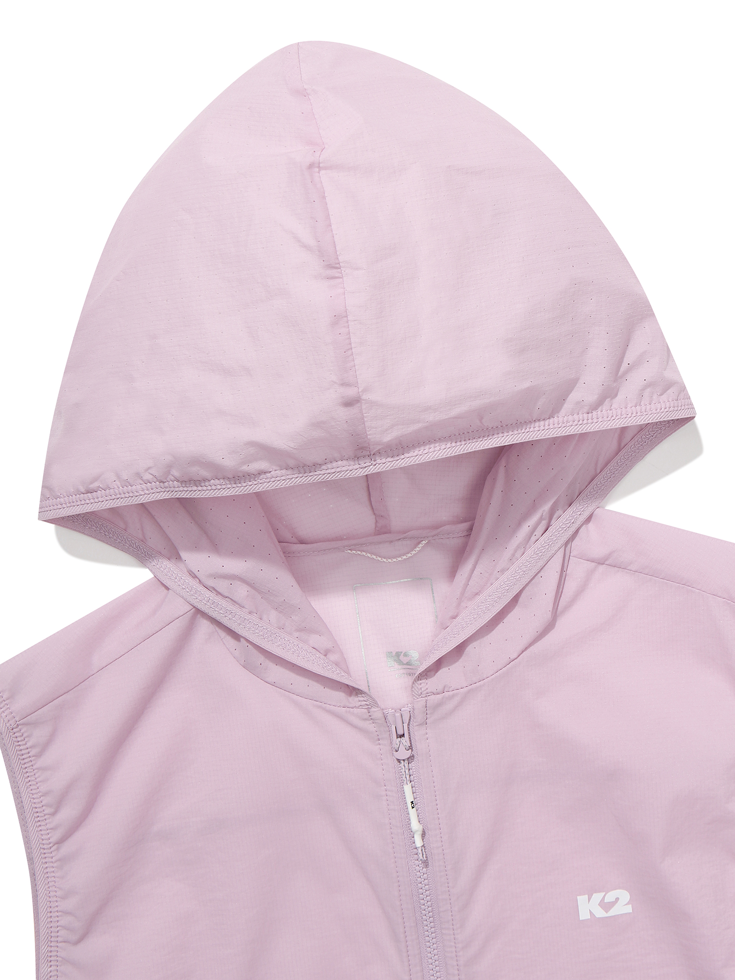 가볍고 신축성이 우수한 나일론 스판 소재를 사용한 여성 전용 후드 베스트로 등판과 후드에 타공소재를 적용하여 통기성 또한 우수한 아이템