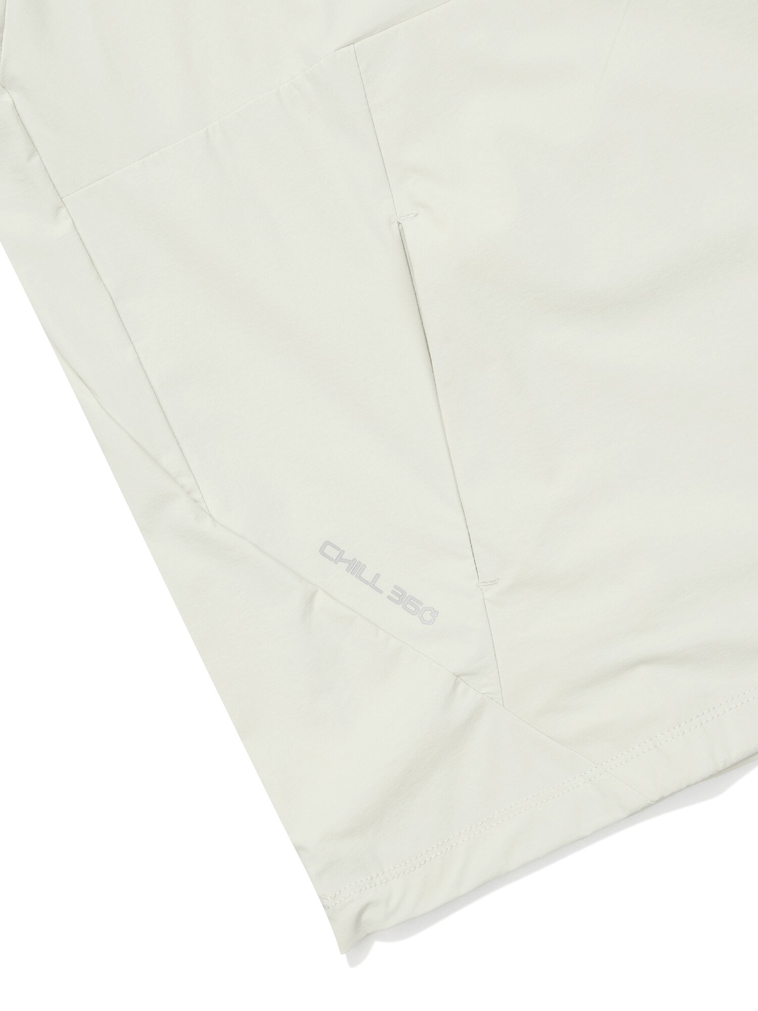 - 원단 이면에 피부의 열을 뺏는 흡열 PCM 냉감 프린트 적용