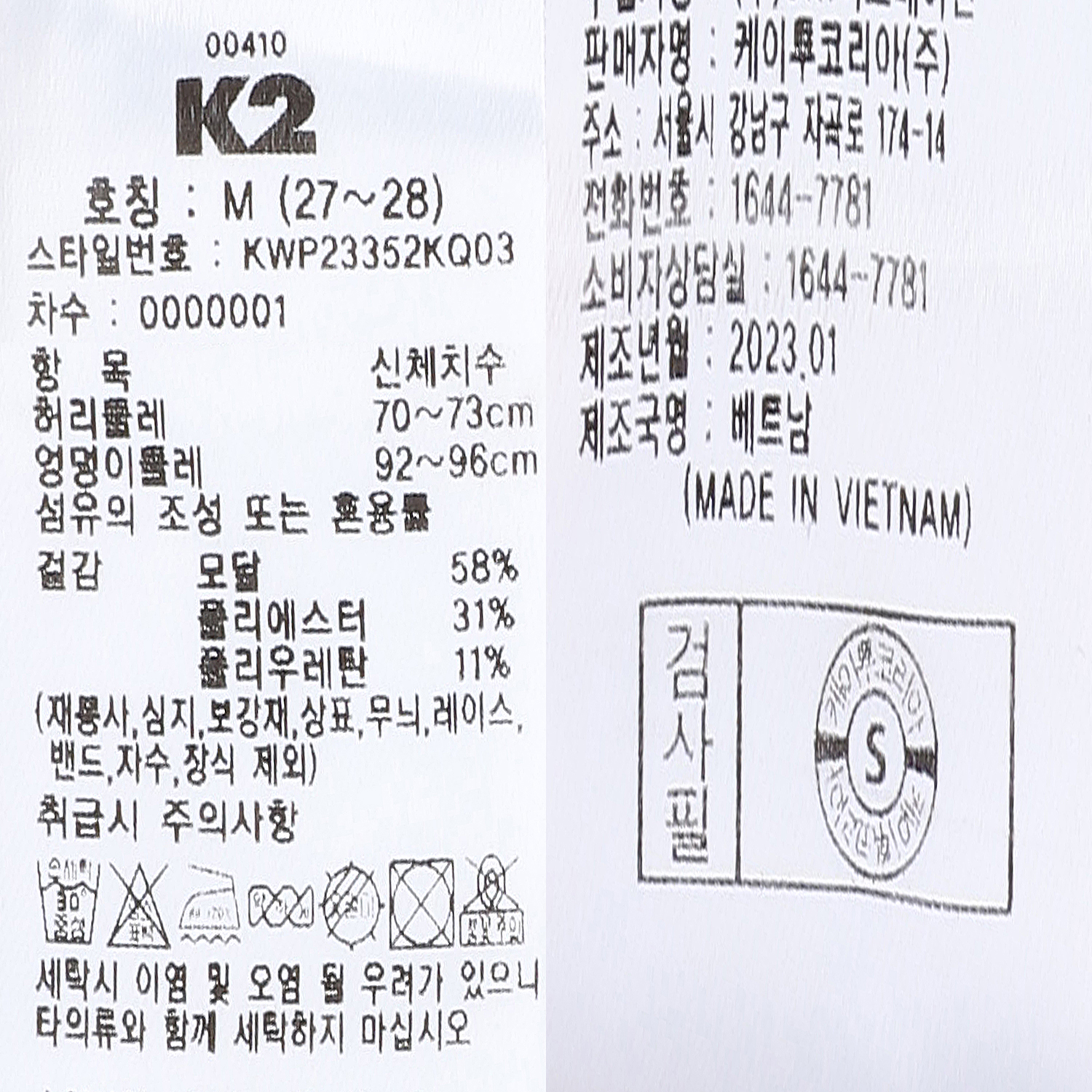 레이온56%, 폴리에스터31%, 폴리우레탄13%