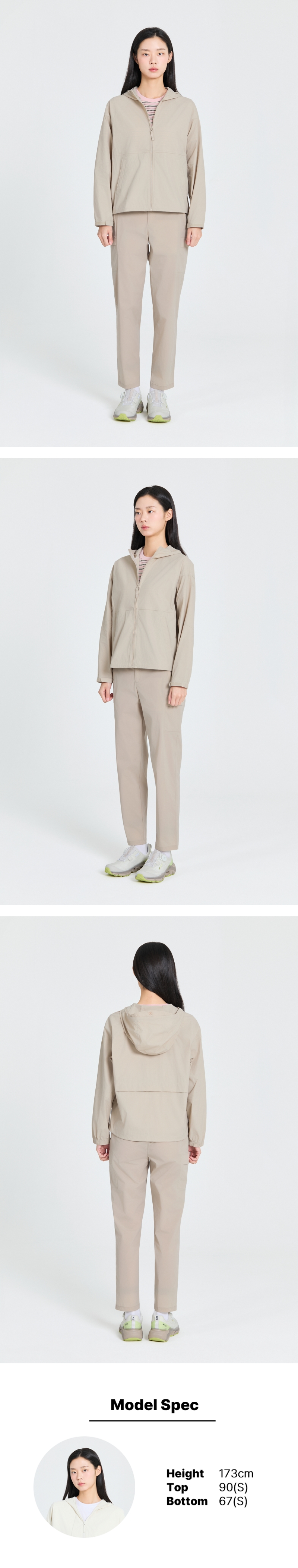 - 특수 가공 처리된 UV 차단 소재를 사용하여 피부 노화와 트러블을 예방하고 부드러운 코팅이 차가운 바람을 막아주는 스트레치 팬츠