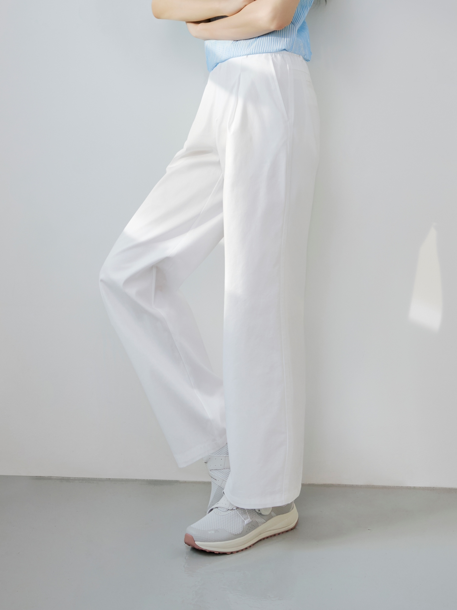 - 코튼 폴리 혼방 소재를 적용한 와이드 팬츠