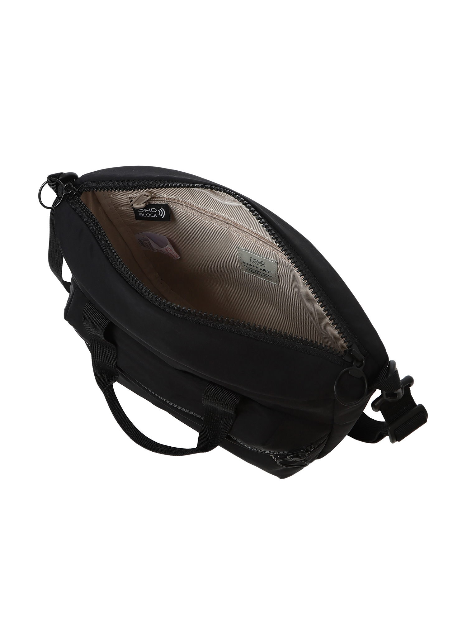 - 메인포켓 내부 히든포켓에 RFID 차단원단을 적용하여 해외여행 시 디지털 범죄 예방 가능