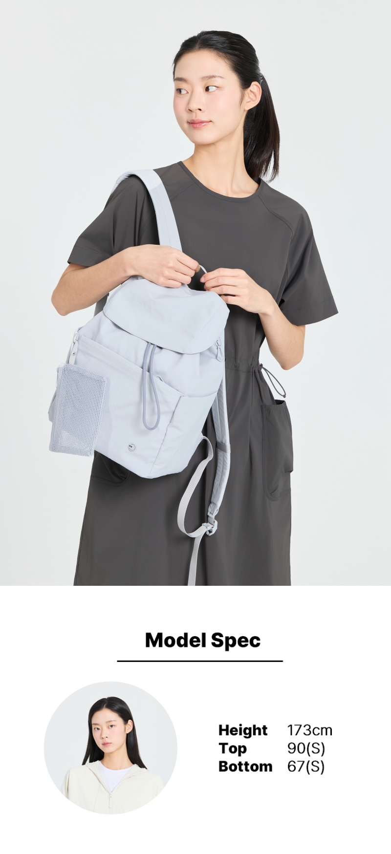 * 전면 지퍼 포켓 / 사이드 오픈 포켓 / 등판 히든 포켓 등 효율적 수납 구조.