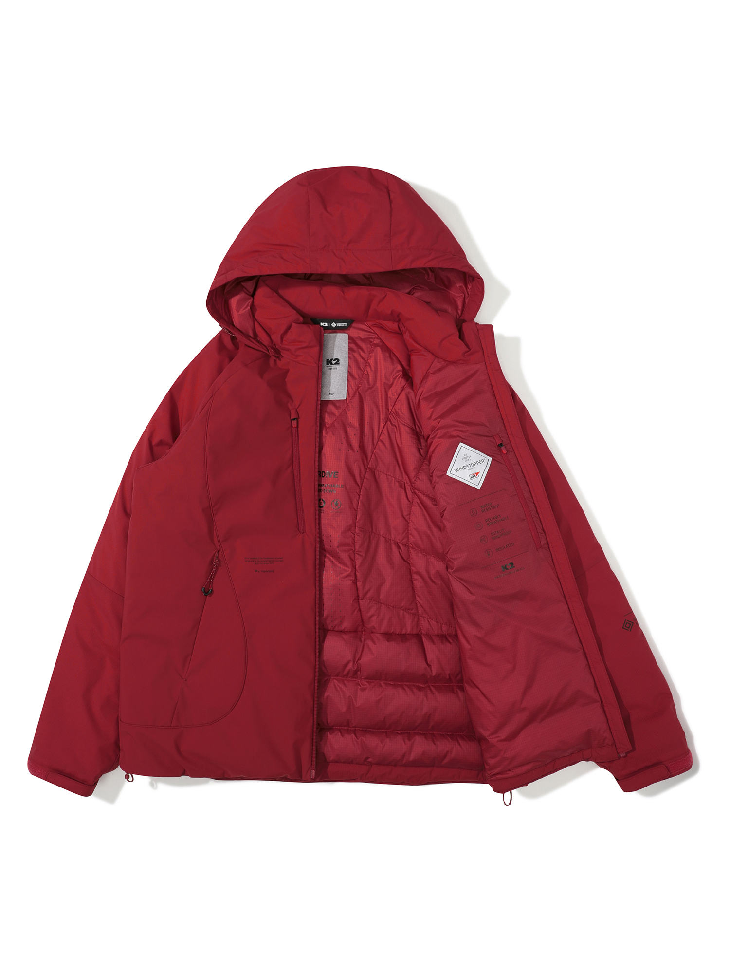 - K2와 GORE社가 공동 개발한 매케니컬 고어 윈드스토퍼 소재를 사용하고, 등판에 CLO VIVO INSULATION을 사용하여 보온성은 유지하고 몸의 땀을 배출하여 최적의 쾌적함을 제공
