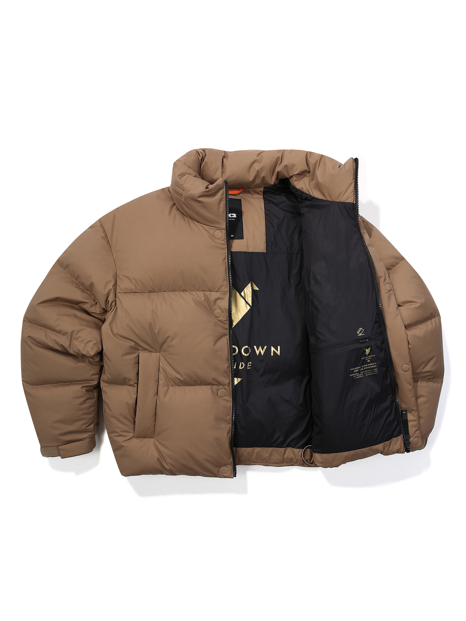 •이태리 씬다운(구스90:10) 80g 두께 어깨 앞뒤 상단 사용하여 옷 착용 시 어깨에서 느껴지는 중량감 최소화, 그 외 구스 80:20 사용(90호 기준 158g)
