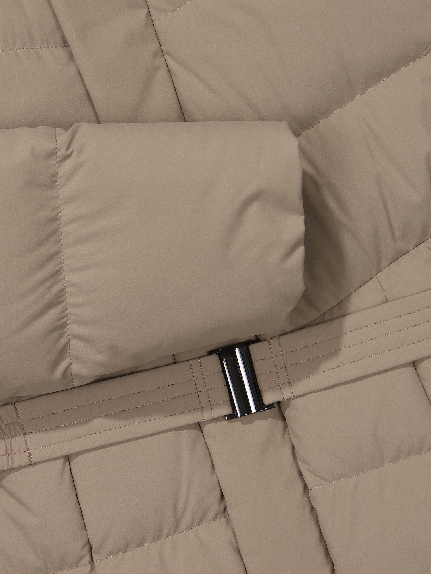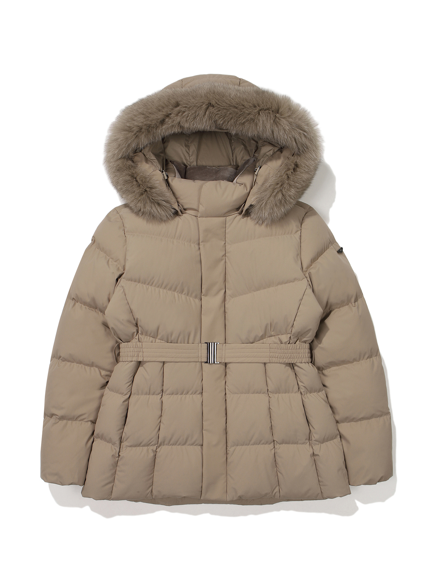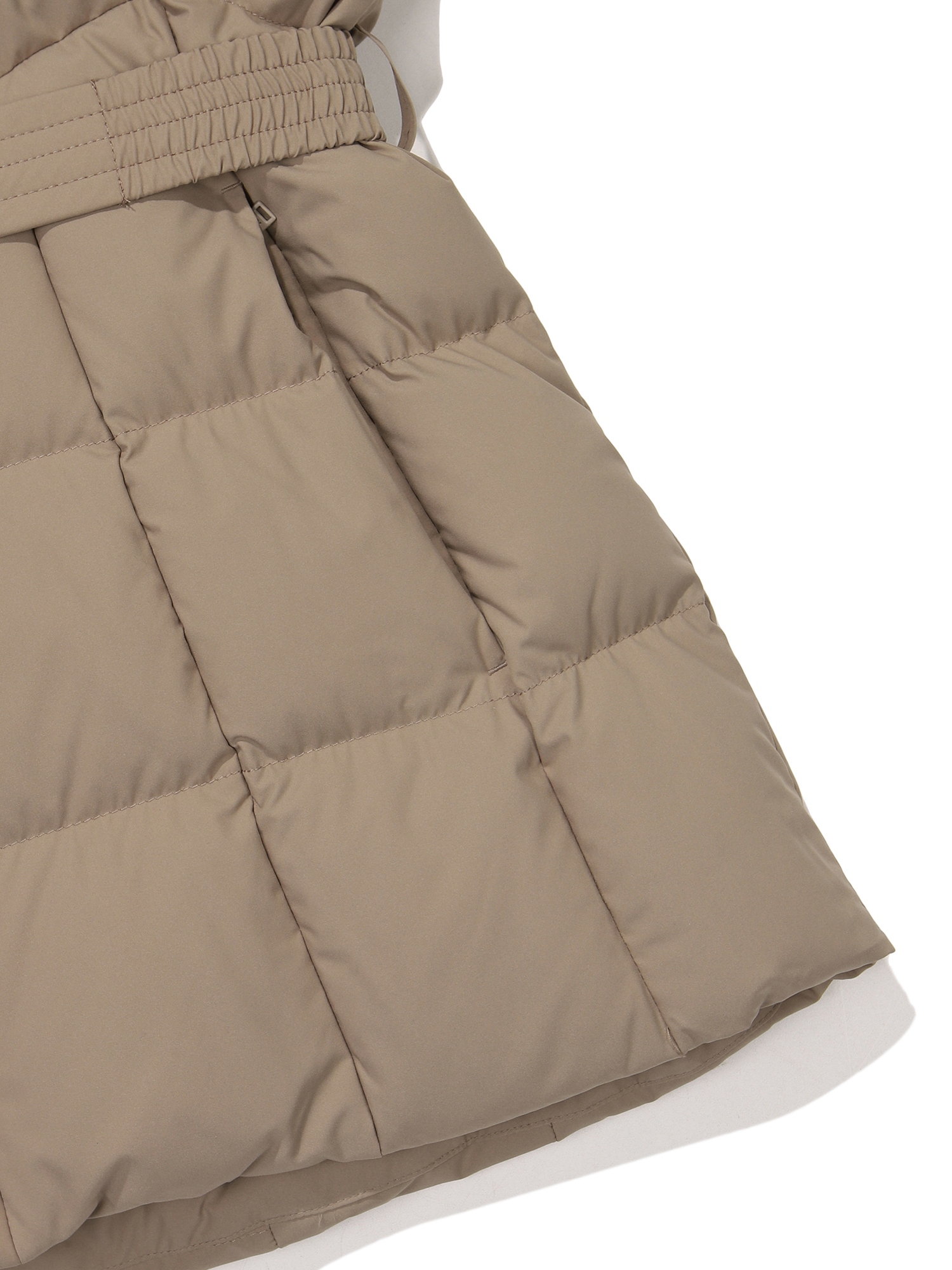 상단 사선 퀼팅 및 밑단 절개로 날씬 해 보이는 실루엣 연출