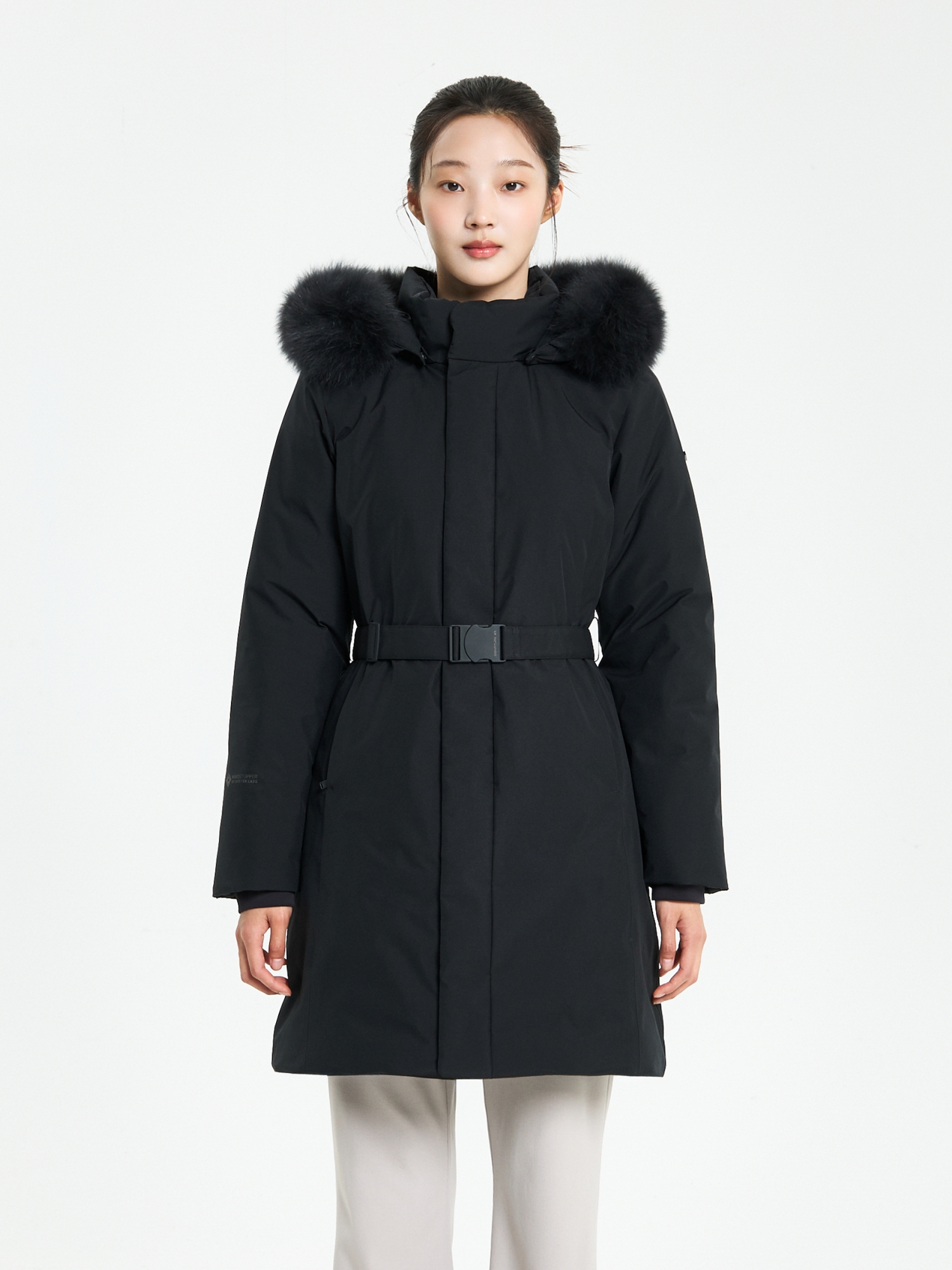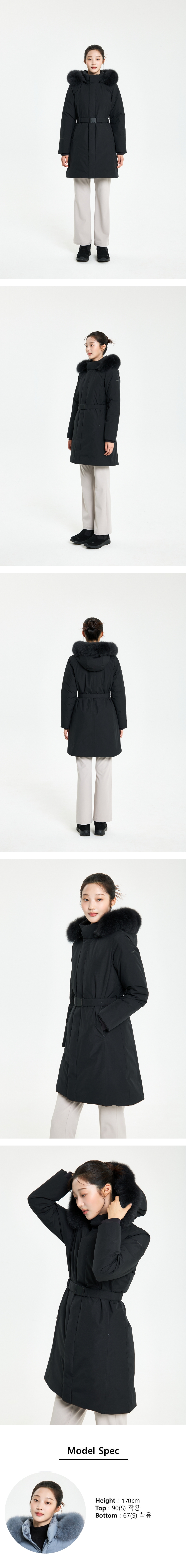 - 후드 퍼에 와이어를 적용하여 더욱 풍성하게 연출 가능하며, 추운 날에는 안으로 말아넣어 따뜻하게 착용 가능