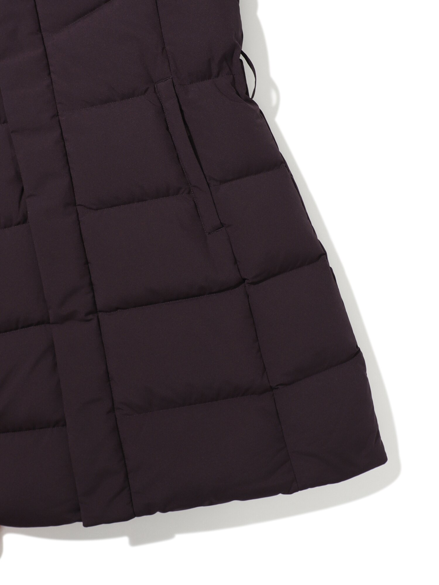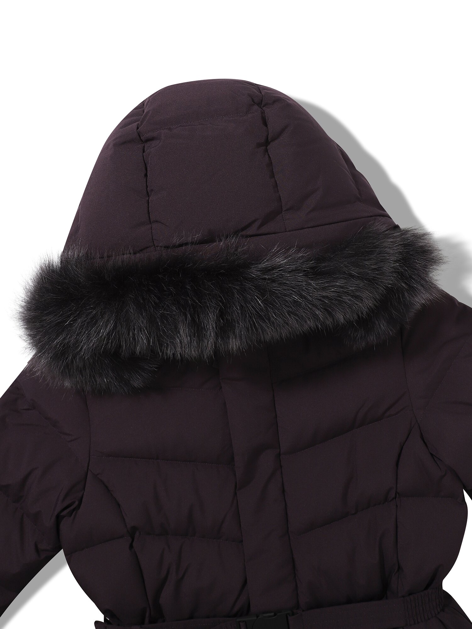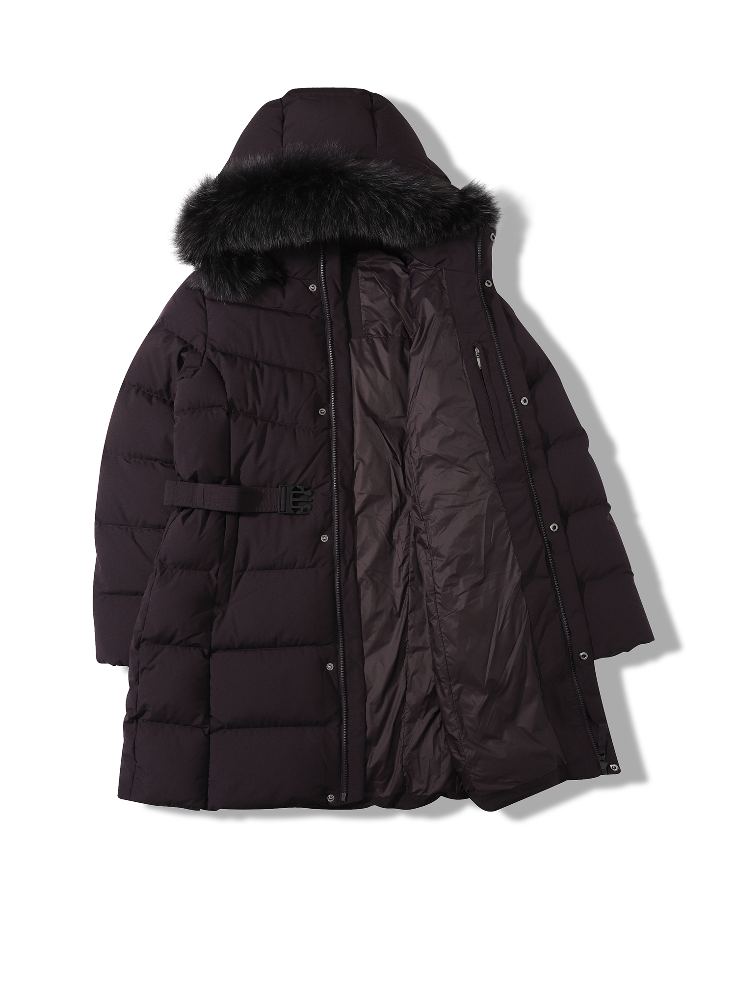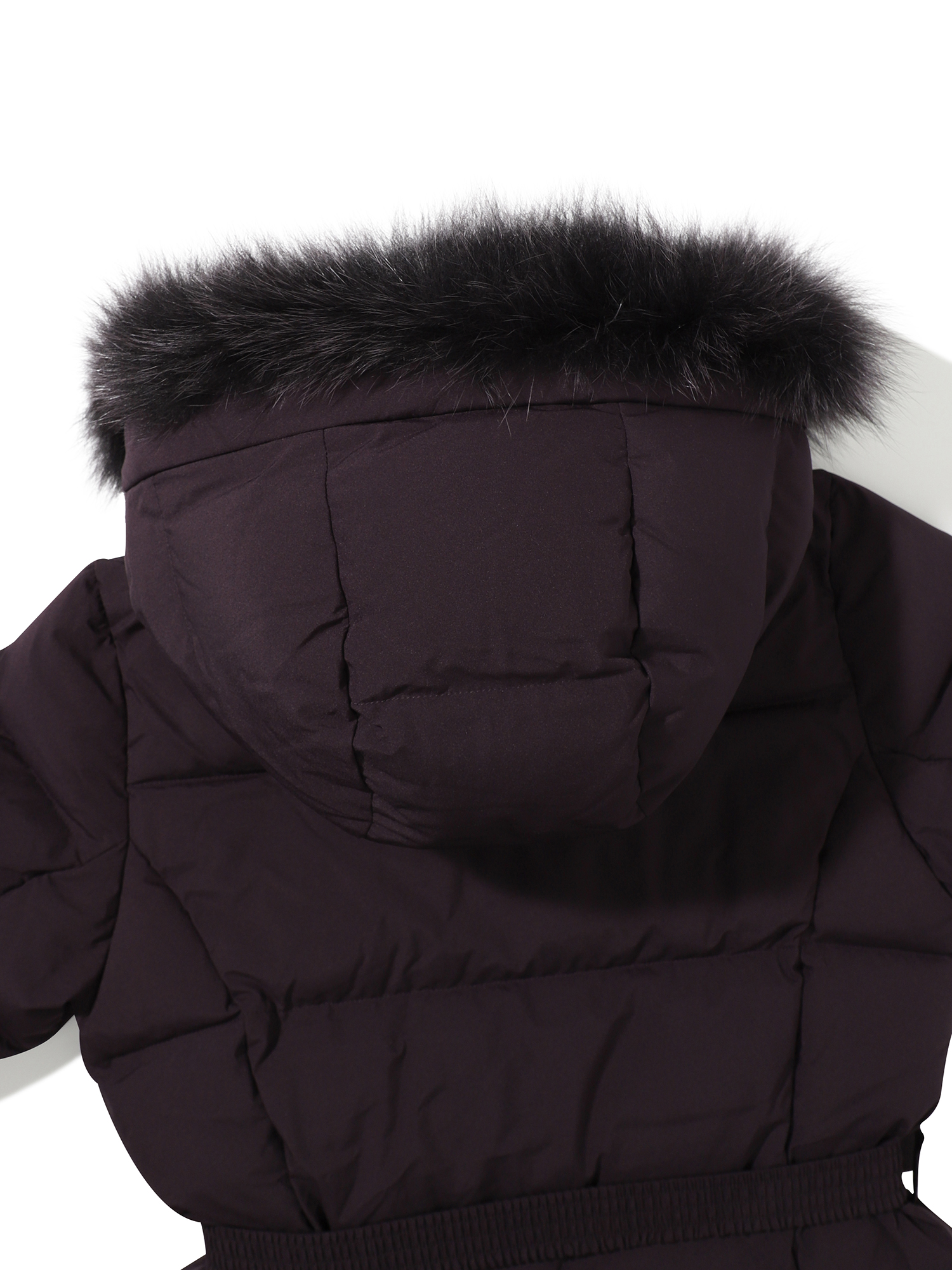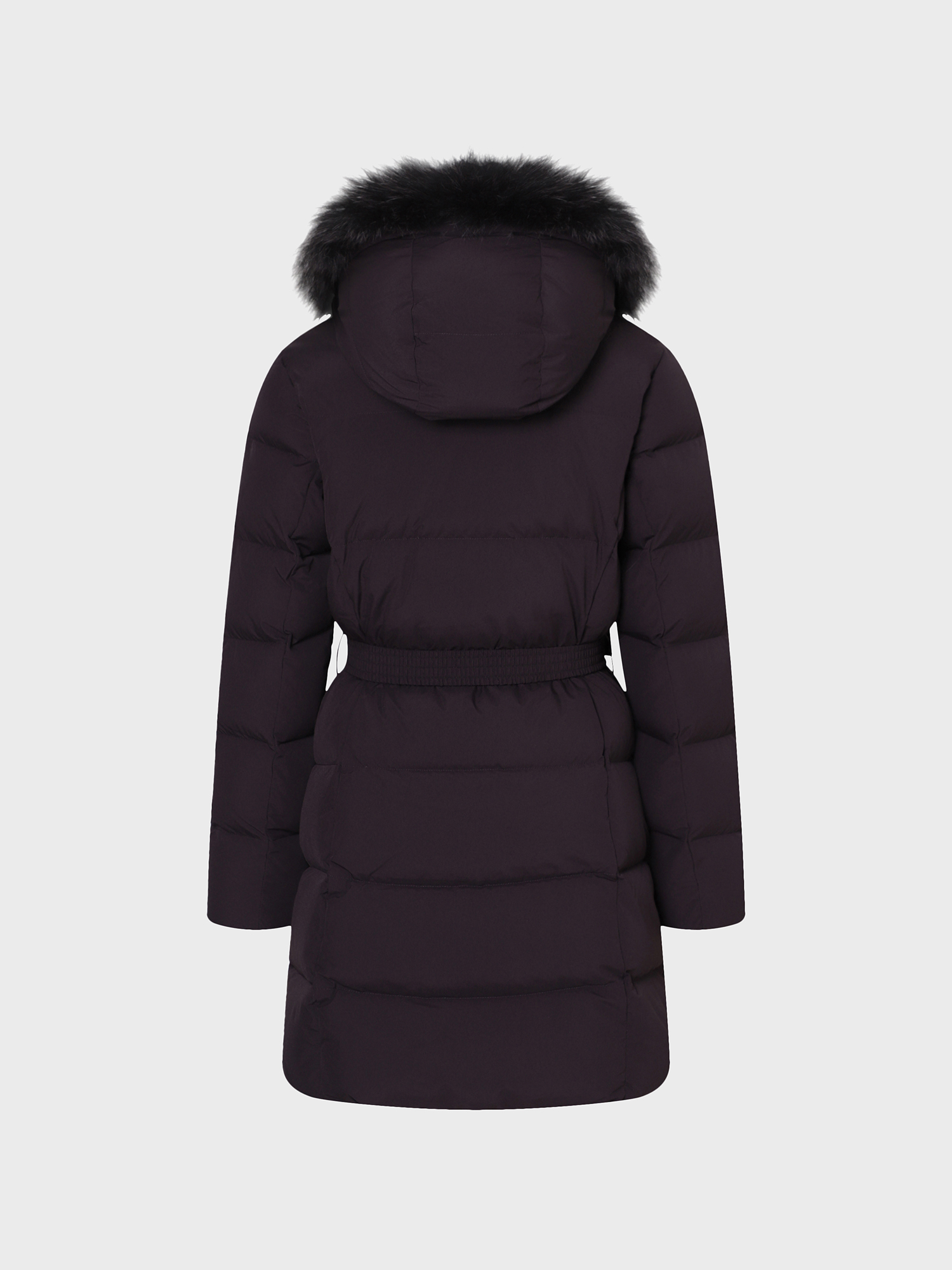 - 가볍고 소프트한 폴리 2L 소재와 유럽 사가퍼 블루폭스 30MM가 적용된 앨리스 기장감의 여성 퍼 다운