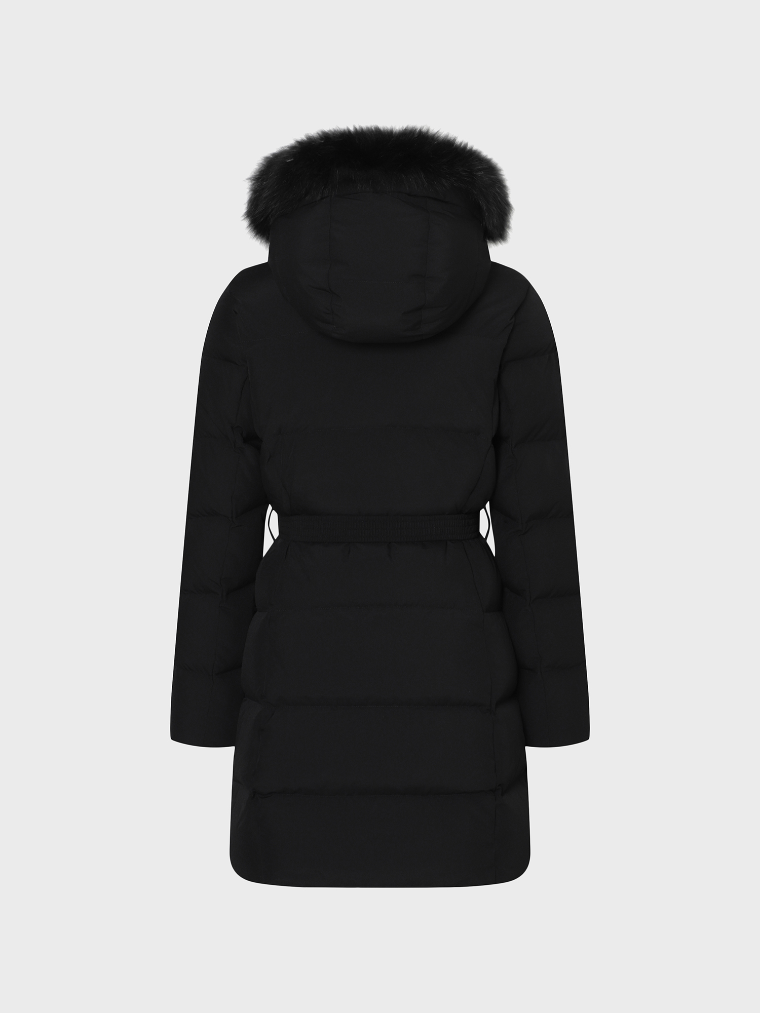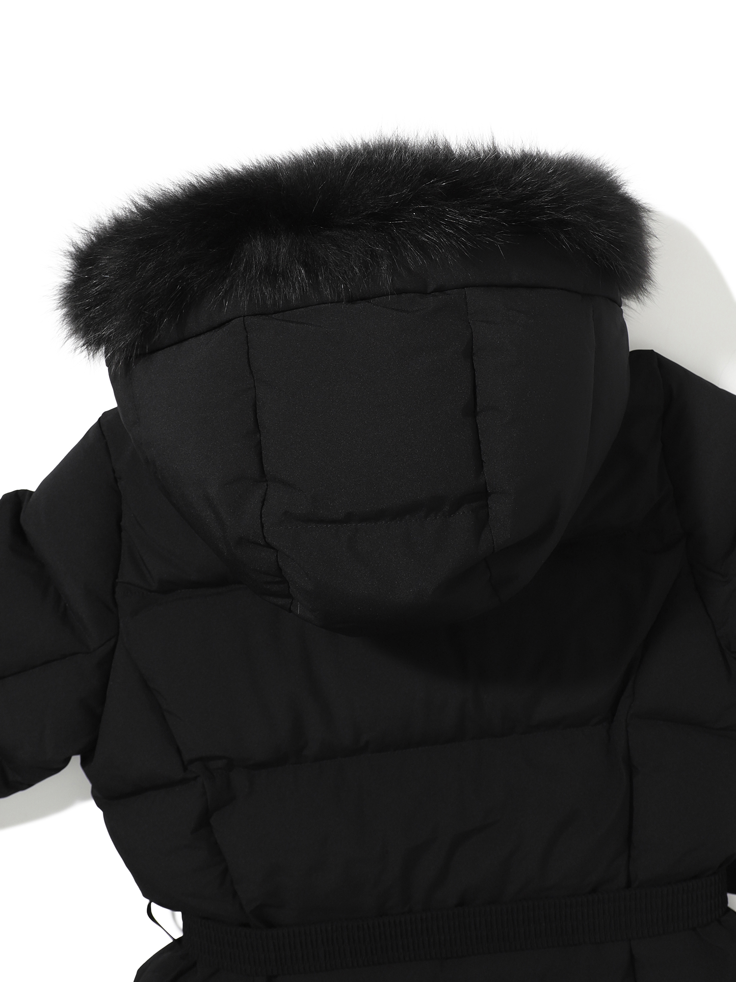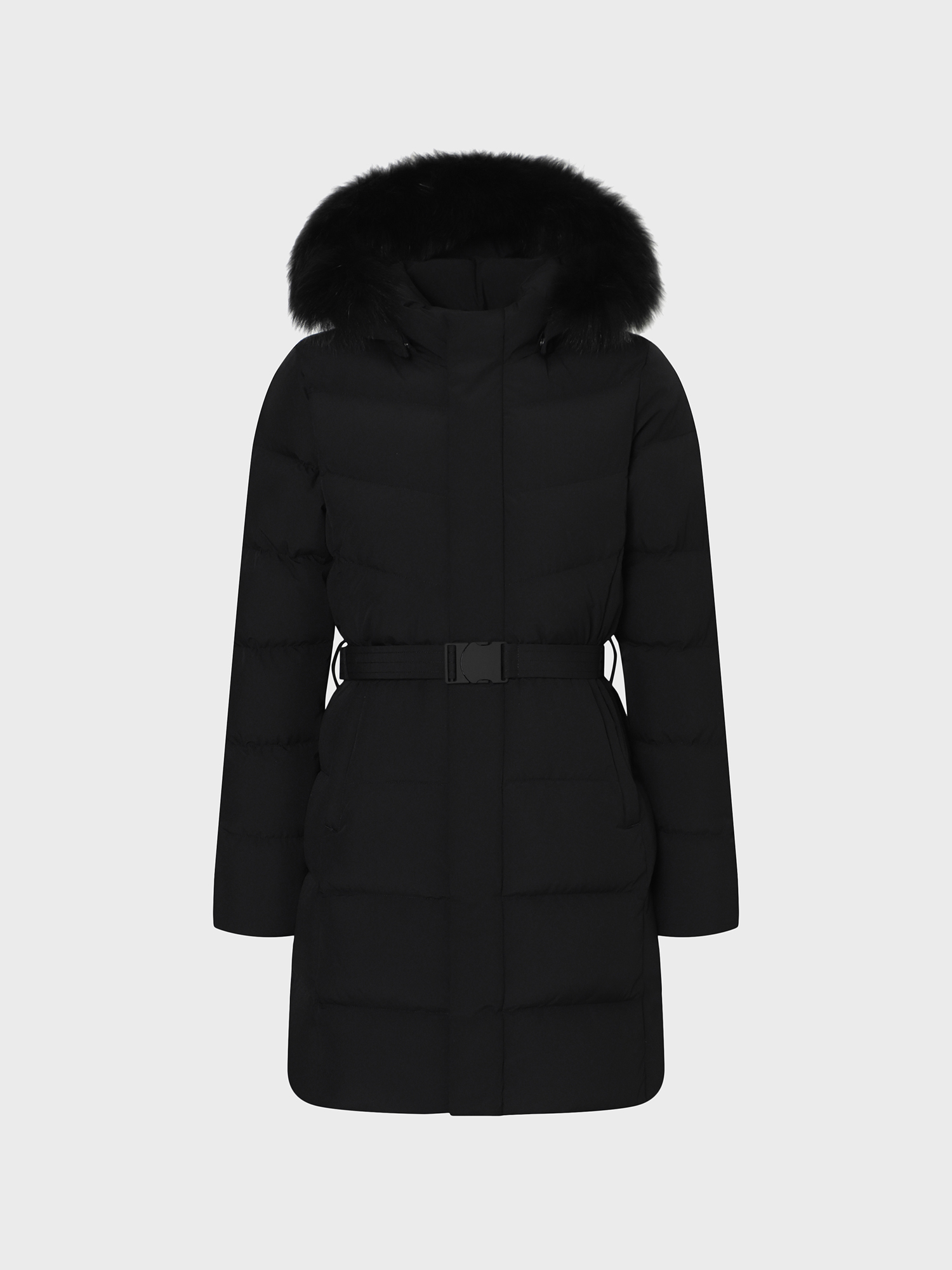 - 가볍고 소프트한 폴리 2L 소재와 유럽 사가퍼 블루폭스 30MM가 적용된 앨리스 기장감의 여성 퍼 다운
