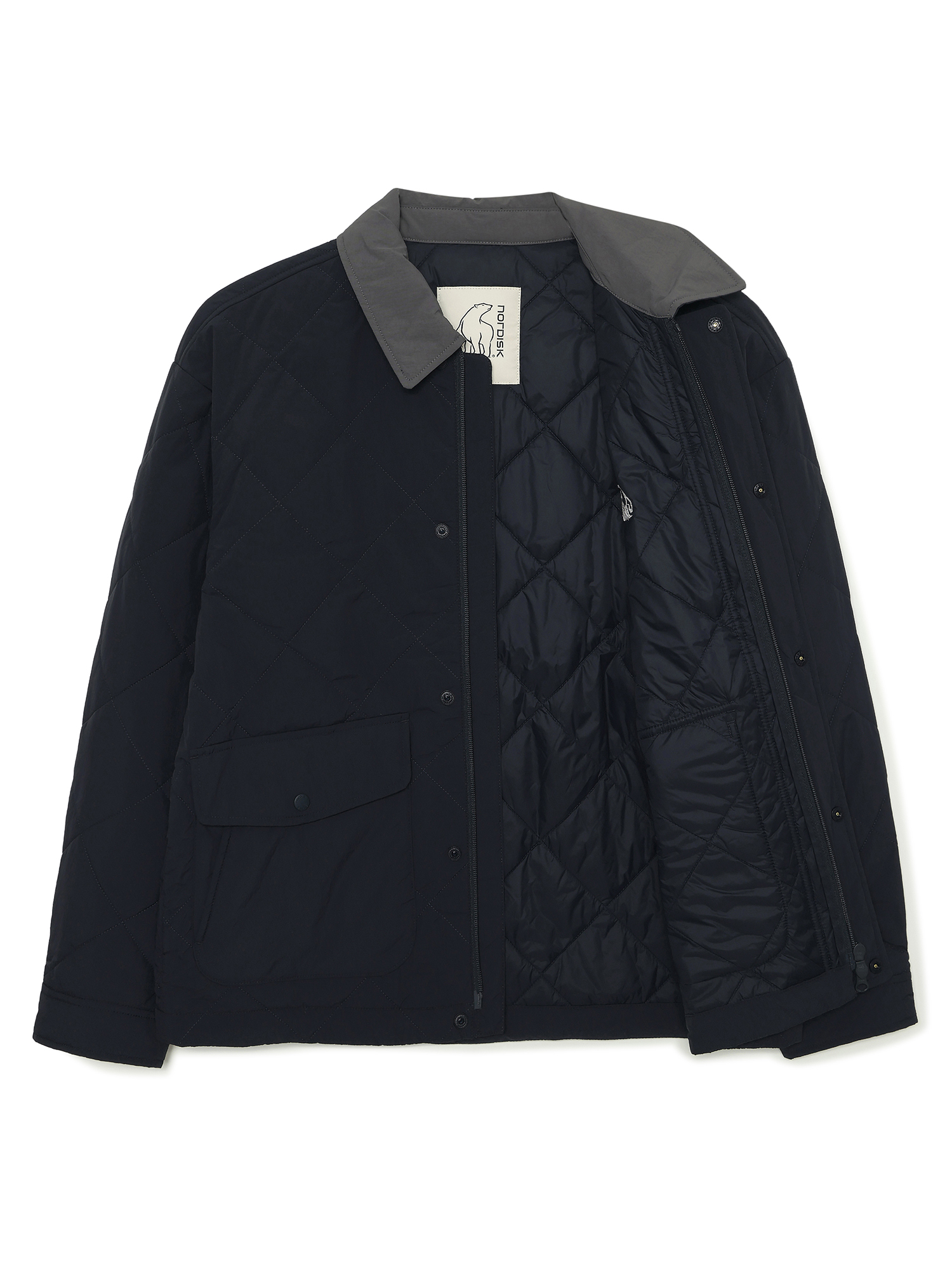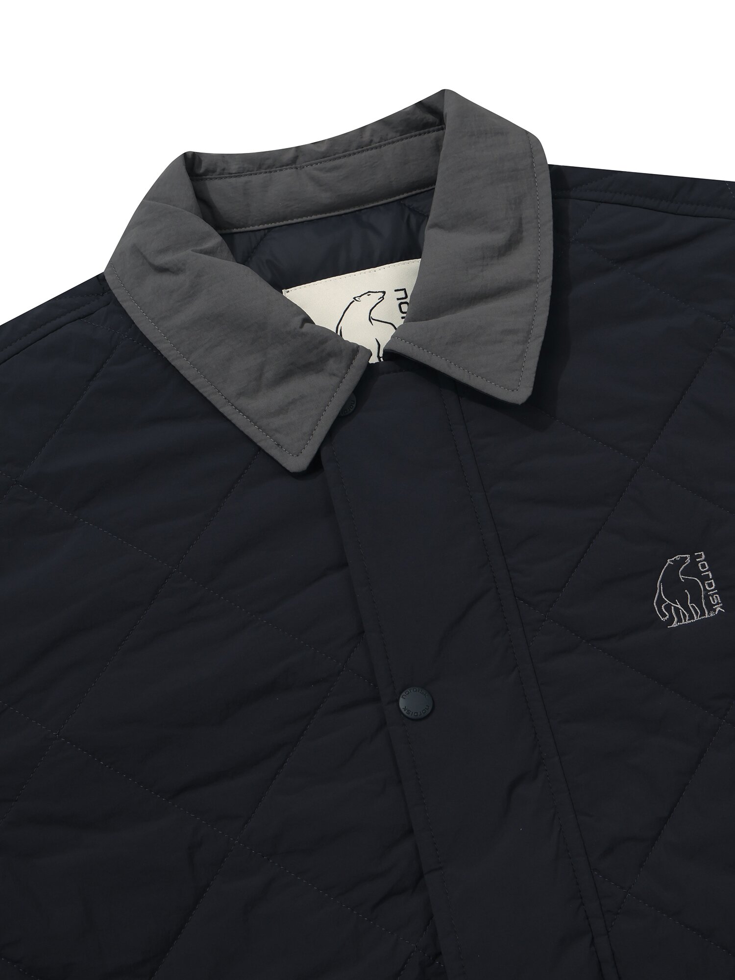 - 2 oz 패딩 충전재를 사용하여 간절기 시즌 활용도가 높은 카라 퀼팅 자켓