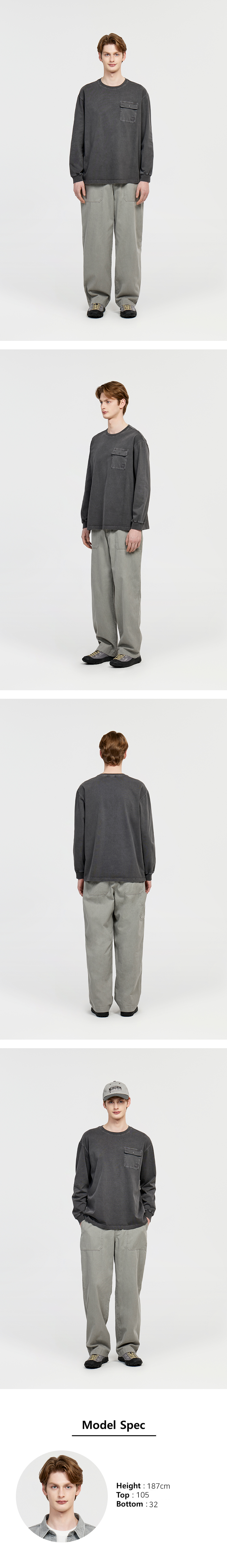 - 면 100% 소재를 사용하고 가먼트 워싱 기법으로 자연스러운 빈티지한 컬러를 표현한 상품