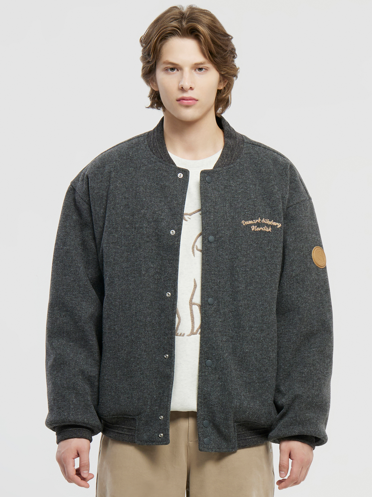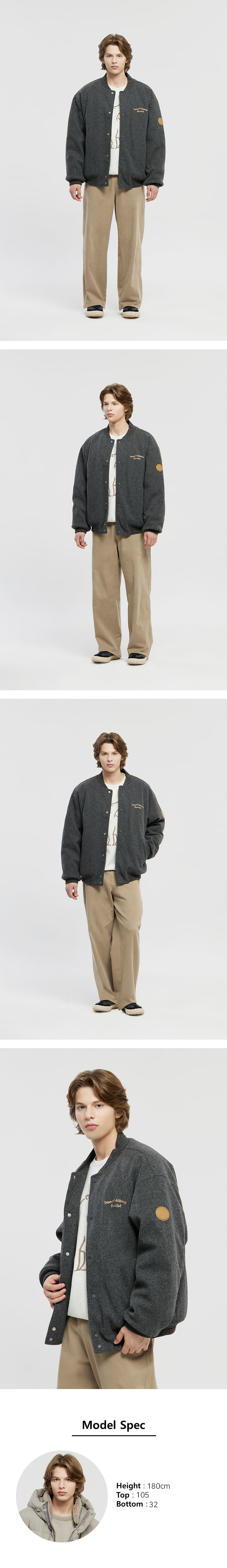 [울라이크 소재를 사용한 바시티 자켓]