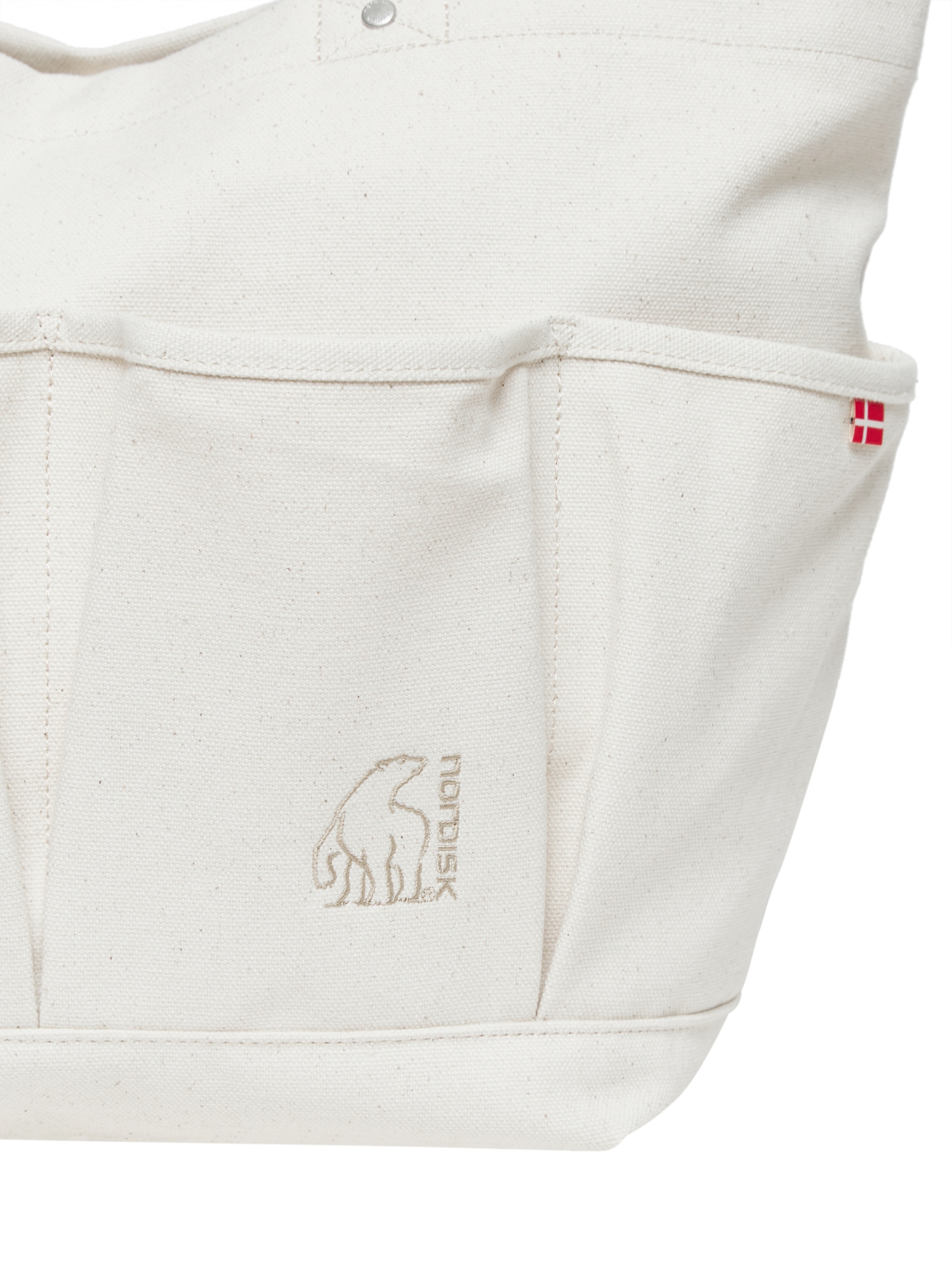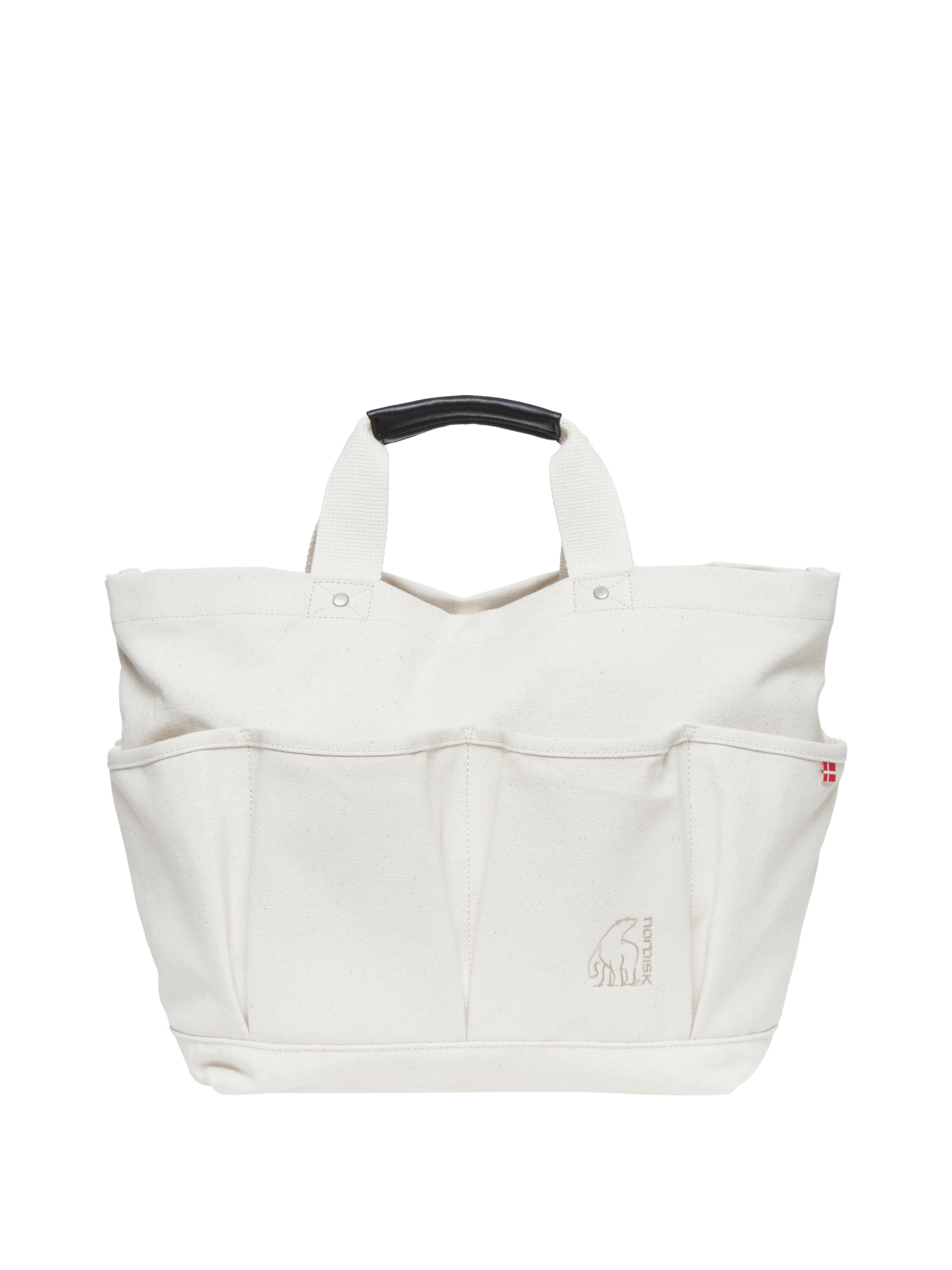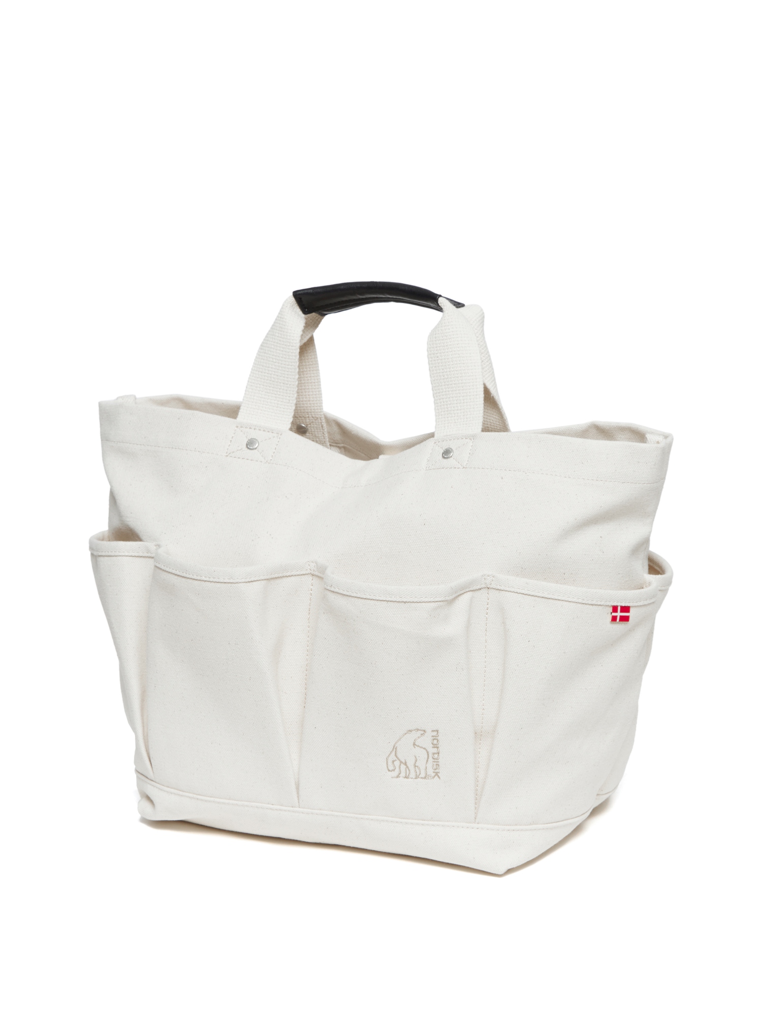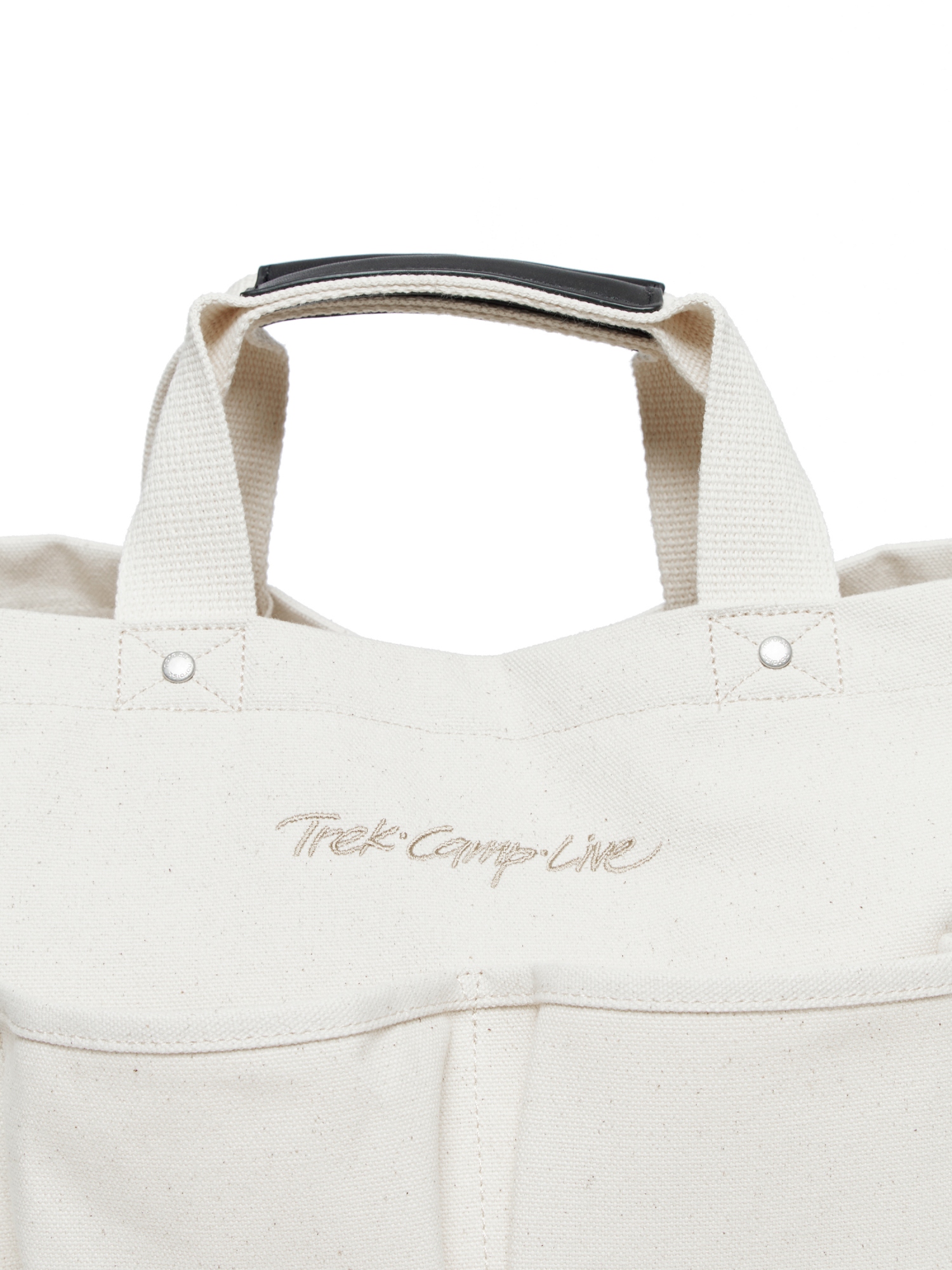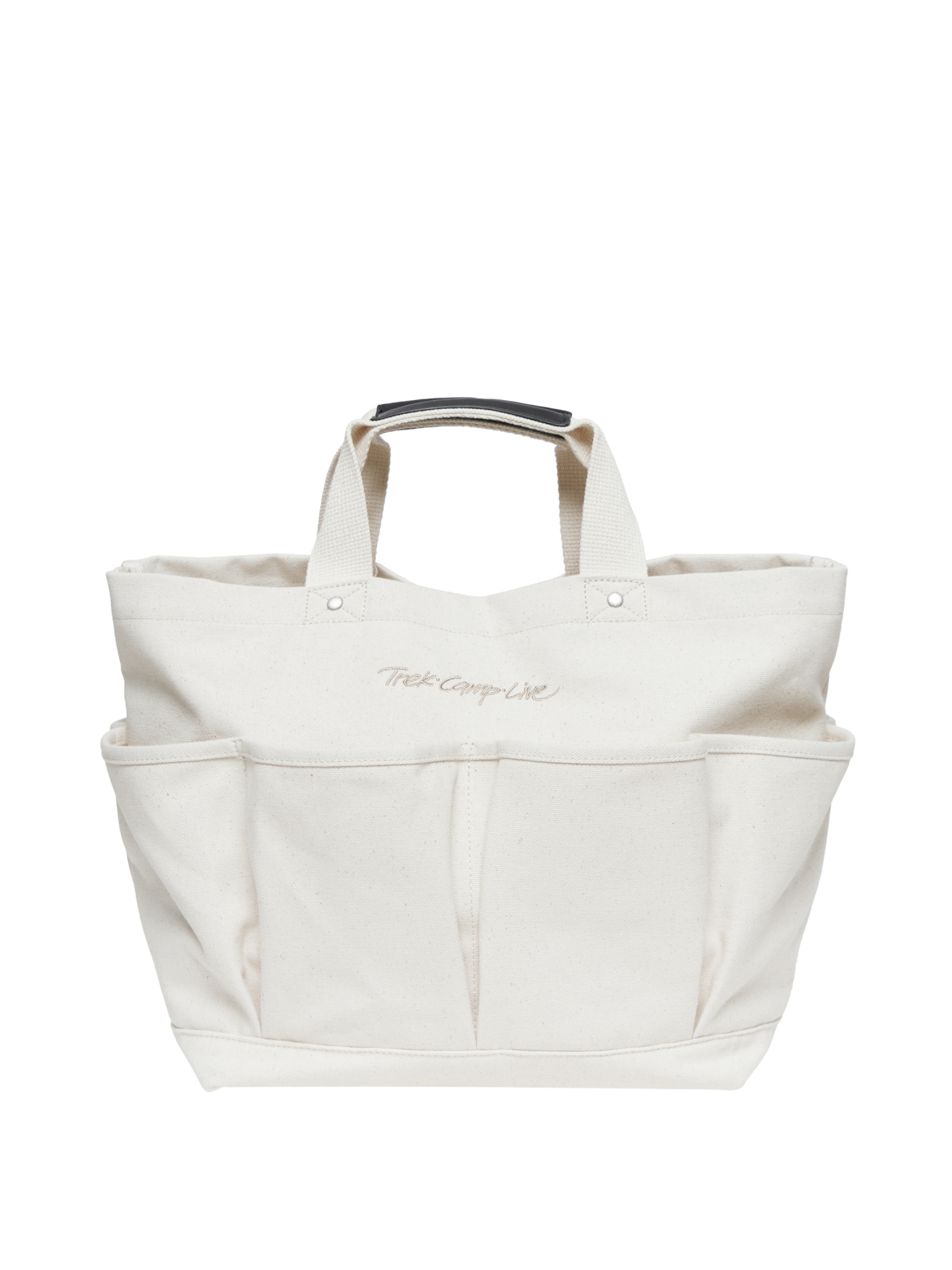 - 코튼 소재의 아웃포켓 디테일의 토트백