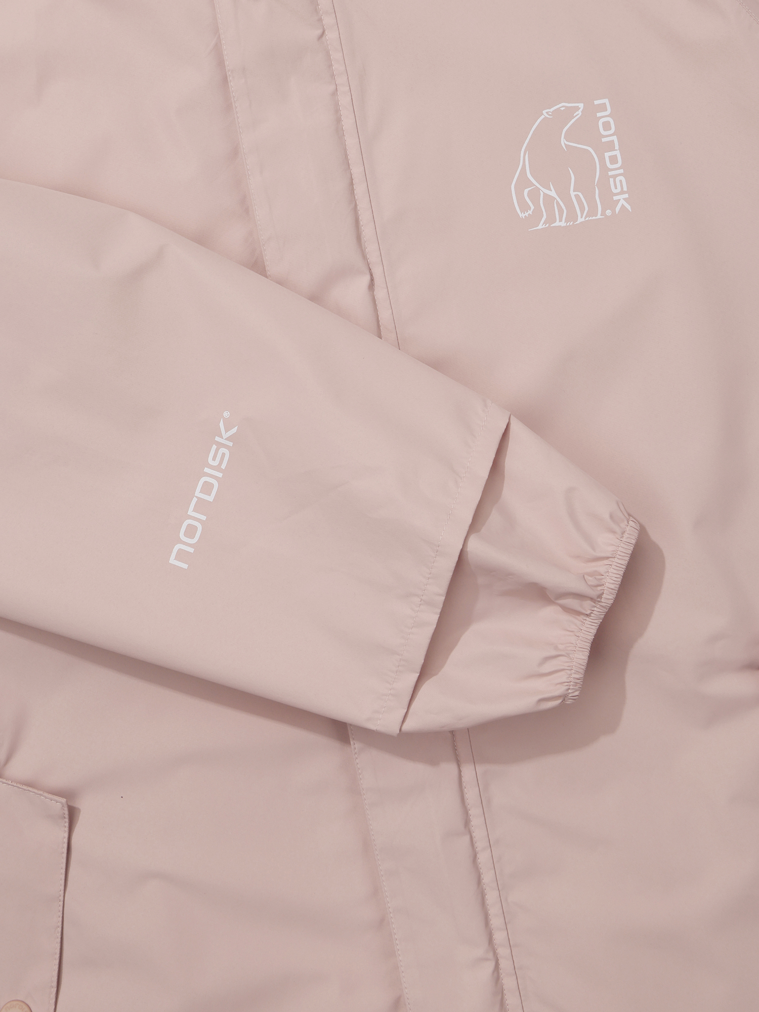 - 전면 및 소매에 재귀반사 로고 프린트 적용