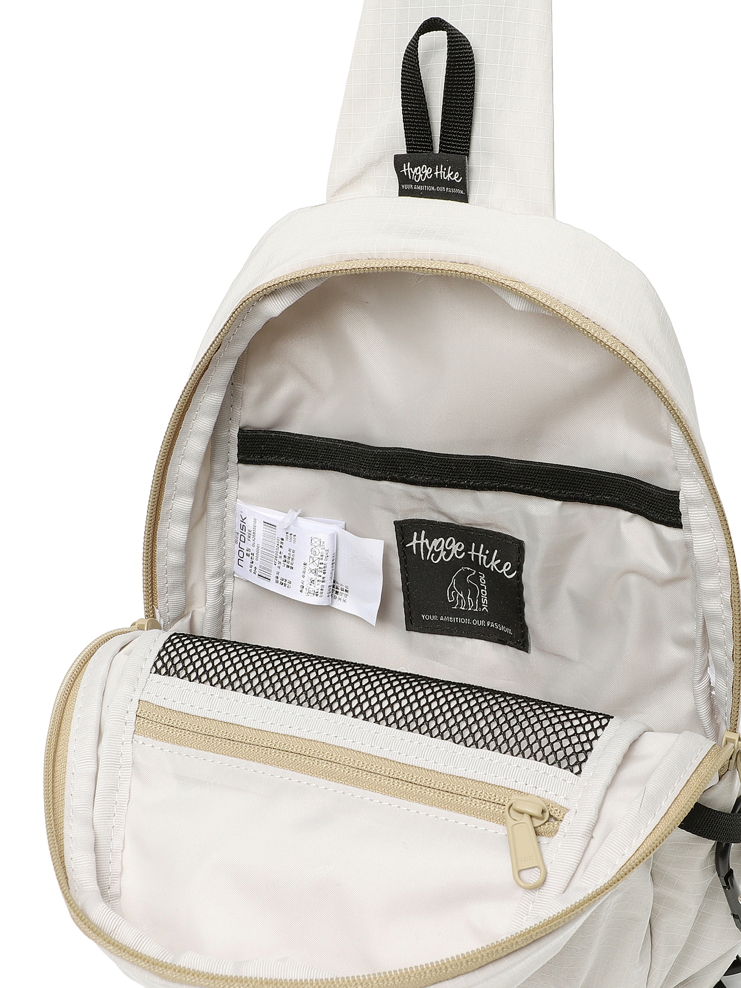 - 전면 스트링 포켓, 후면 히든 포켓, 내부 오픈, 지퍼 포켓 등 다양한 포켓 구성으로 분리 수납 강화