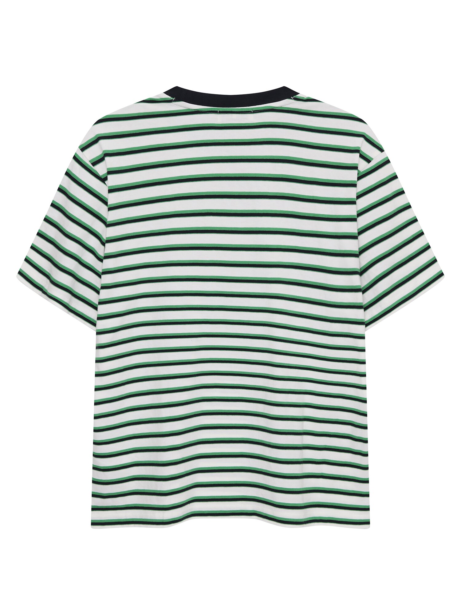 [캐주얼한 무드의 멀티 스트라이프 반팔 티셔츠]