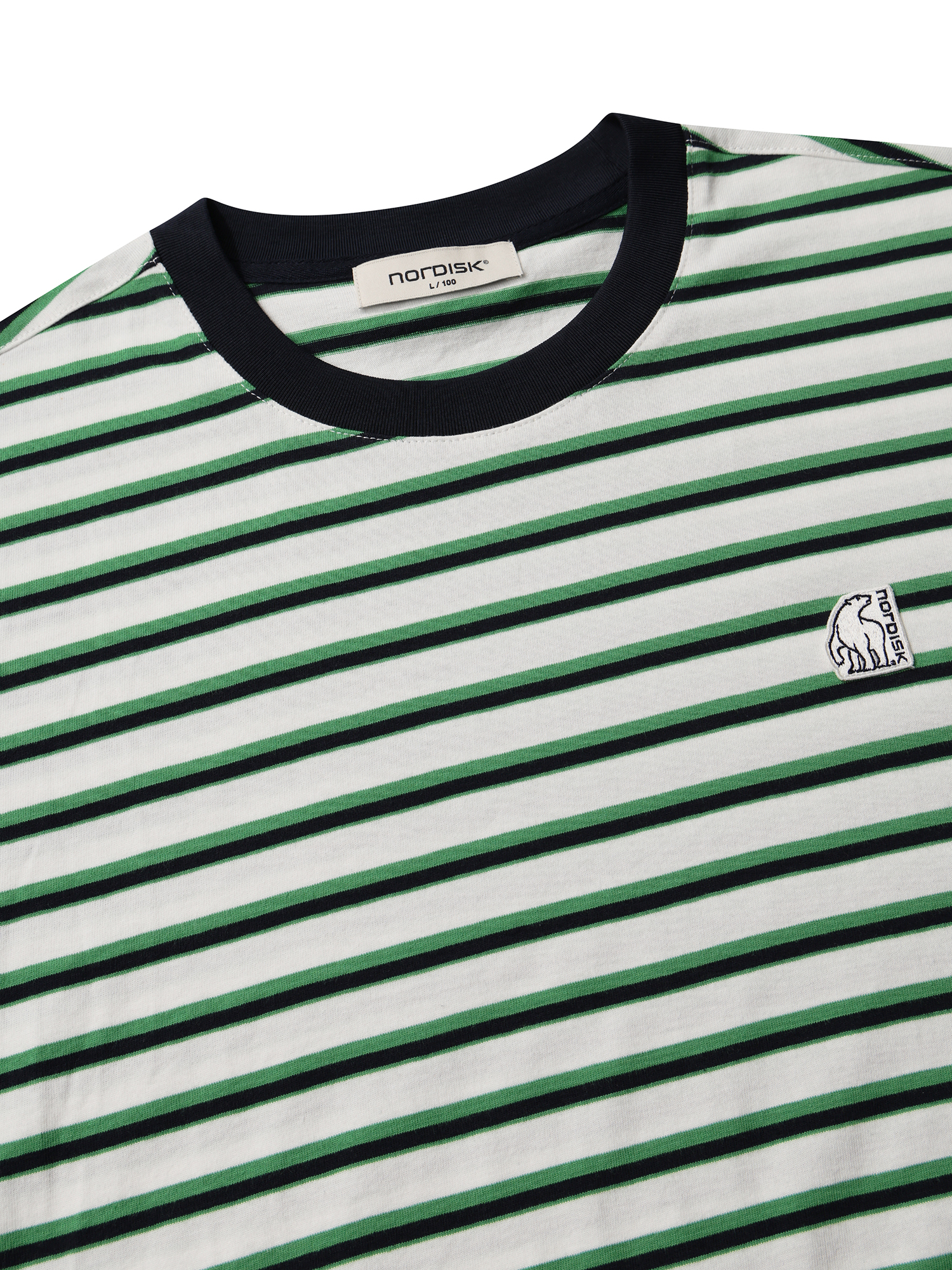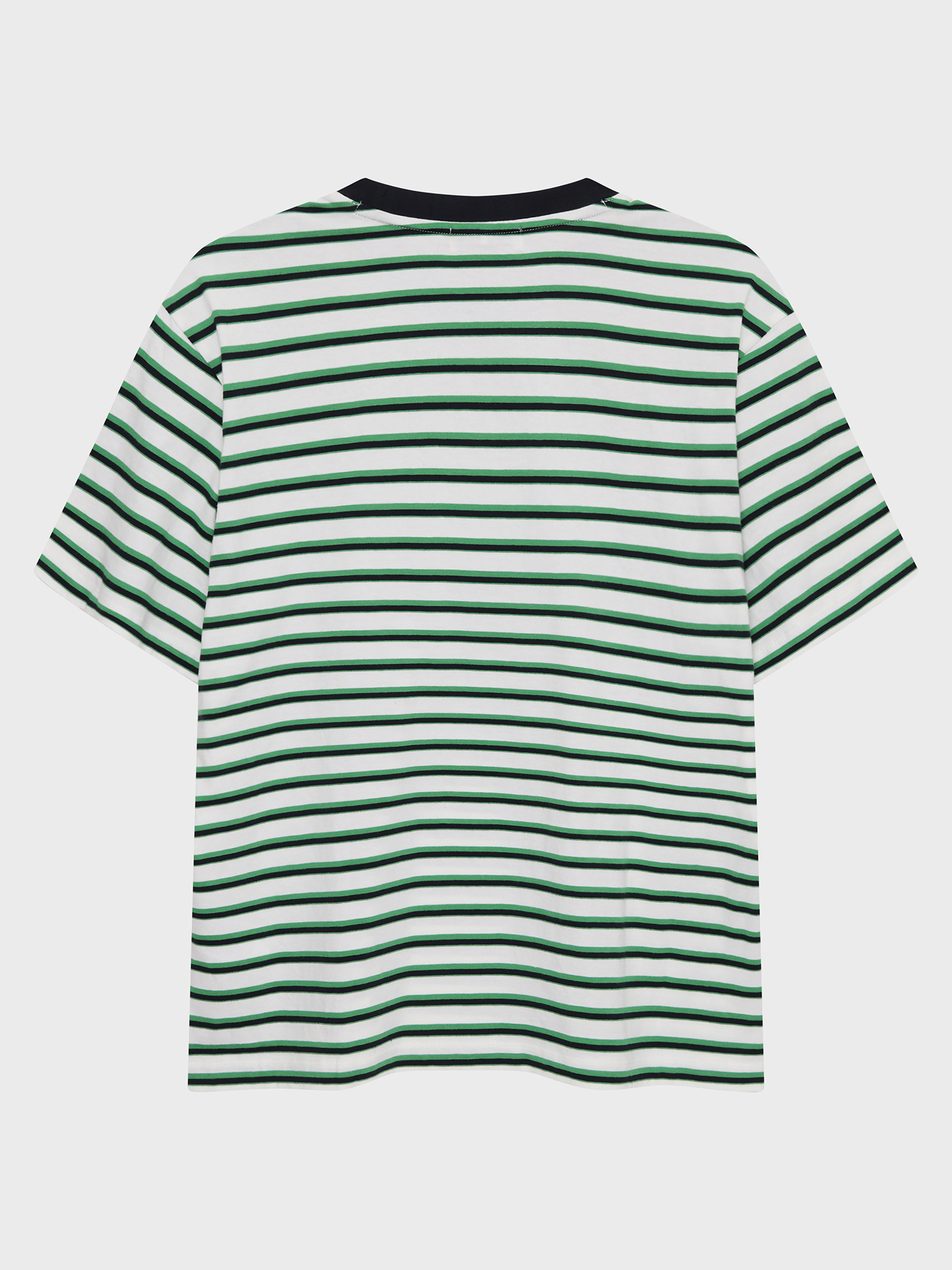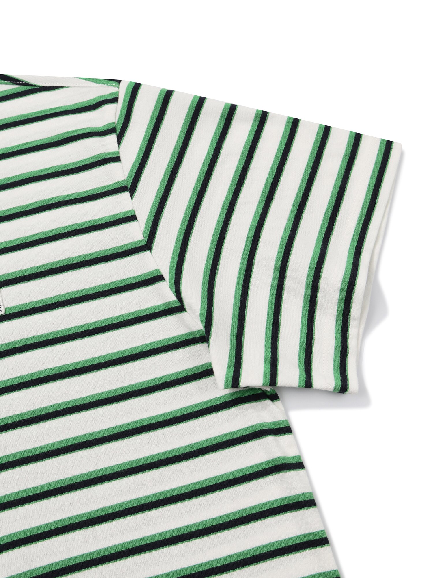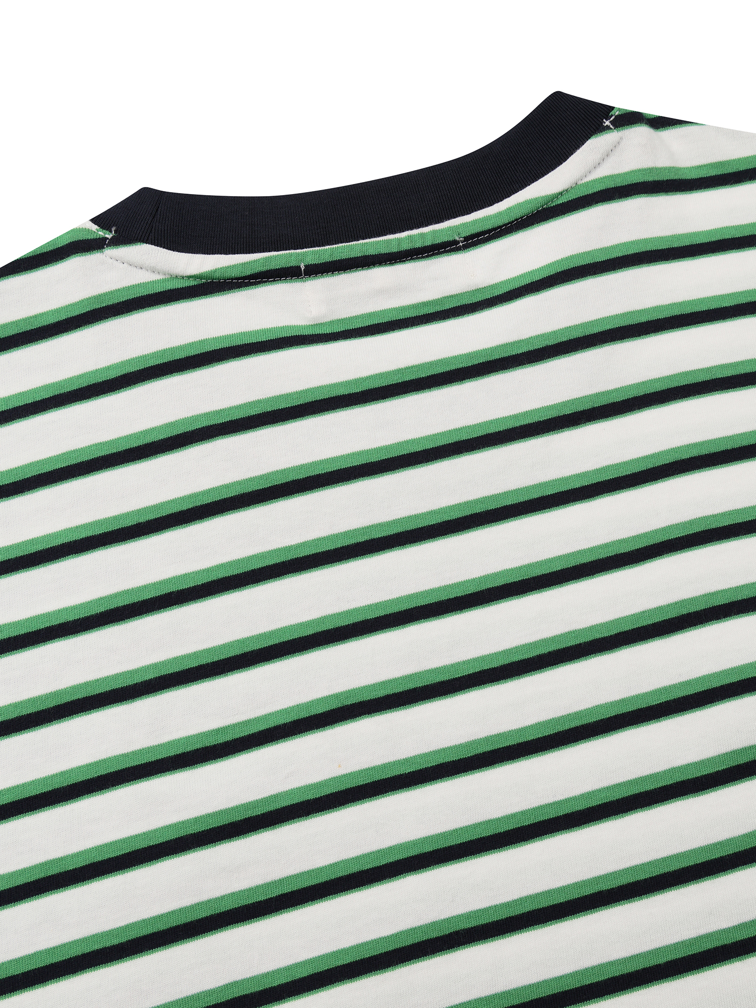 - 경쾌하고 시원해보이는 멀티 스트라이프 패턴과 넥 배색 디자인 적용