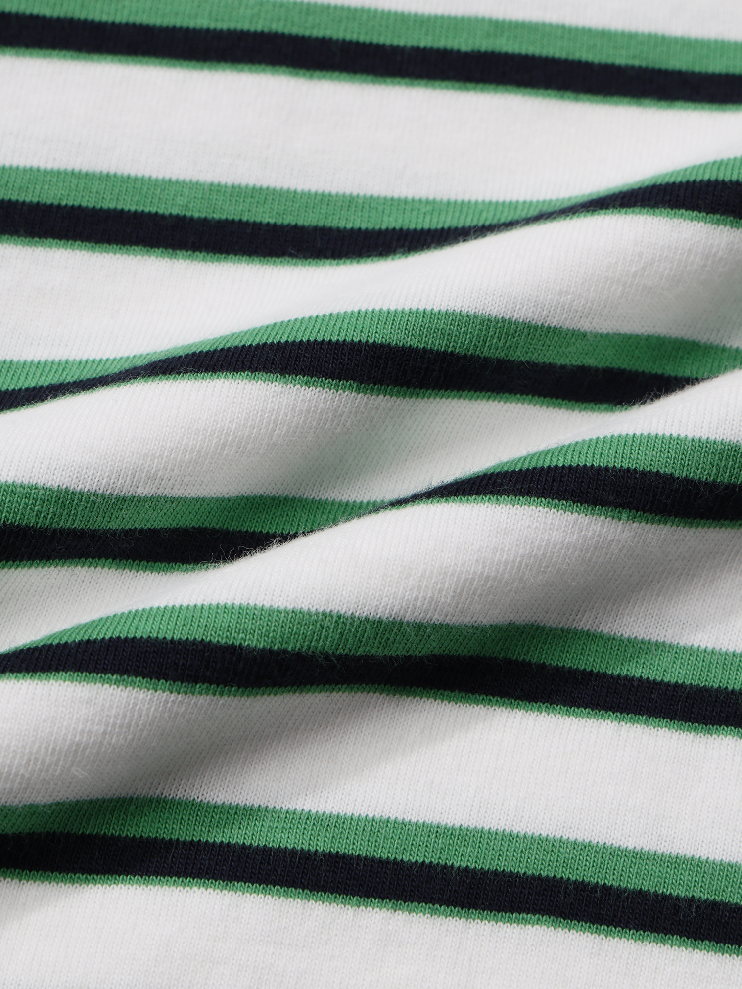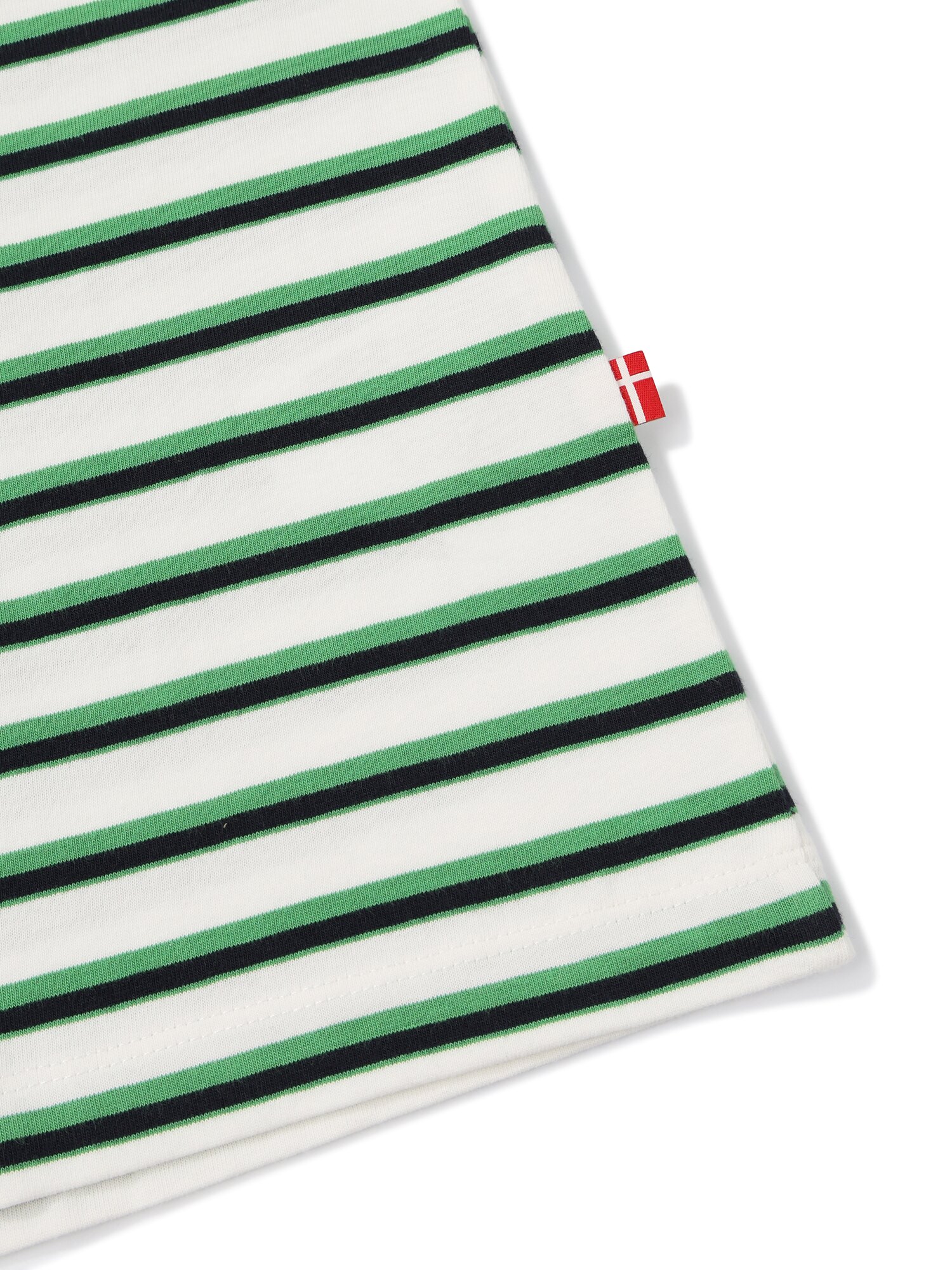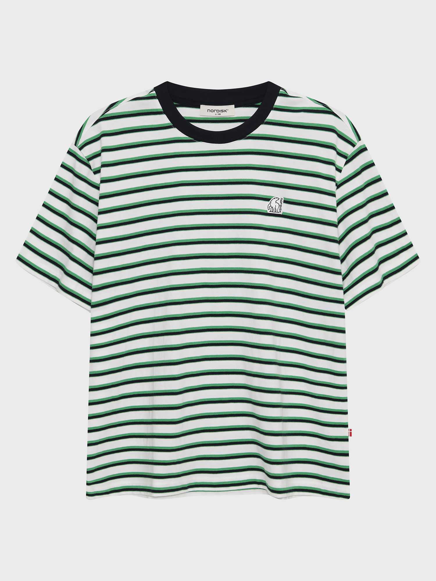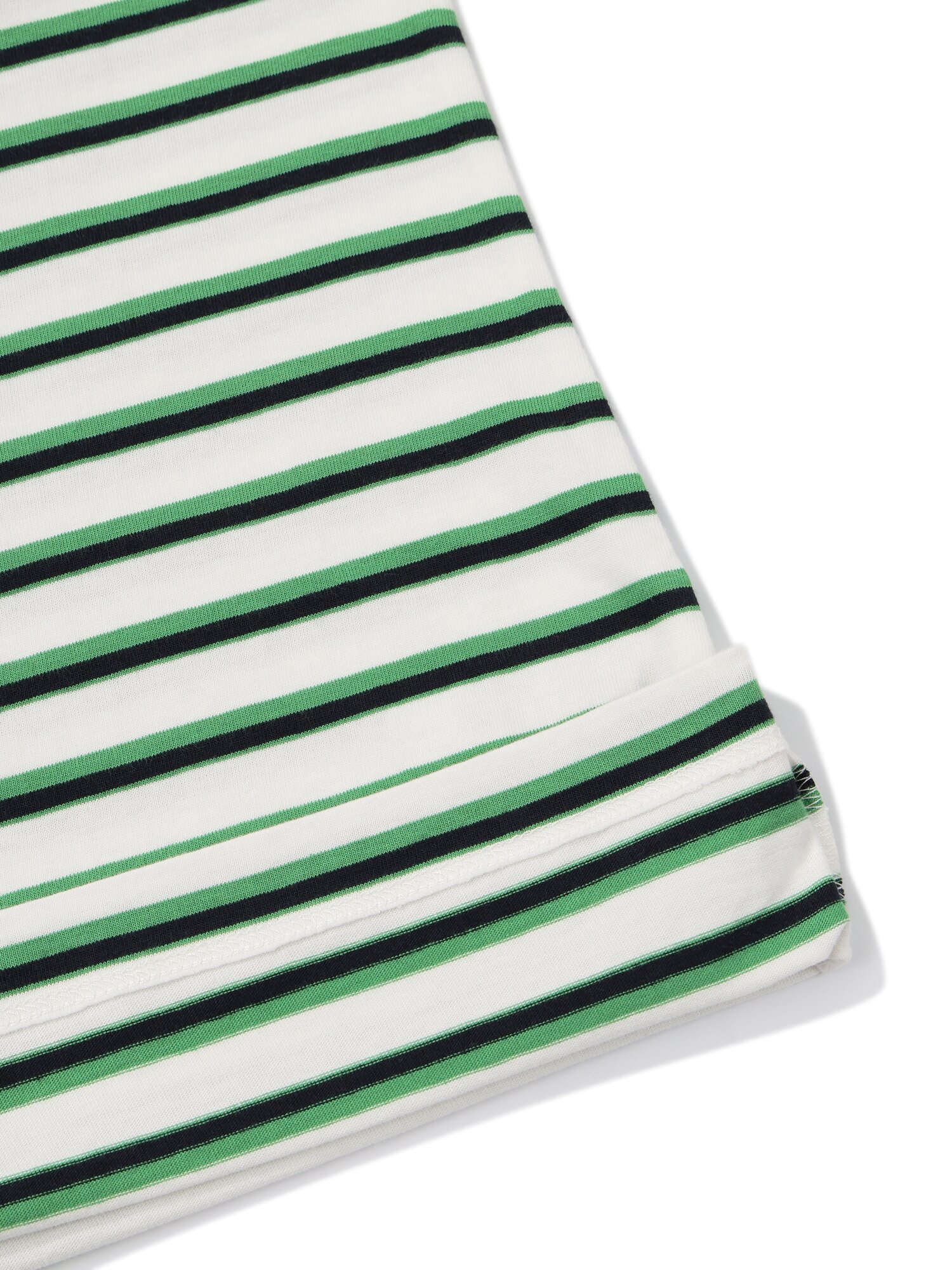 - 경쾌하고 시원해보이는 멀티 스트라이프 패턴과 넥 배색 디자인 적용