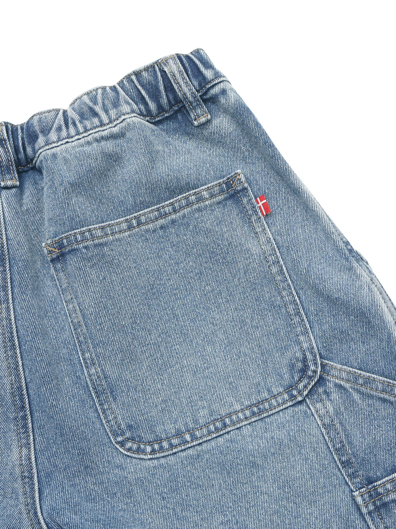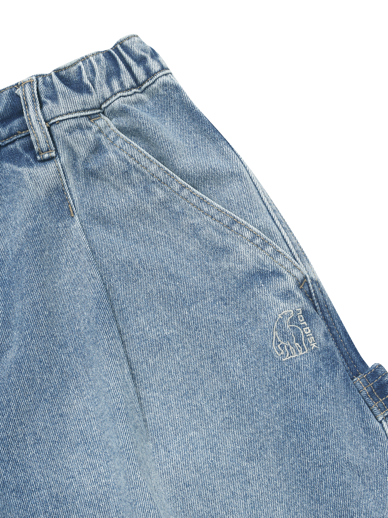 - 실루엣을 안정적으로 연출할 수 있는 탄탄한 내구성의 데님 소재 적용