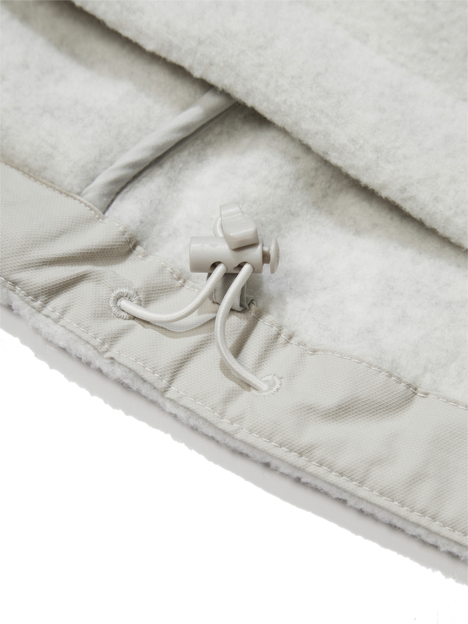 - 앞 지퍼와 스냅을 통해 착장 가능하며 밑단 스트링을 조여 입을수 있음