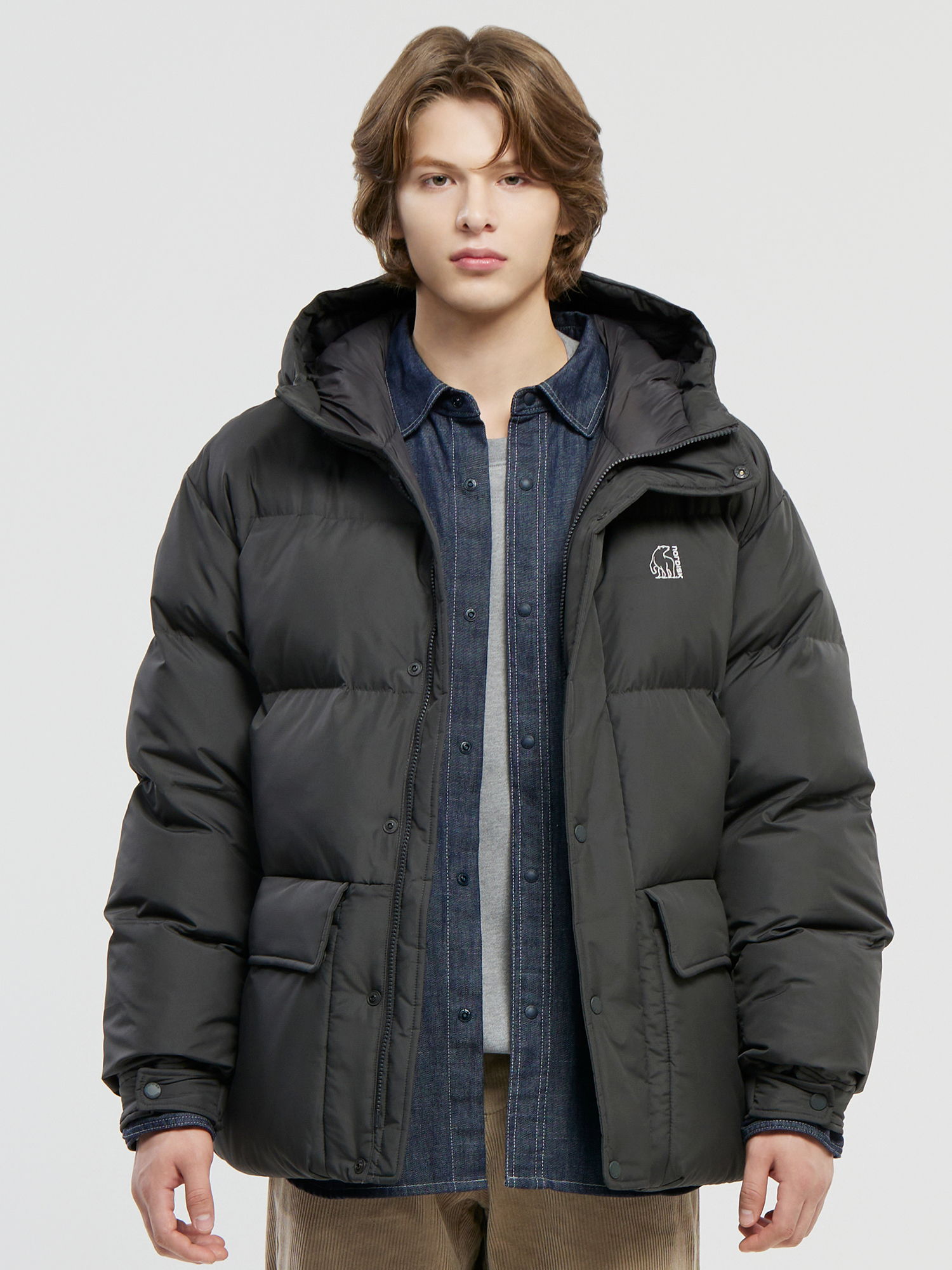 [다운라이크 충전재를 사용한 후드 패딩점퍼]