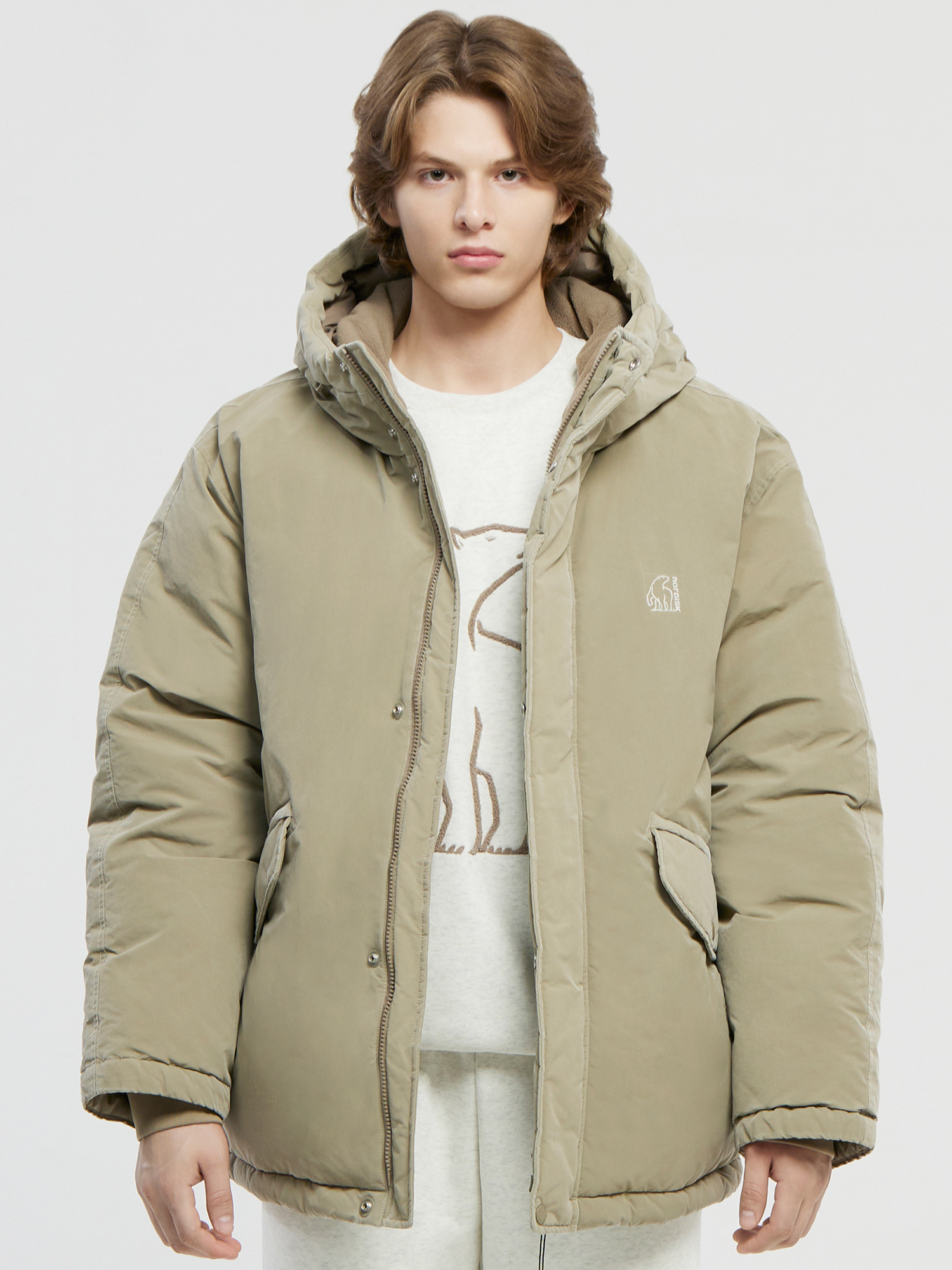 워시드 밸런스 크리스탈다운 후디 점퍼 - U (Beige)