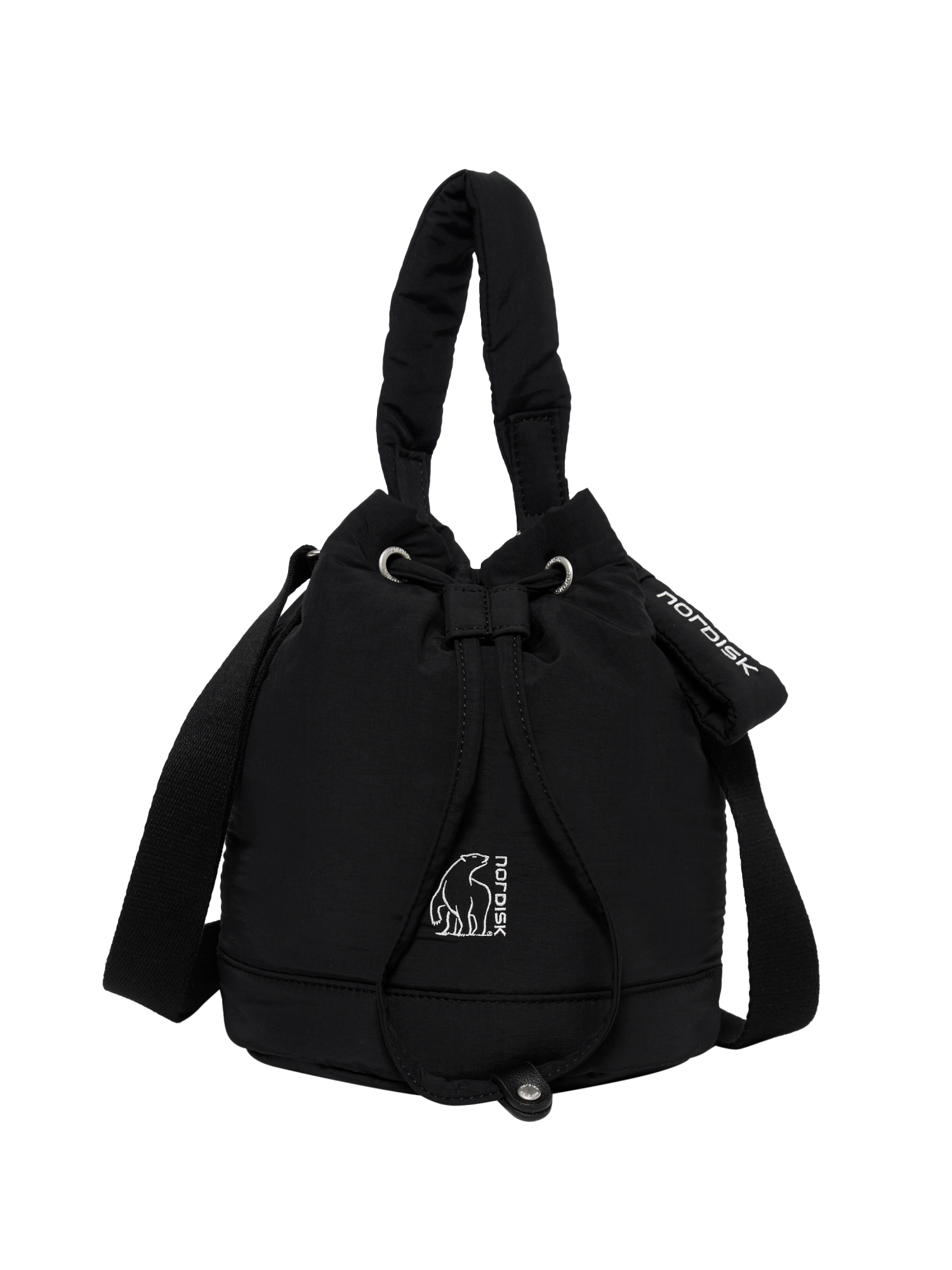 - 경량 겉감 원단에 얇은 패딩 충전재를 넣어 포근한 외관과 감촉의 버킷백
