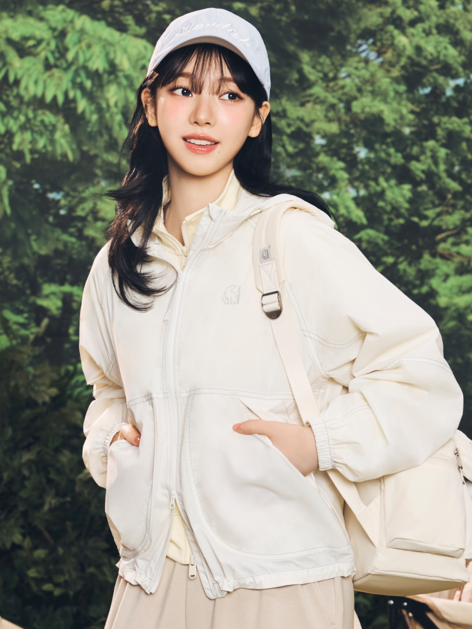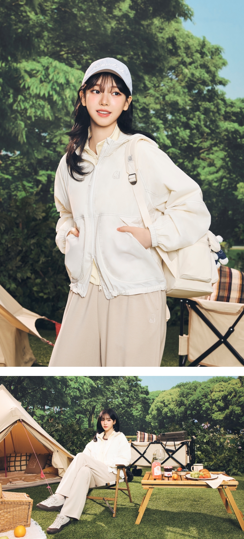 - 밑단, 후드 스트링과 스토퍼 사용, 뒷넥 안쪽 행잉고리 부착으로 다양한 편의기능 제공