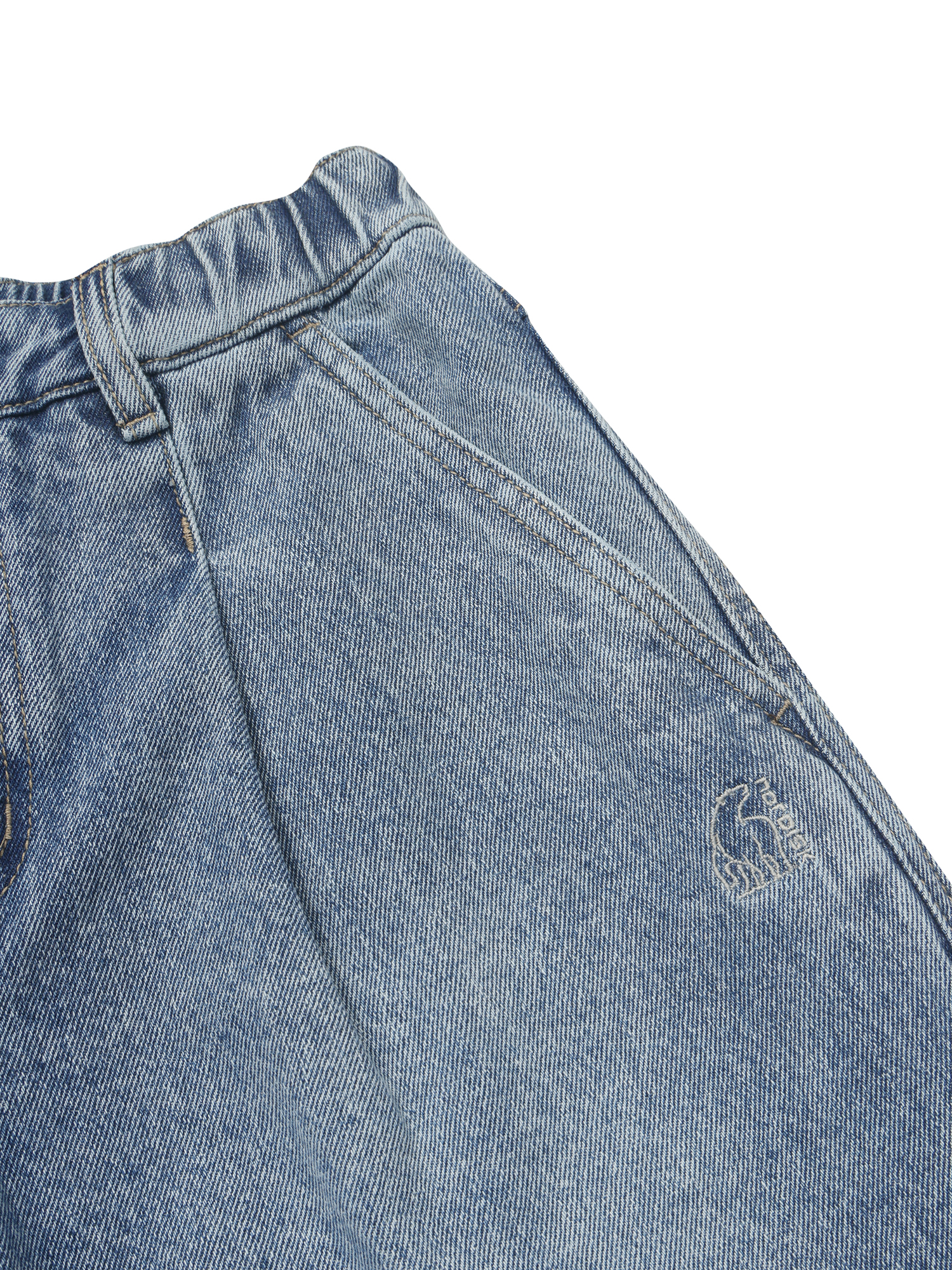 - 실루엣을 안정적으로 연출할 수 있는 탄탄한 내구성의 데님 소재 사용