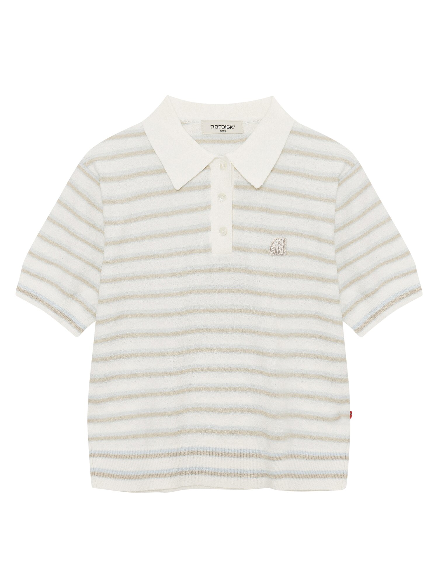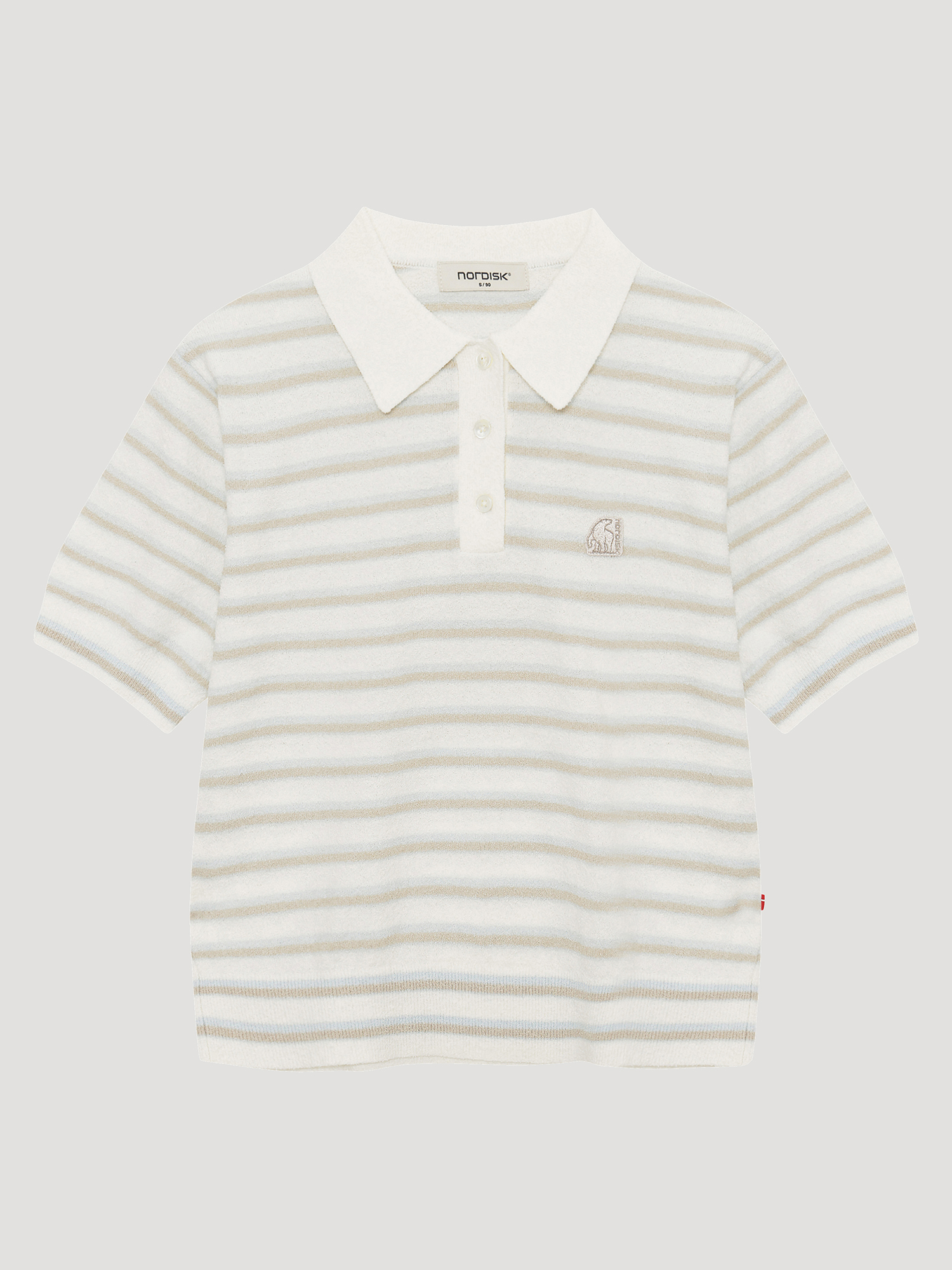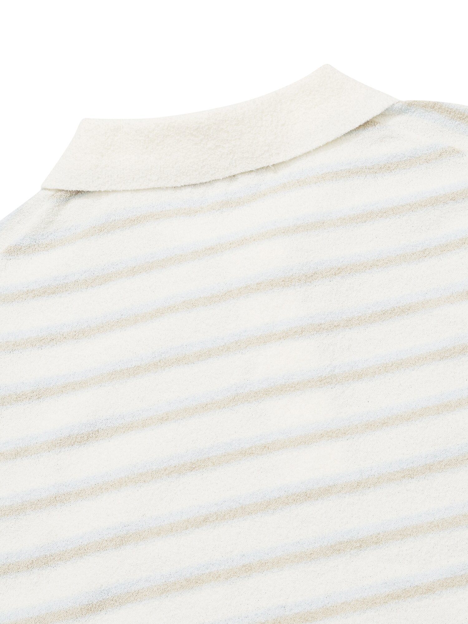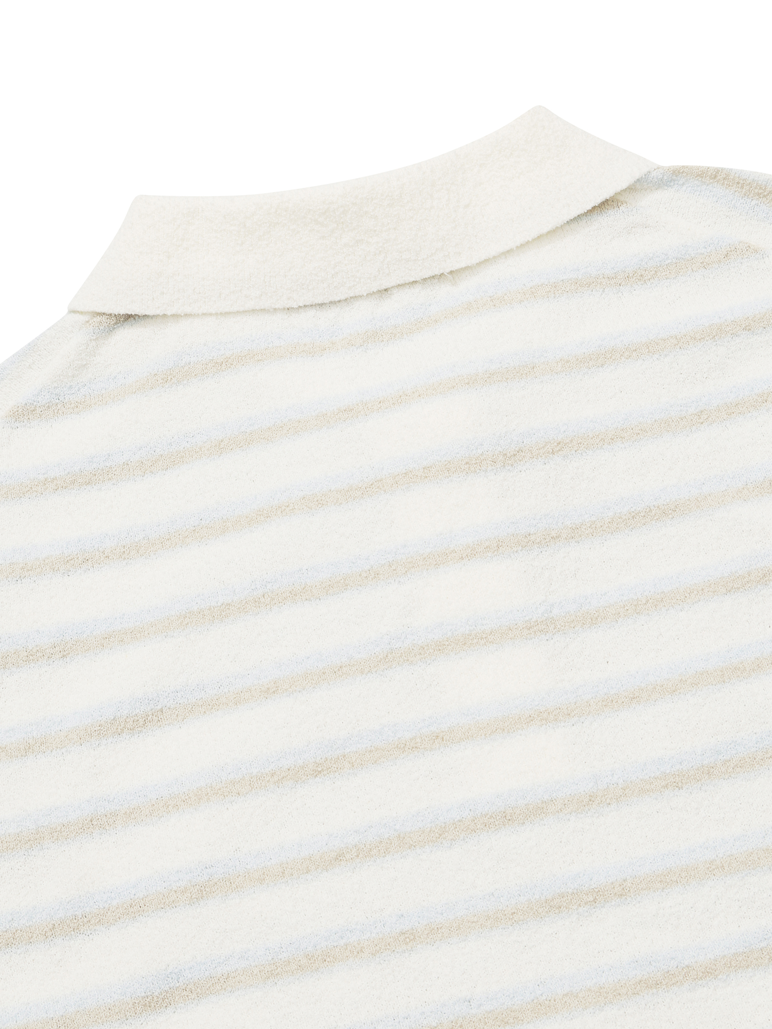 [부드러운 부클 원사의 여성 반팔 스트라이프 폴로 스웨터]