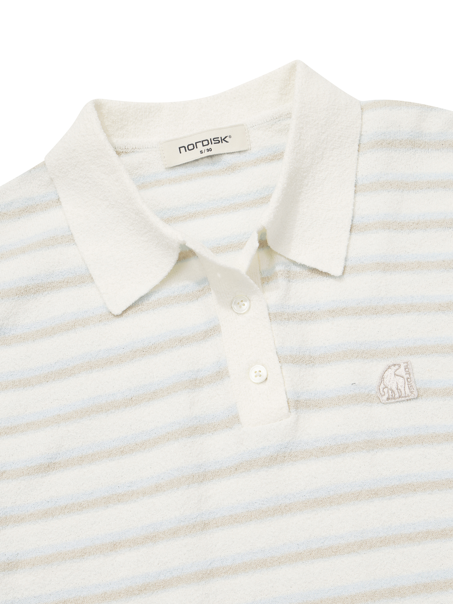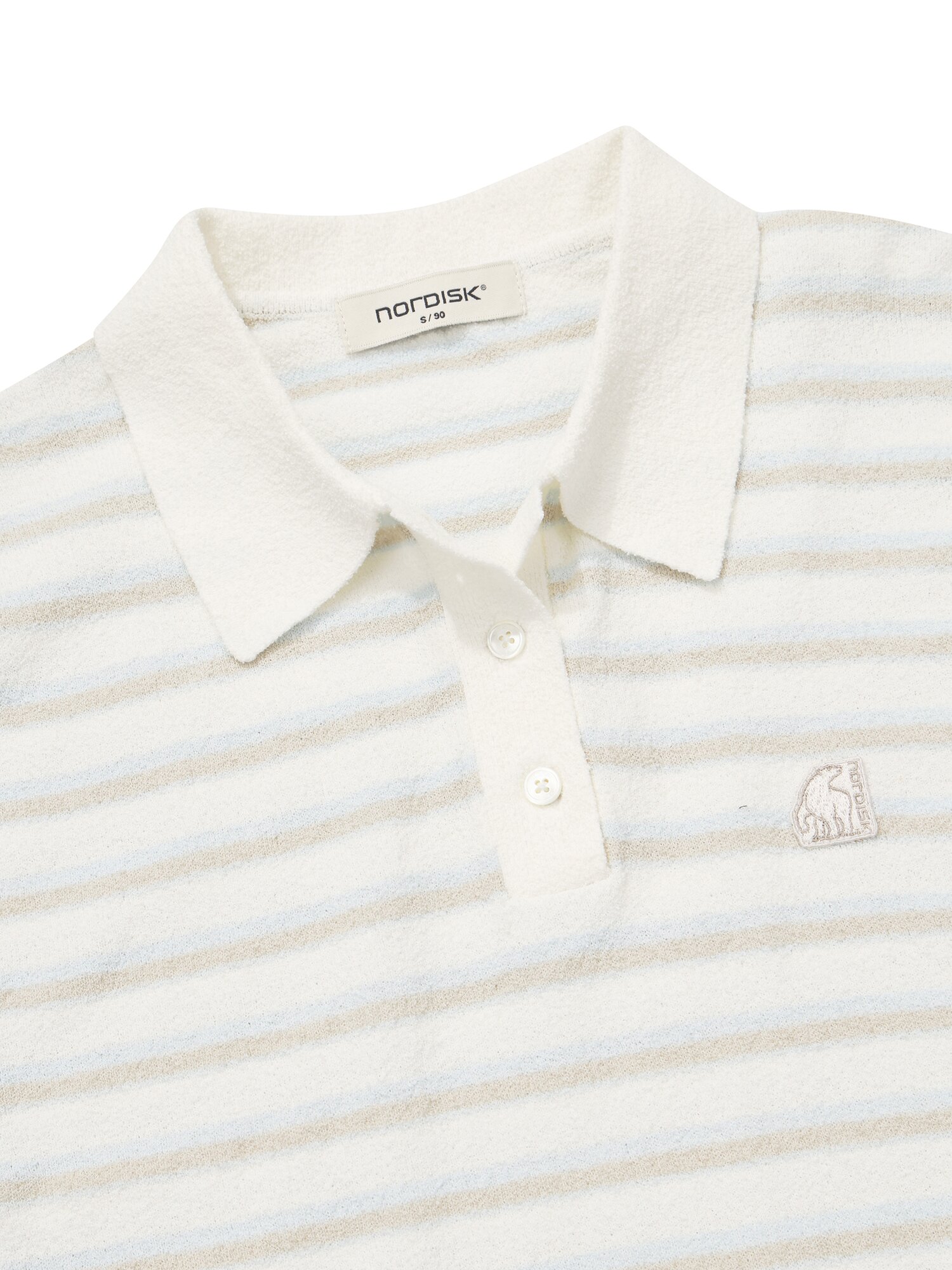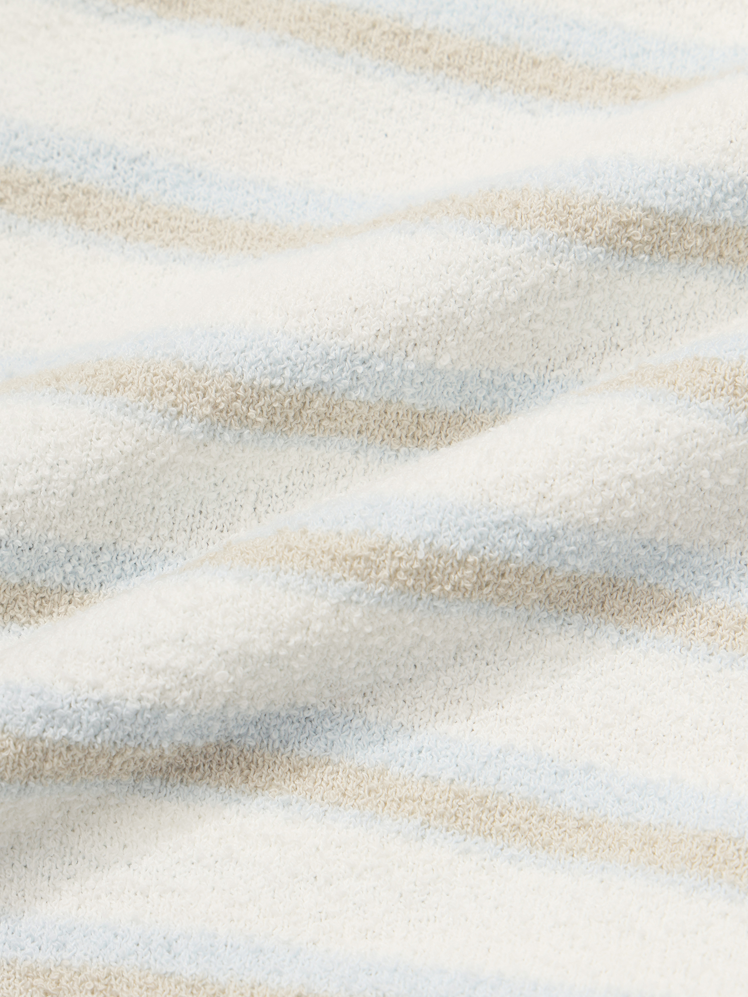 - 코튼 나일론 혼방의 부클 원사를 사용하여 시원한 터치감과 고급스러운 외관