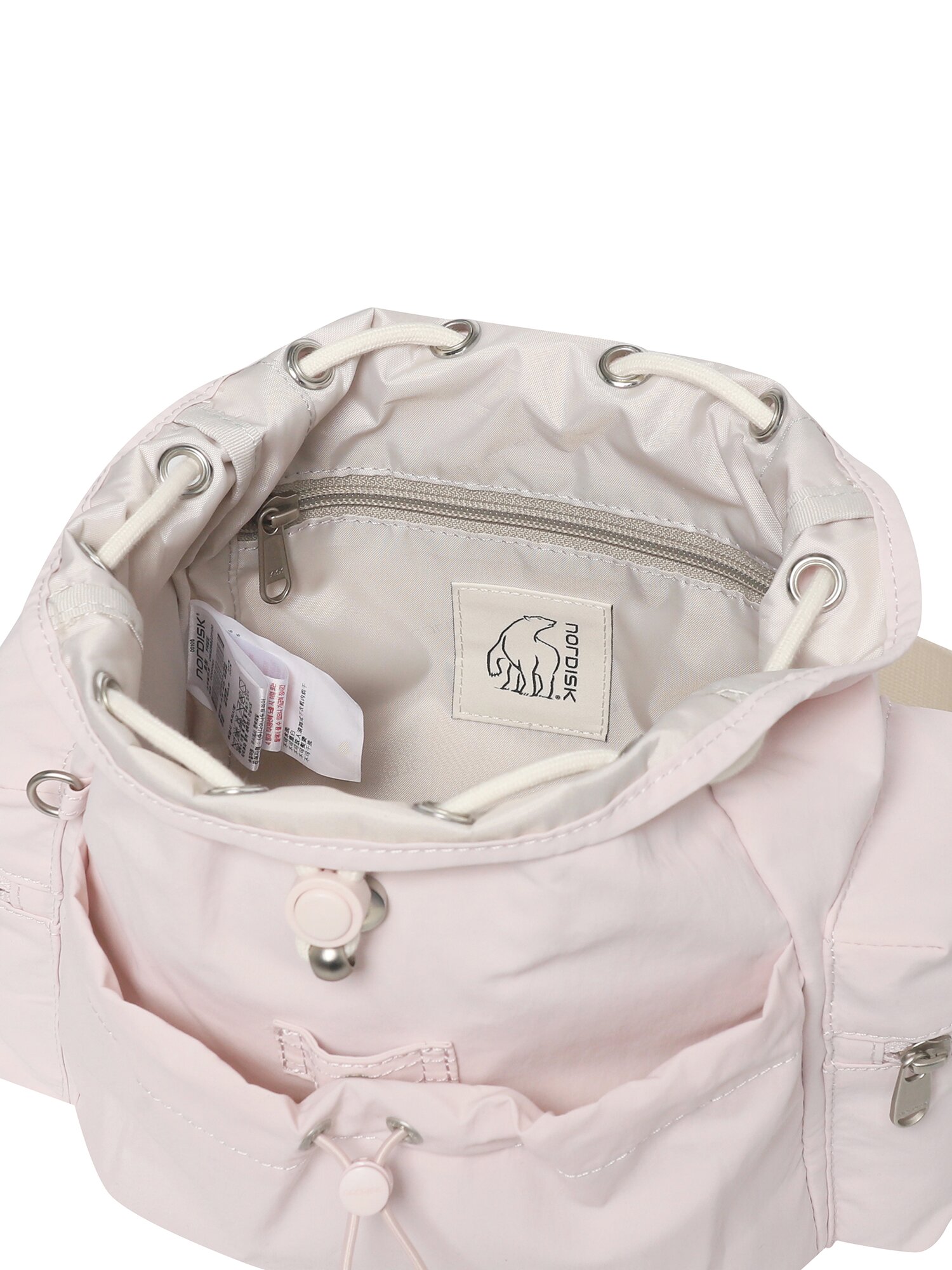 - 전면 스트링 포켓에 자주 사용하는 소지품을 간편하게 보관할 수 있고, 내부 스냅 단추로 이중 잠금 제공