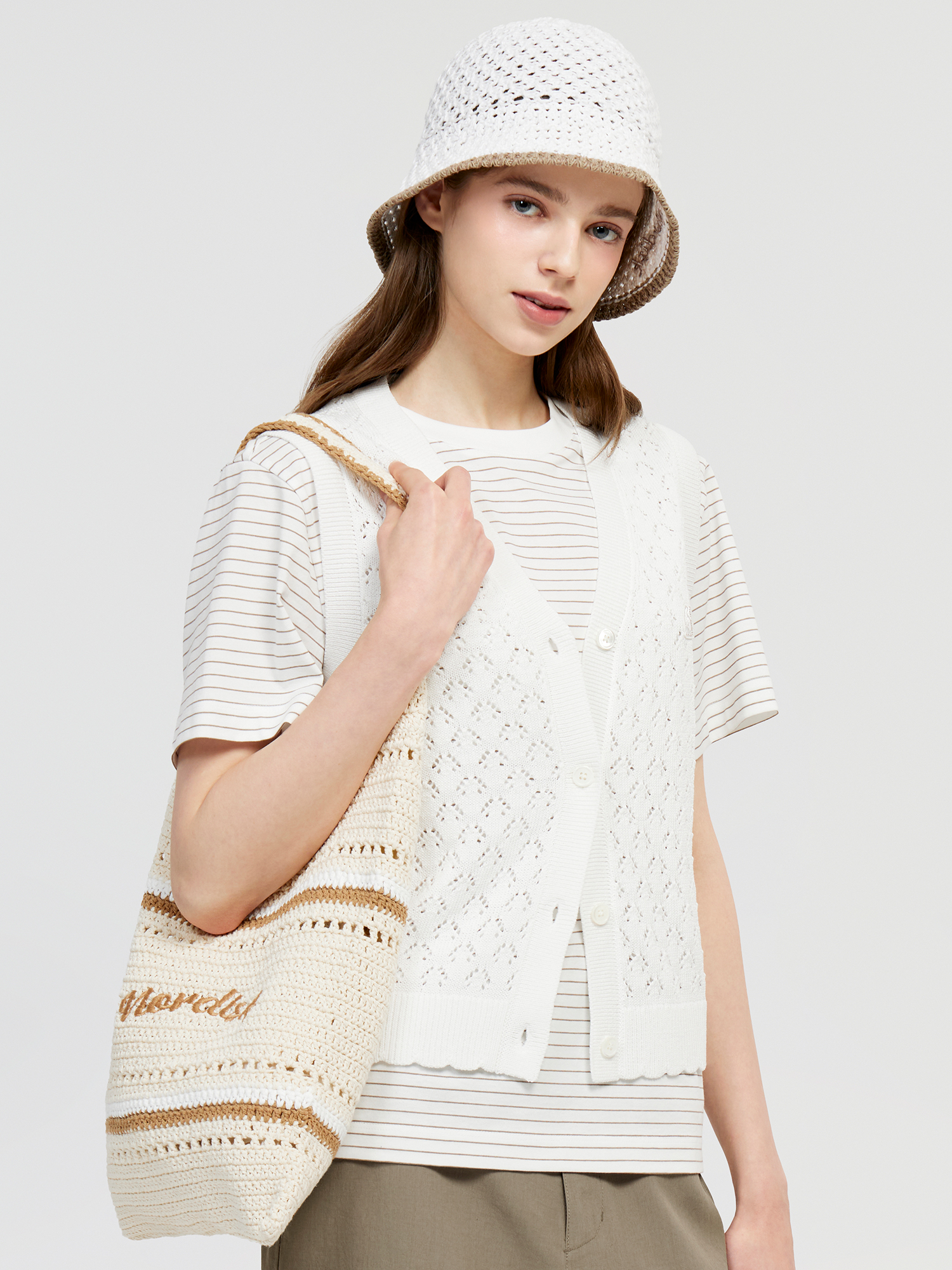 면 혼방 원사를 적용하여 봄, 여름에 가볍게 착용하기 좋은 니트 숄더백