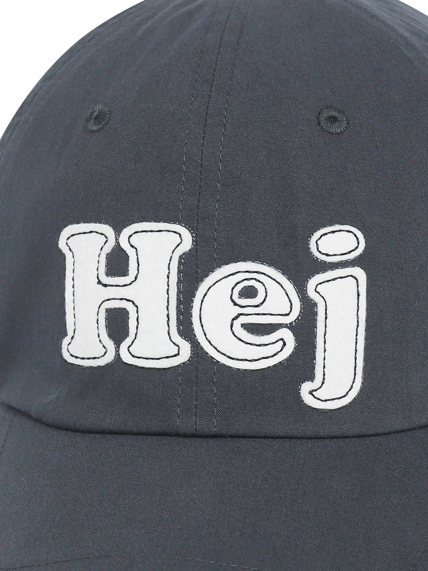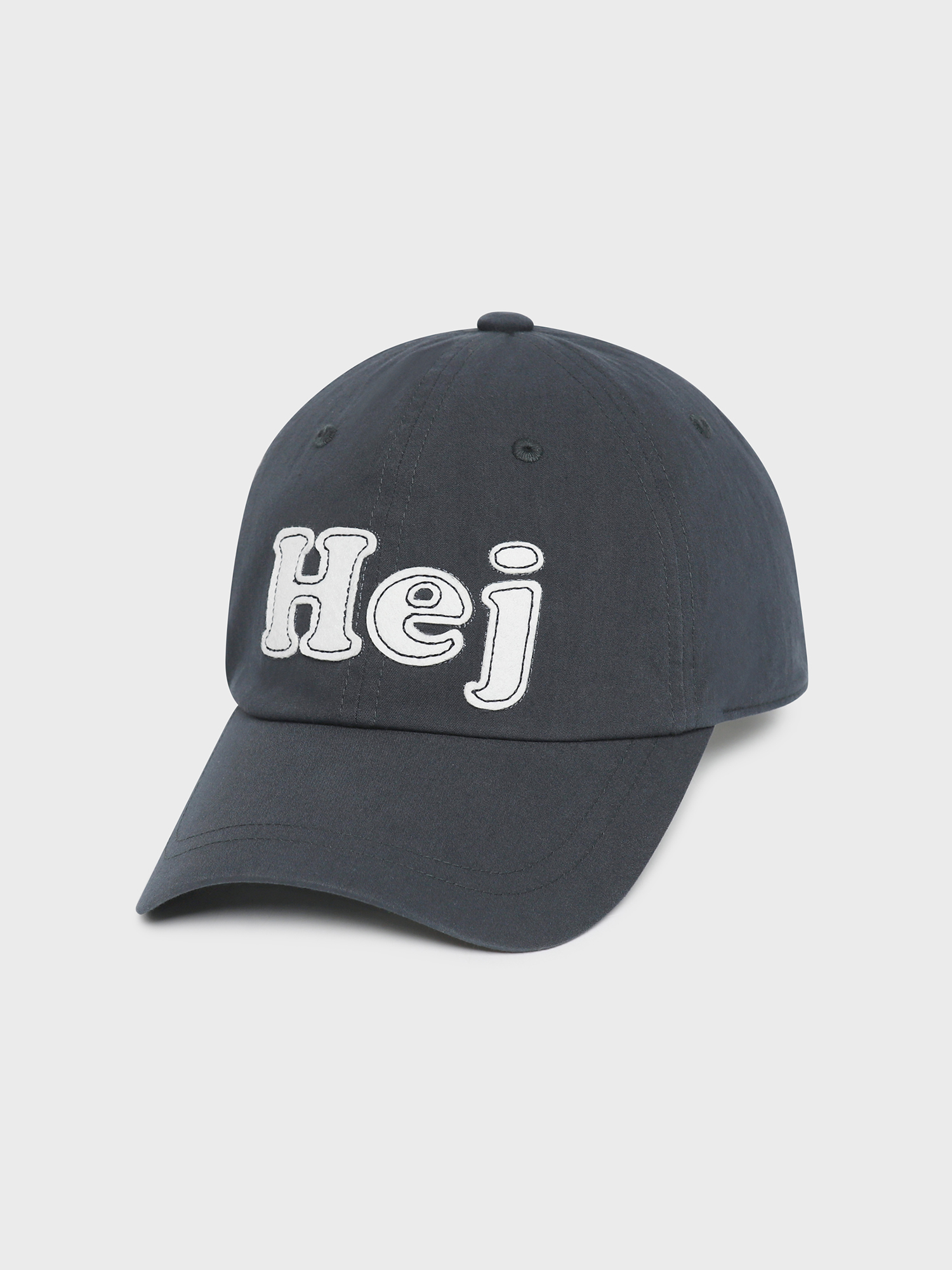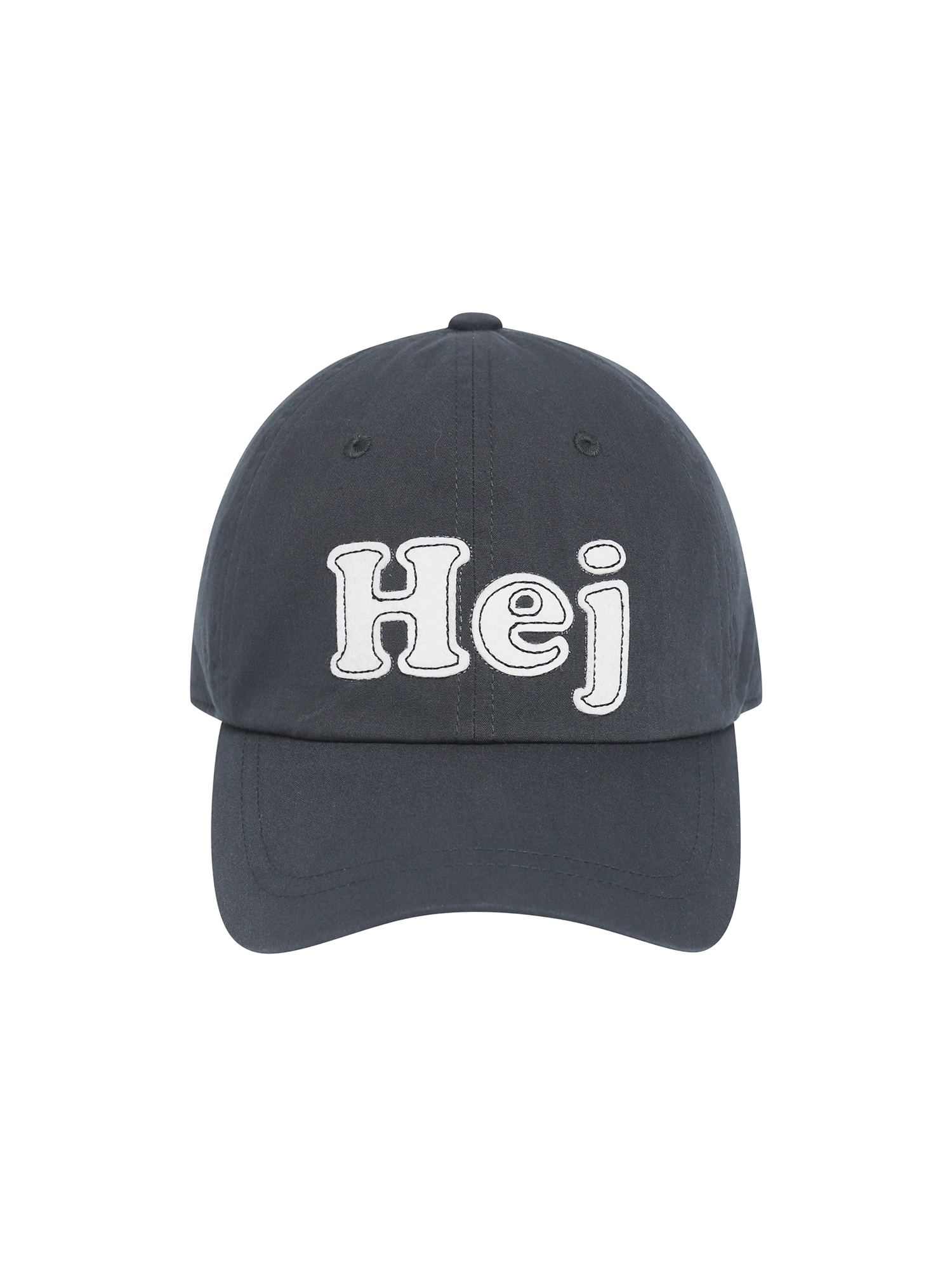 - 덴마크어로 안녕을 뜻하는 인삿말인 ""Hej(하이)""를 아플리케 자수로 적용한 발랄한 무드의 6패널 볼캡