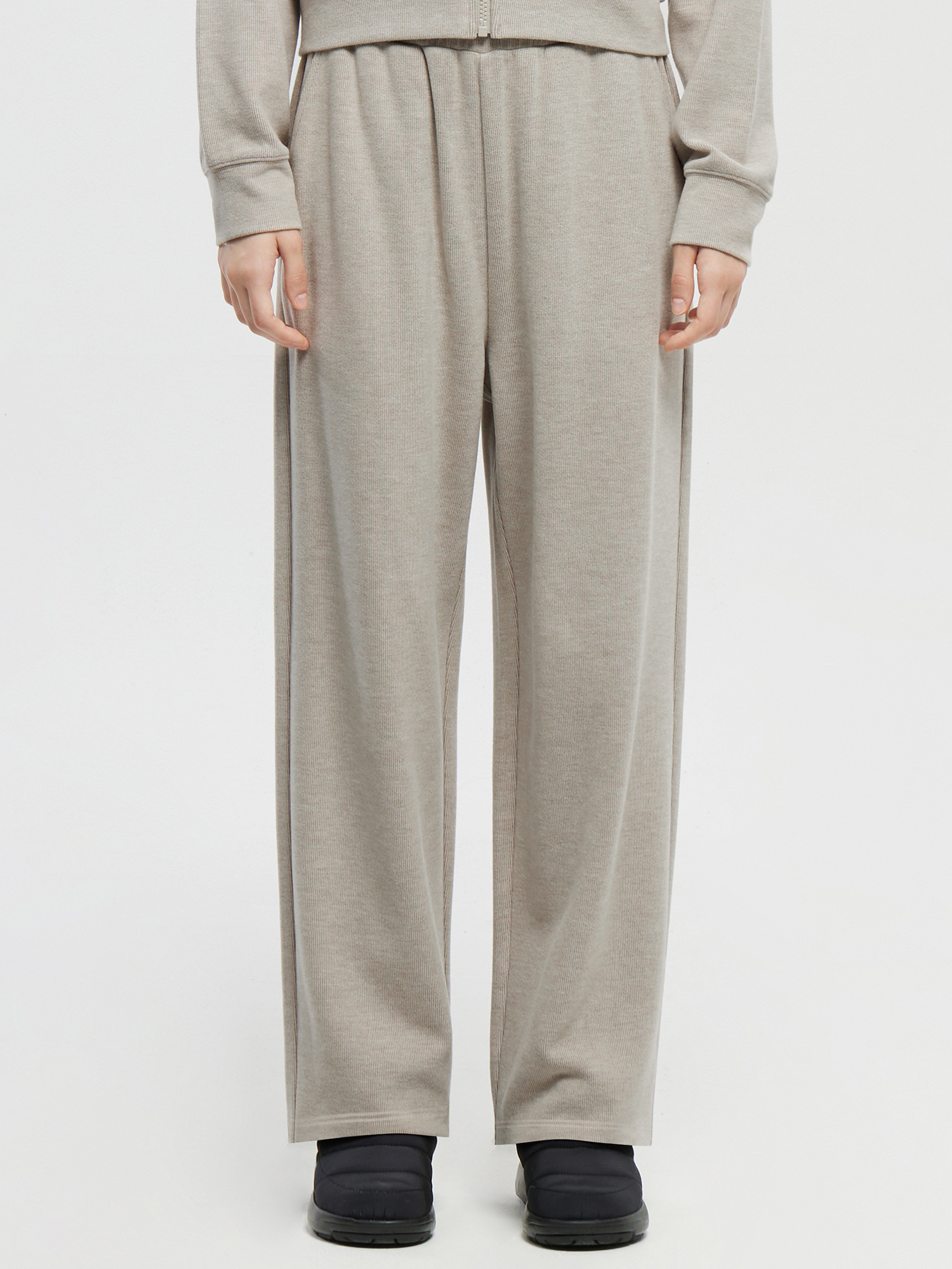 소프트 골지 트레이닝 스트레이트 팬츠 - W (Beige)