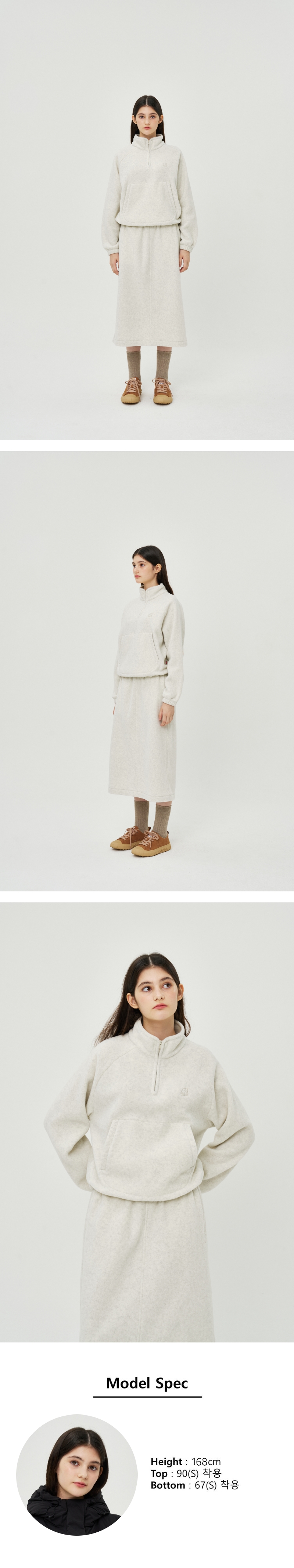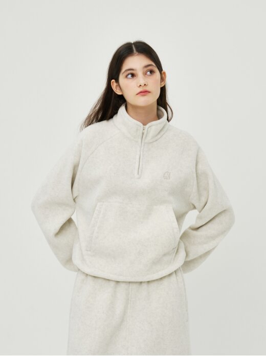 여성 마이크로 플리스 반집업 맨투맨 (Off White)
