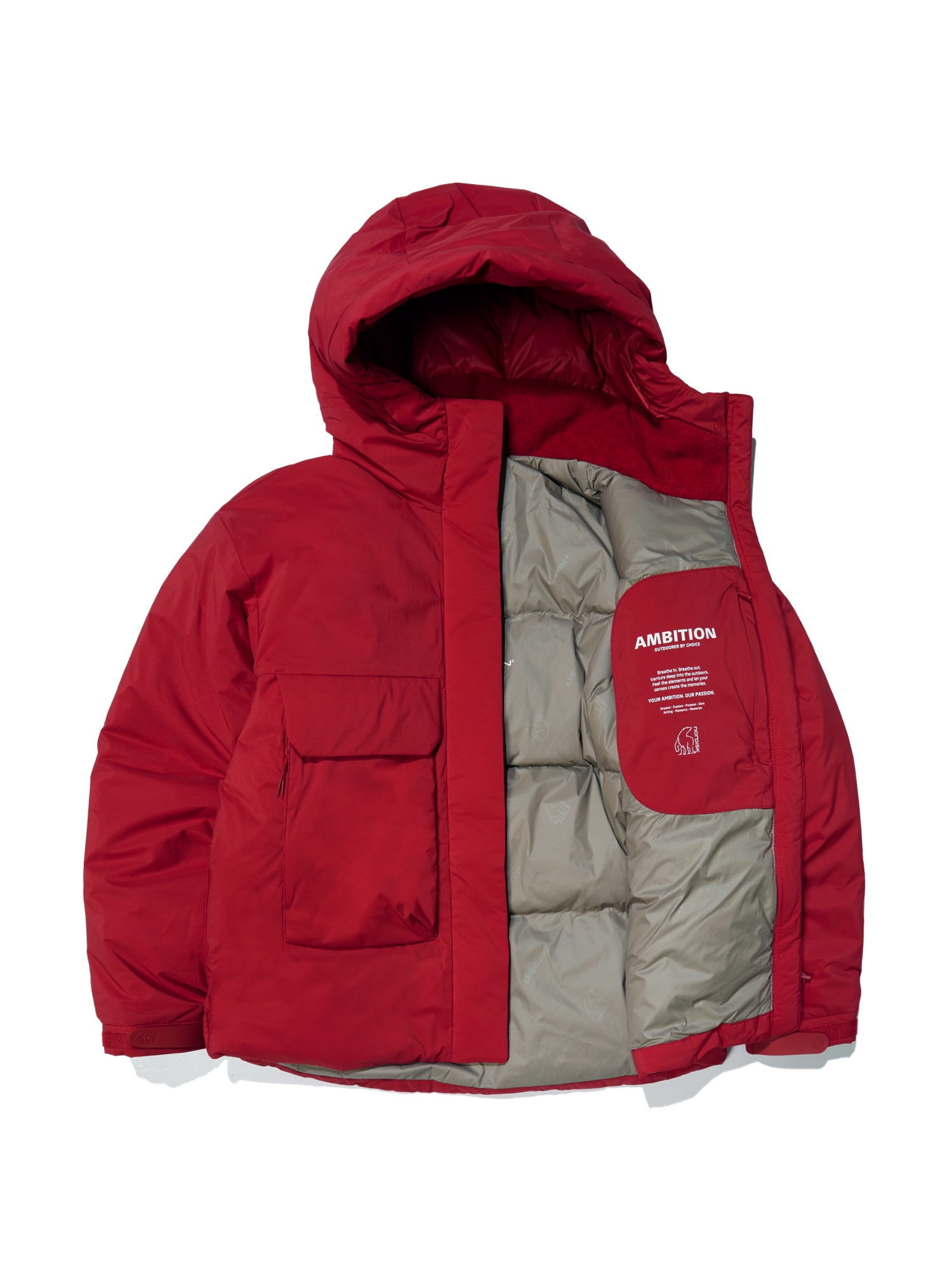 - 안감 노르디스크 로고 심볼 EMBO를 적용하여 고급스러운 안감 사양