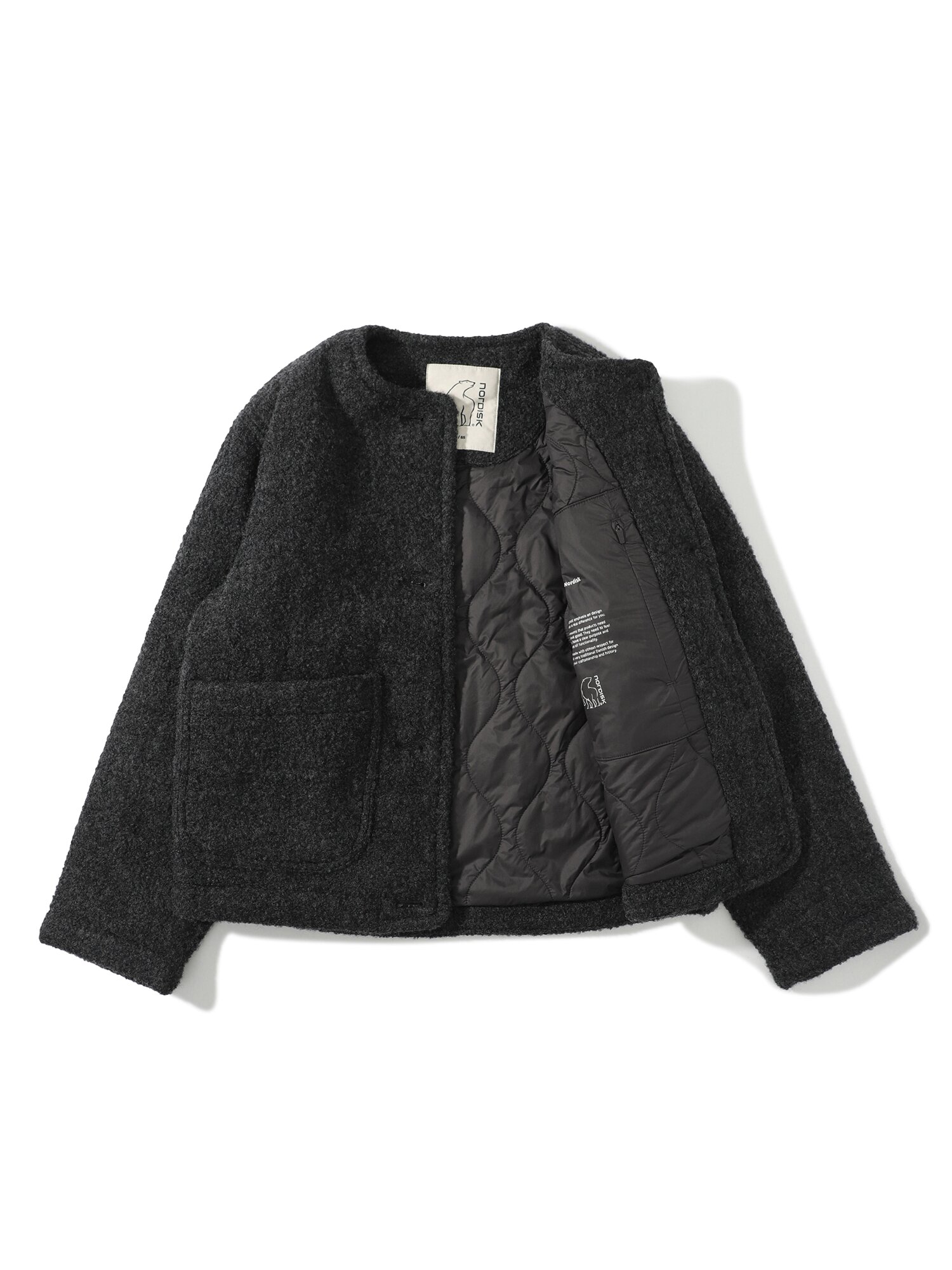 - 패딩 충전재를 속퀼팅하여 보온성을 높인 울 자켓