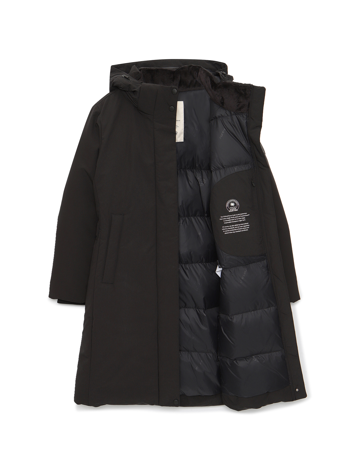 [최고급 크리스탈 구스다운과 양모 충전재를 사용한 롱점퍼]