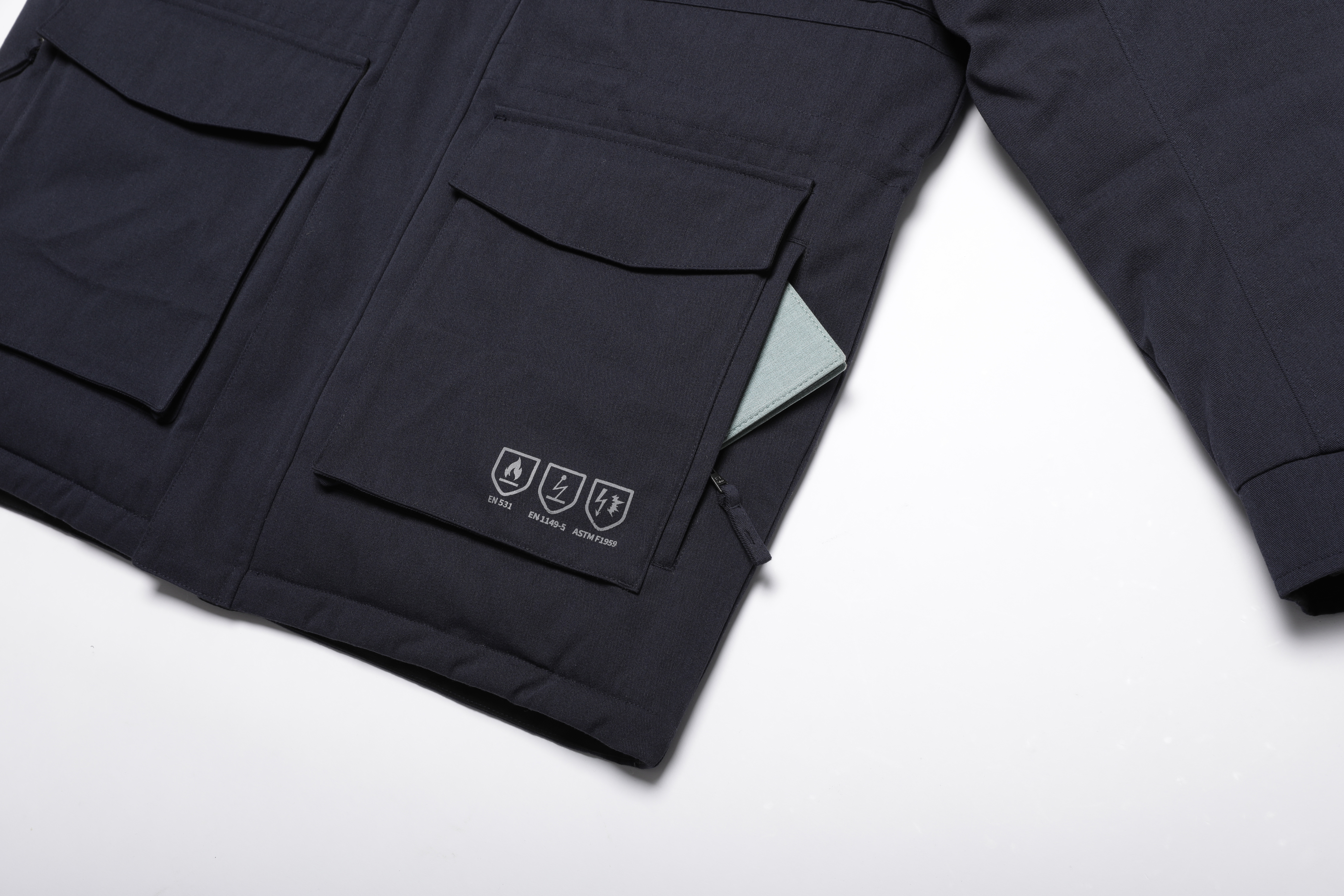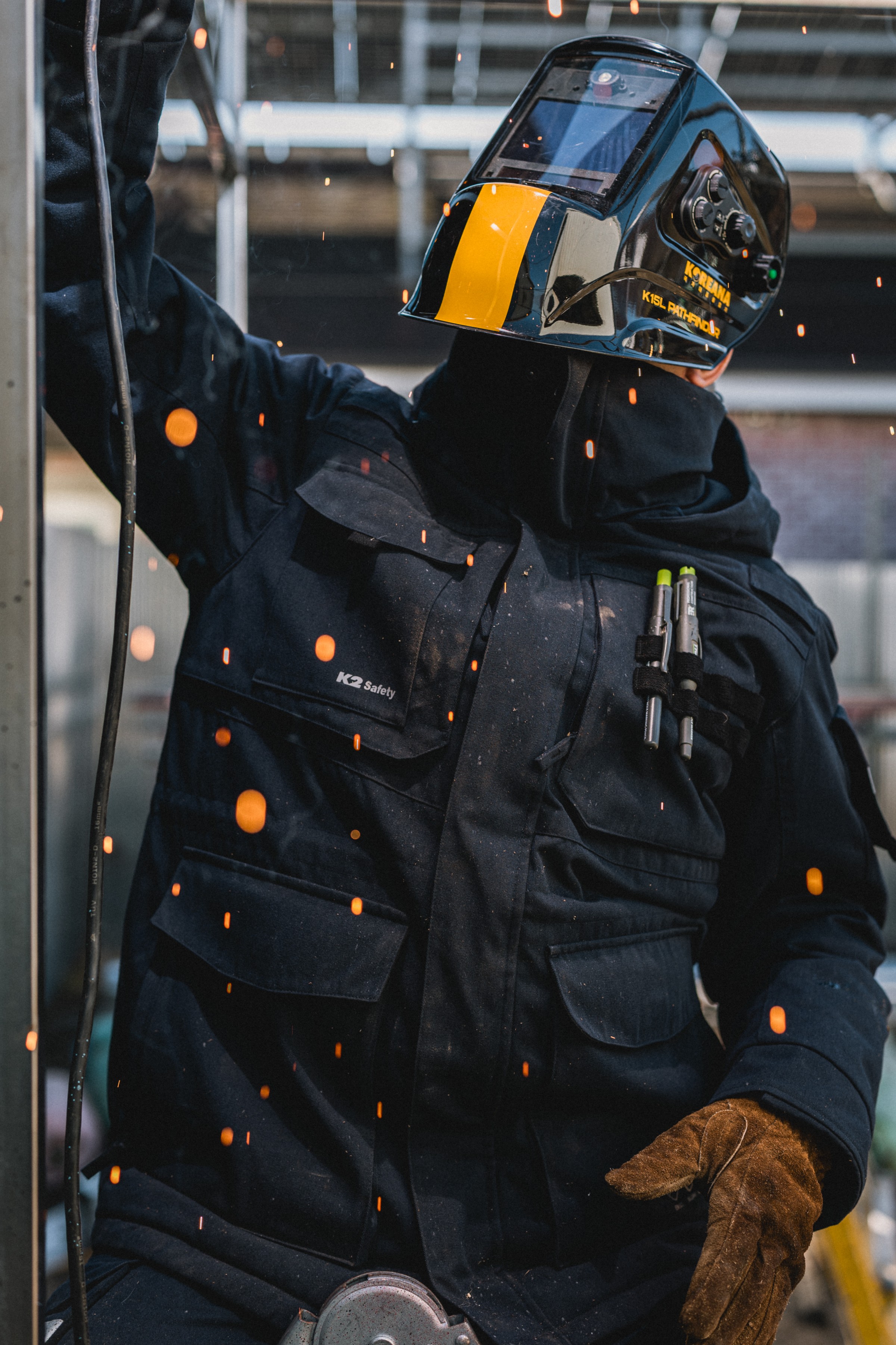 - 국내산 고품질 난연 원단을 사용, 불꽃이 튀는 환경에서도 쉽게 불이 붙지 않아 안전한 착용이 가능