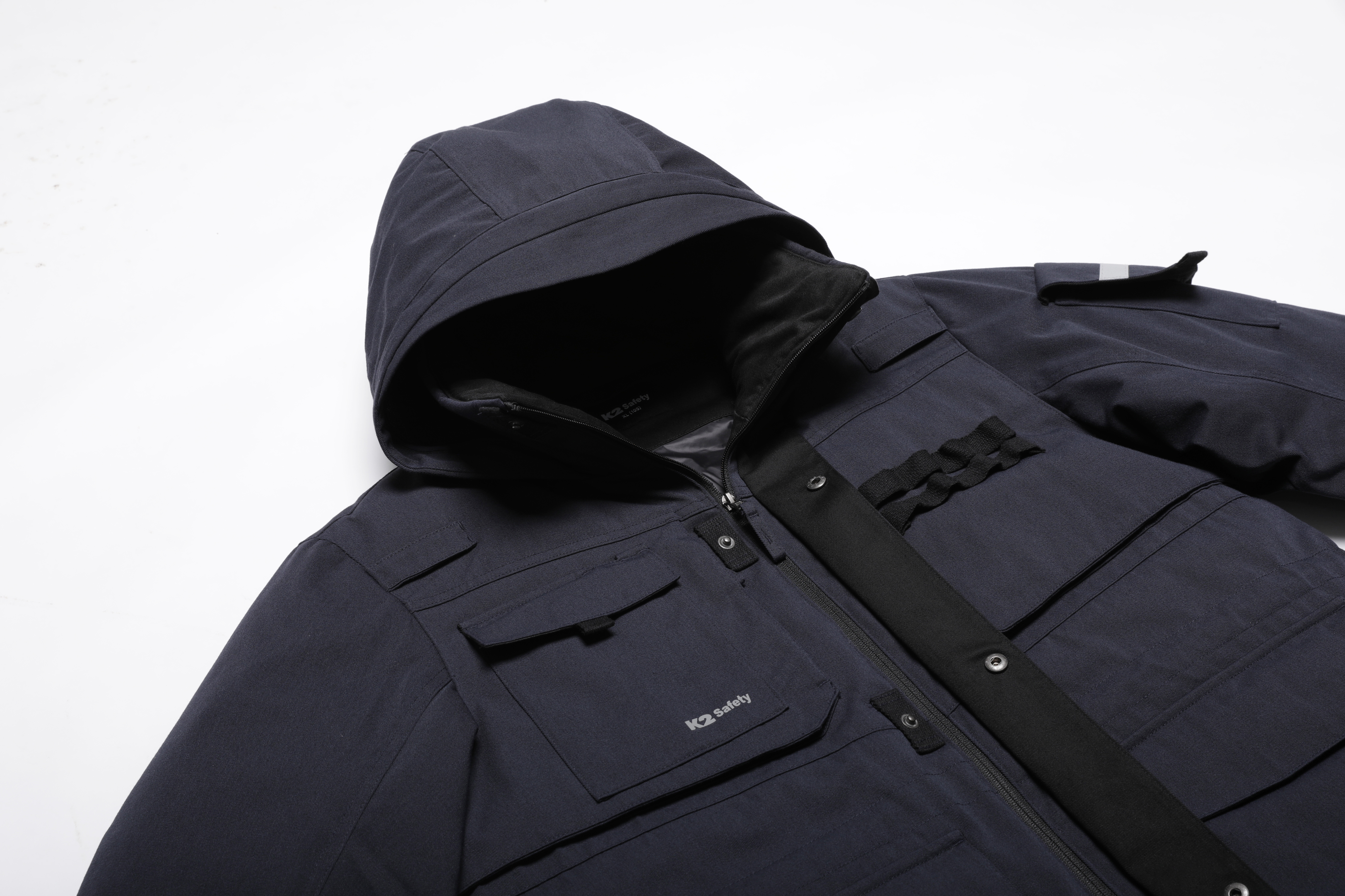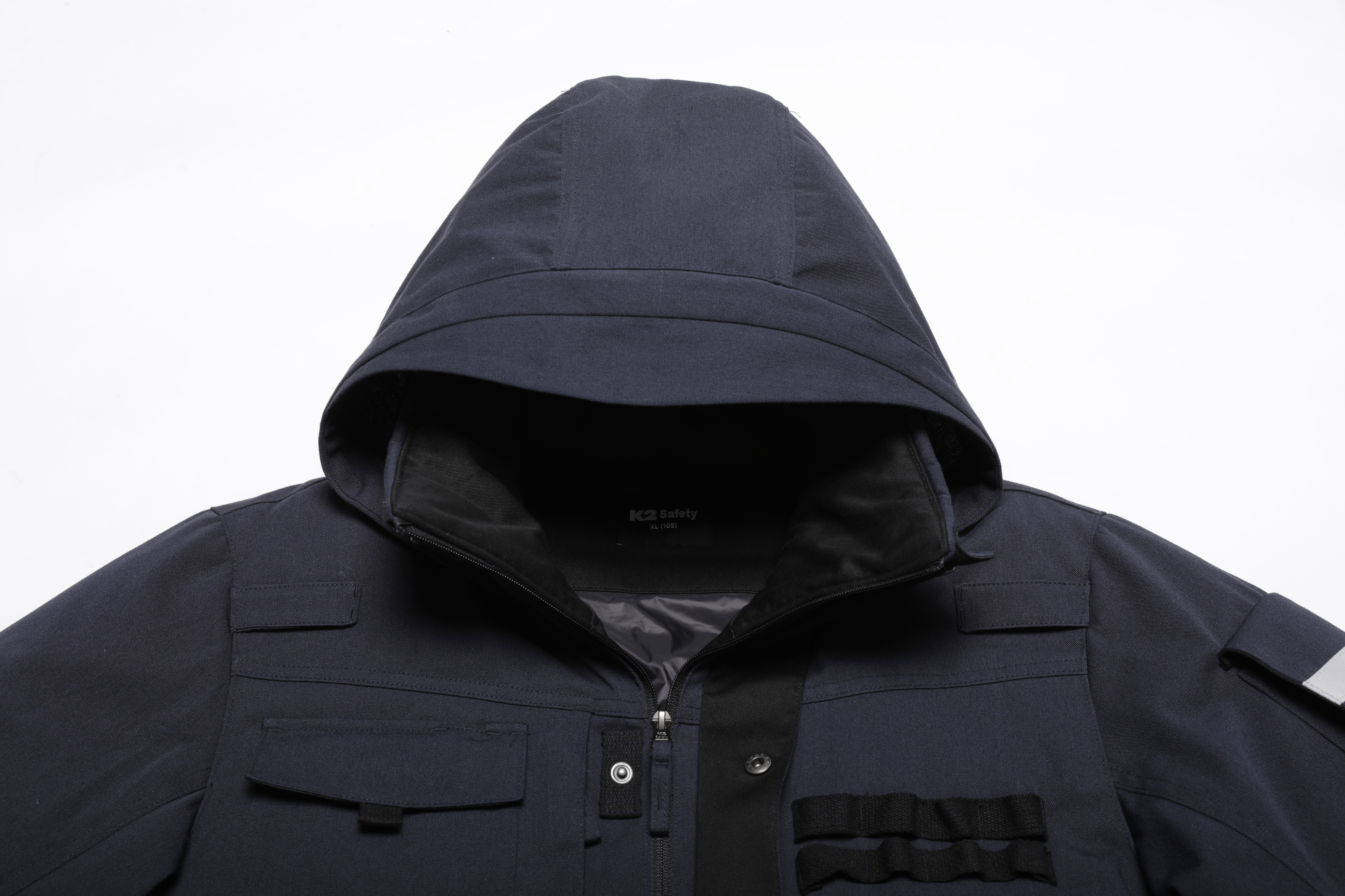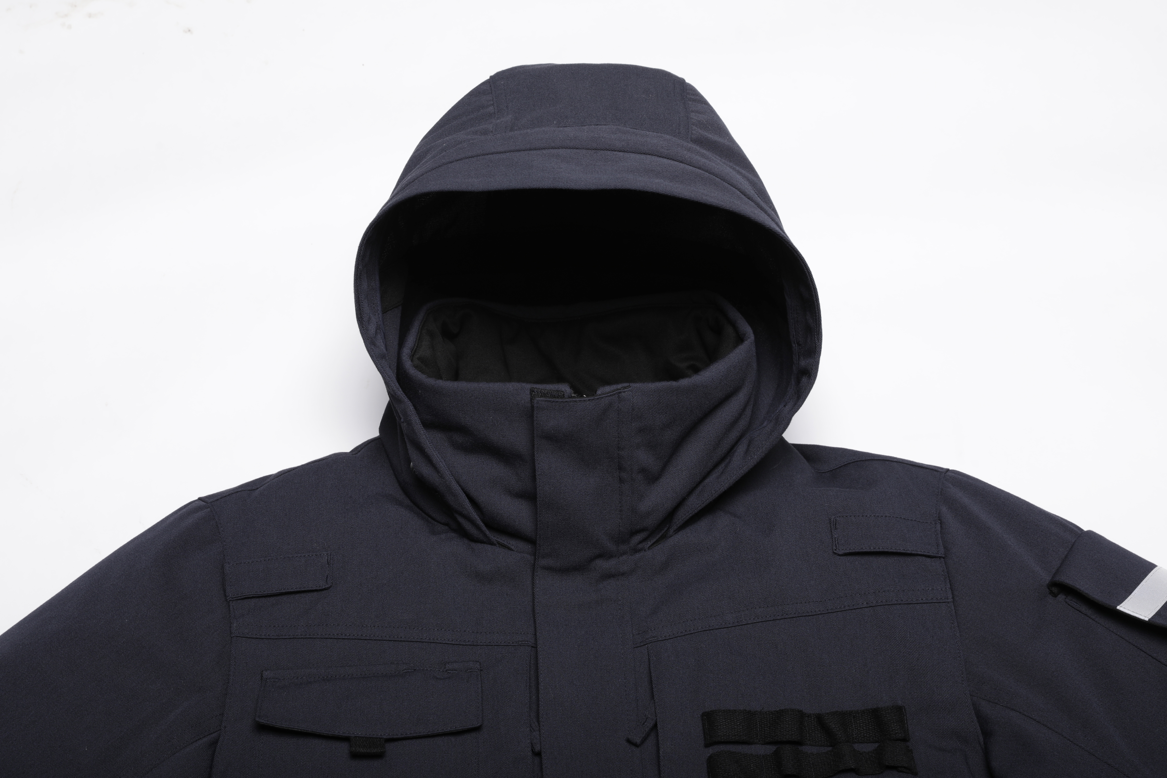 - 소매단 연장, 하이넥 디자인으로 손등 및 얼굴 노출 부위를 보호하도록 설계
