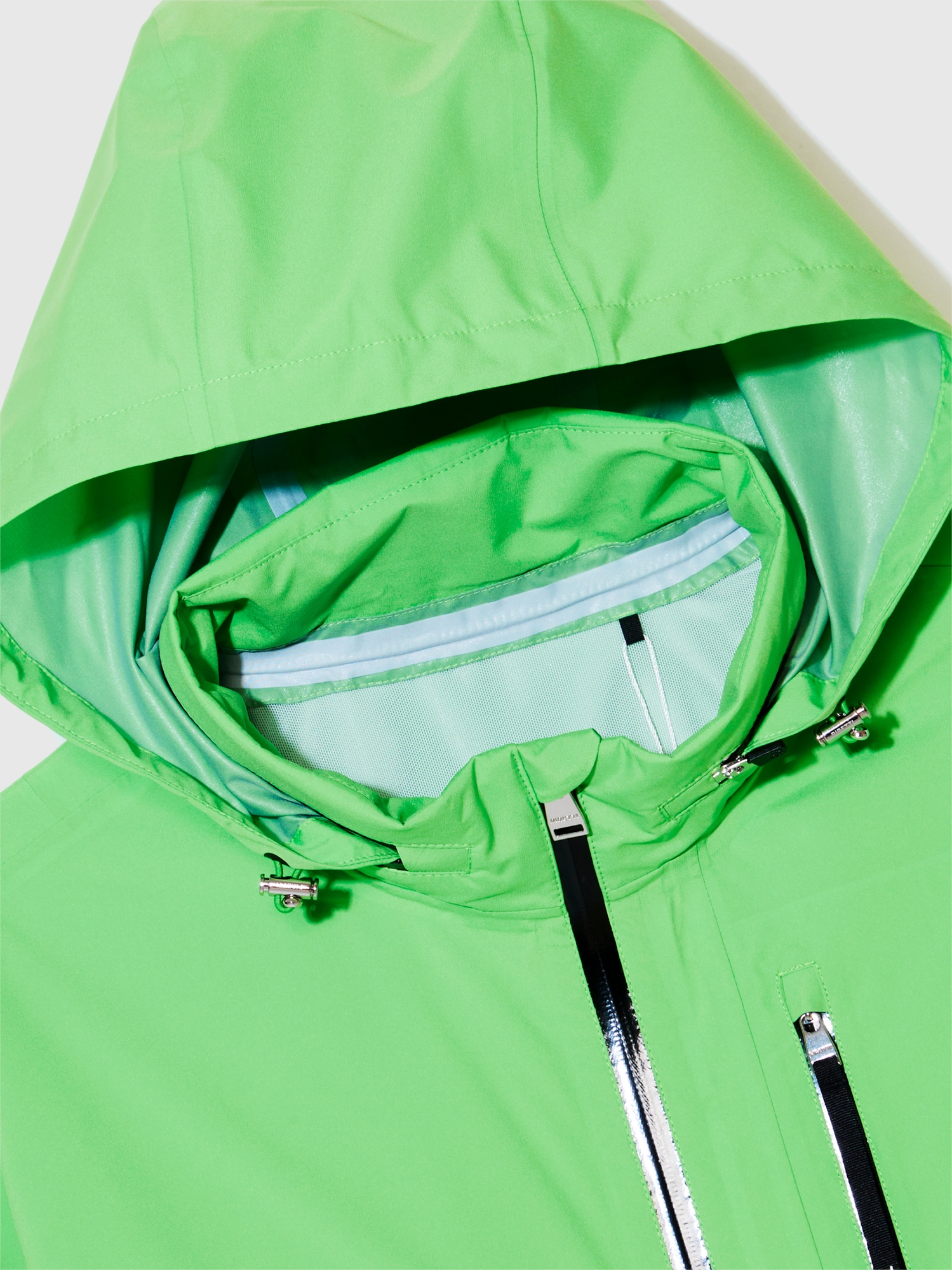 · 가벼우면서 부드러운 터치감의 3L 소재를 사용하여 방수/방풍 기능을 갖춘 레인자켓