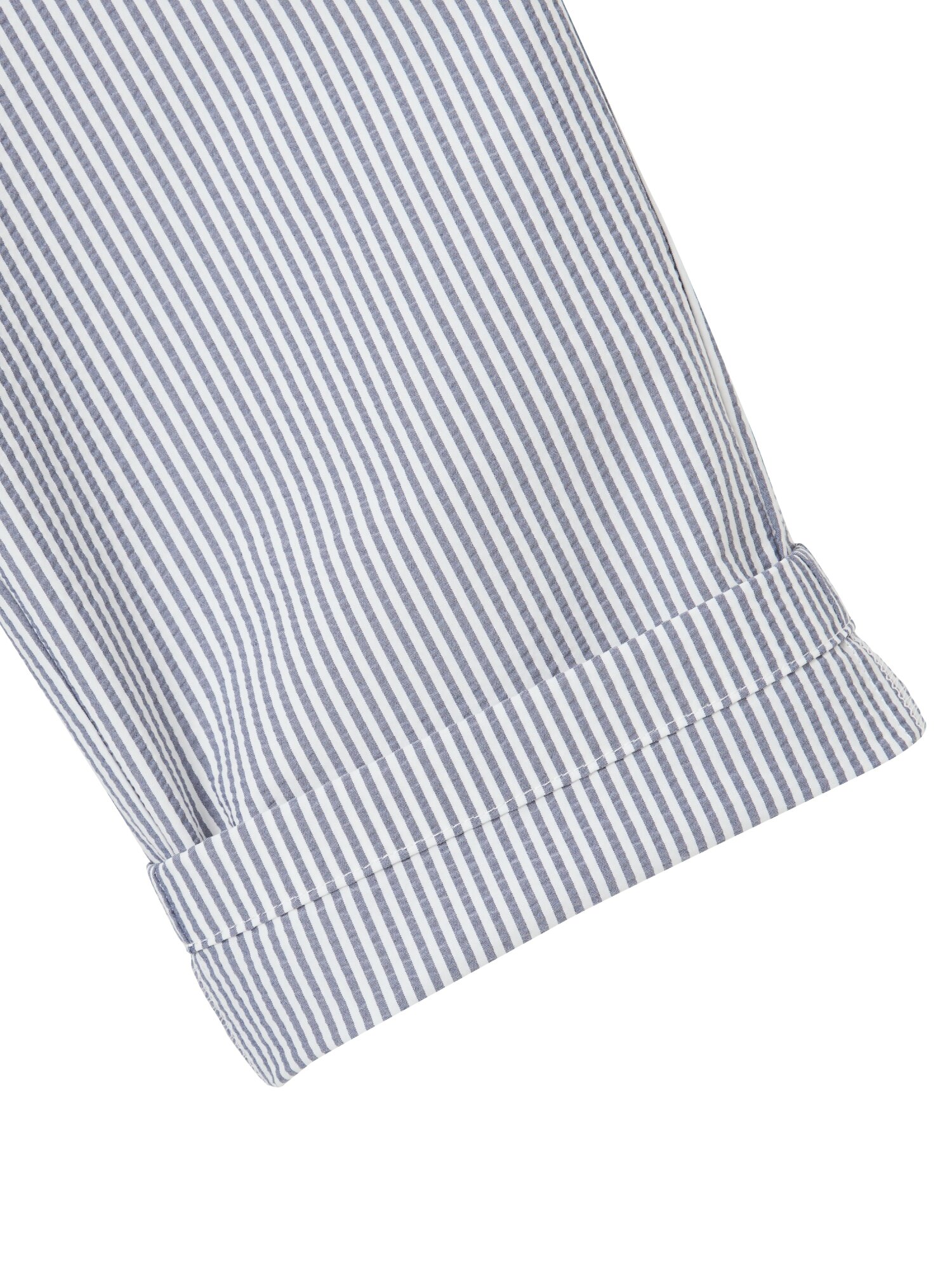 - 세로 스트라이프와 조직감으로 시원한 여름 무드를 강조.